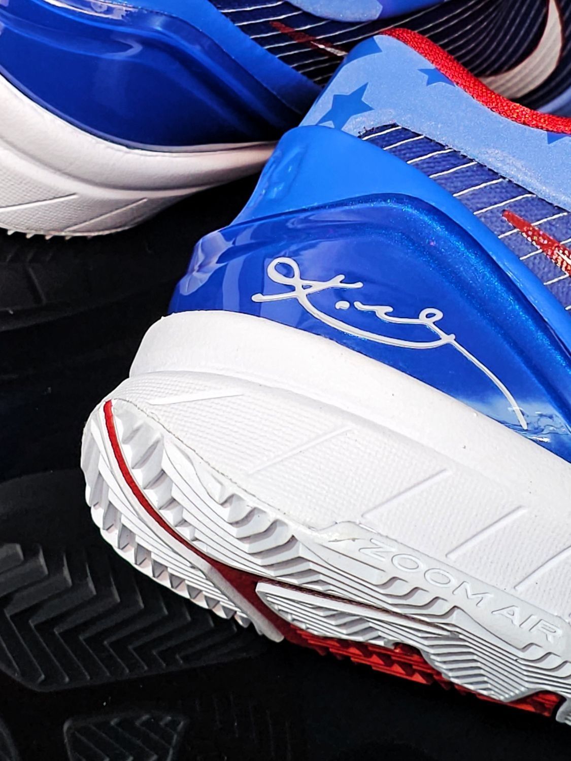 每年都有很多经典老鞋复刻,这双Kobe 4 Philly是我上半年最喜欢的一双科比复刻! 灵感来自于科比的家乡费城,同时也致敬了他父亲在76人队时期的打球经历! 鞋子整体还原度比较高,以76人标识性的海军蓝为主色调,红白点缀,鞋身上还有星星图案装饰,很有辨识度! 这次复刻的实物还是比较满意的,喜欢元年配色的应该不会拒绝!