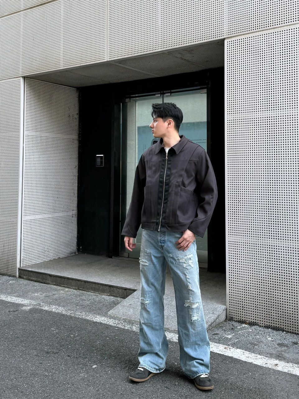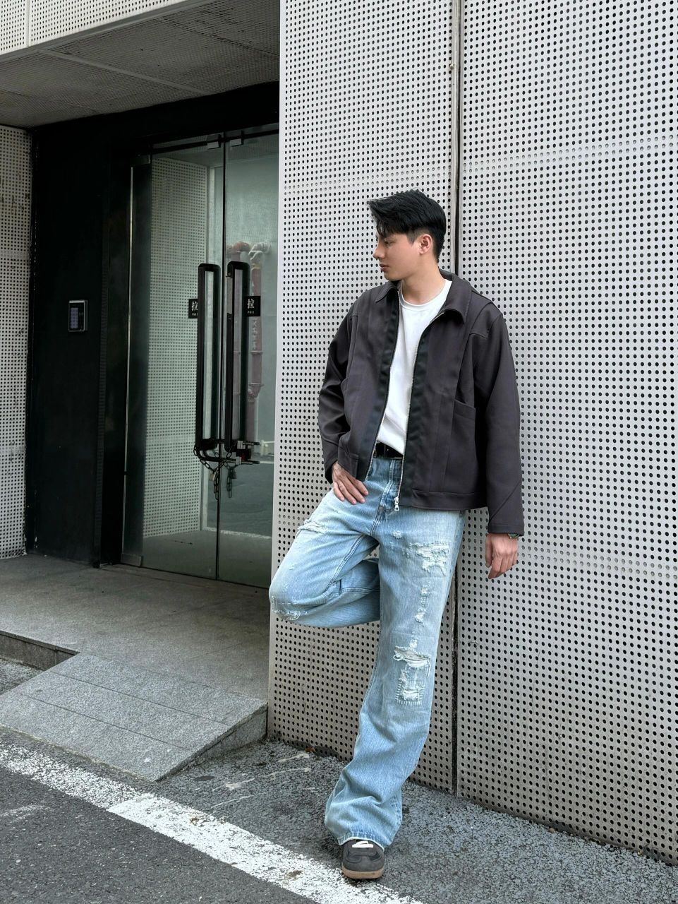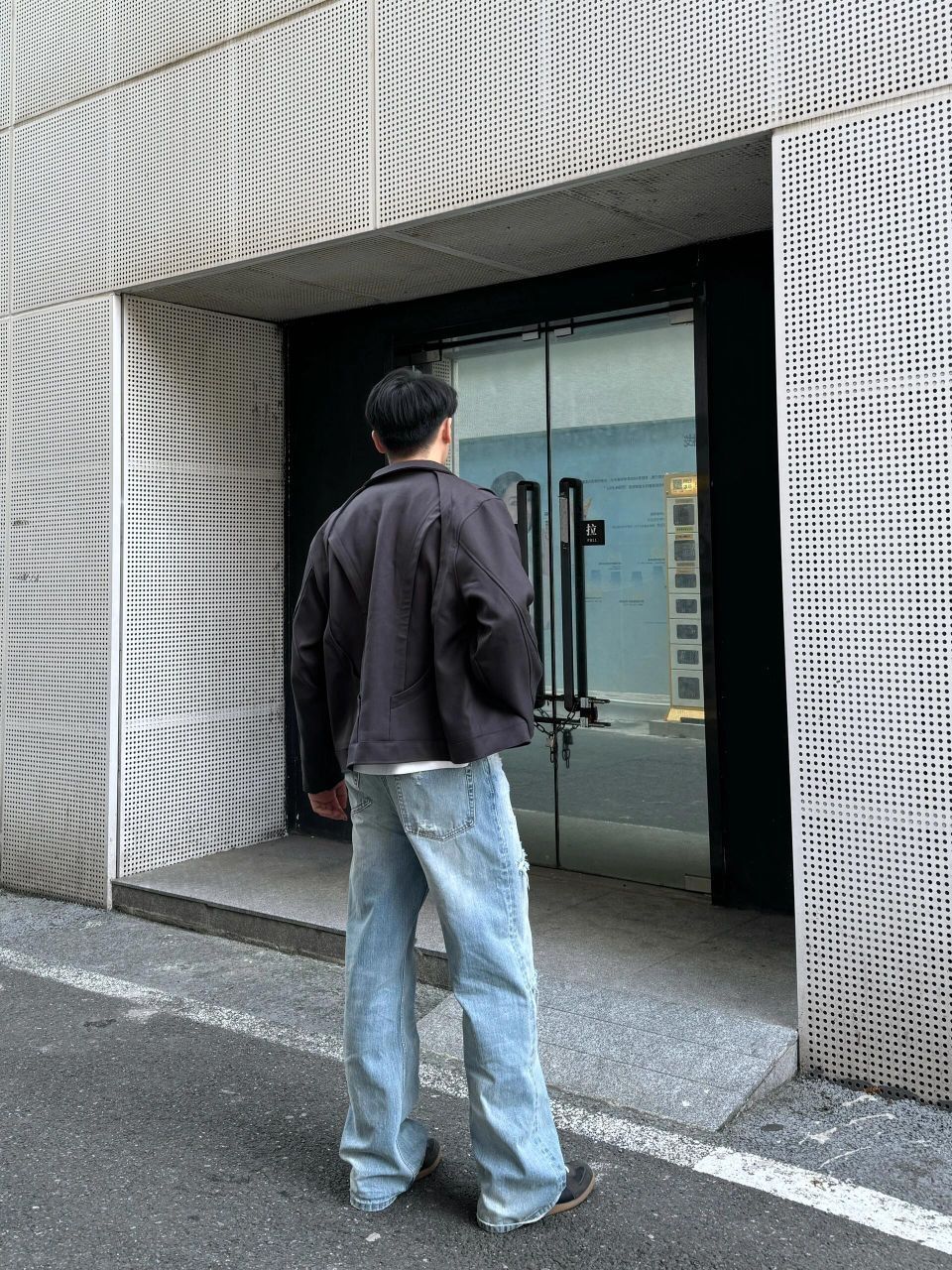 秋冬的上短下长显比例穿搭简直就是我的舒适区 短款夹克怎么穿都穿不腻 显腿长那才是真香 岩石灰配色上身就很沉稳高级 多裁片设计很有细节感 搭配一条浅蓝色牛仔裤 四季都合穿又有很高搭配性 大火的版型 不挑人穿而且上身就是慵懒感十足 脚踏复古薄底鞋 颜色呼应通勤舒适又时髦 显比例穿搭赢麻了 早秋这么穿真的没对手