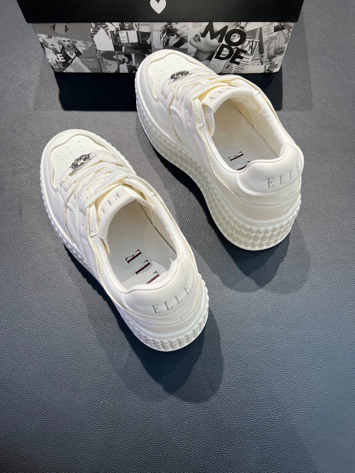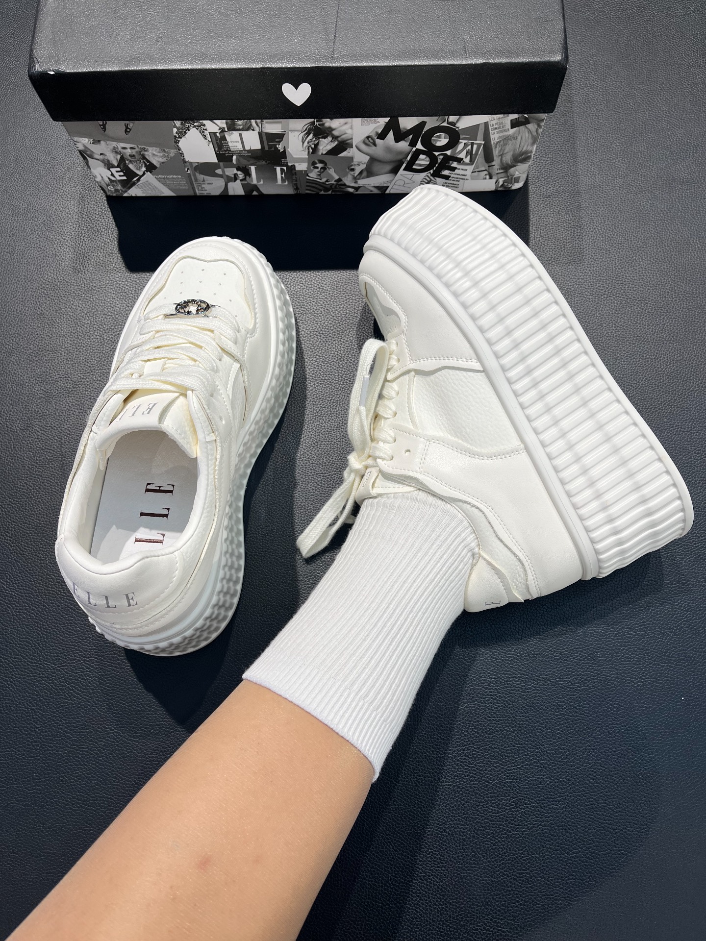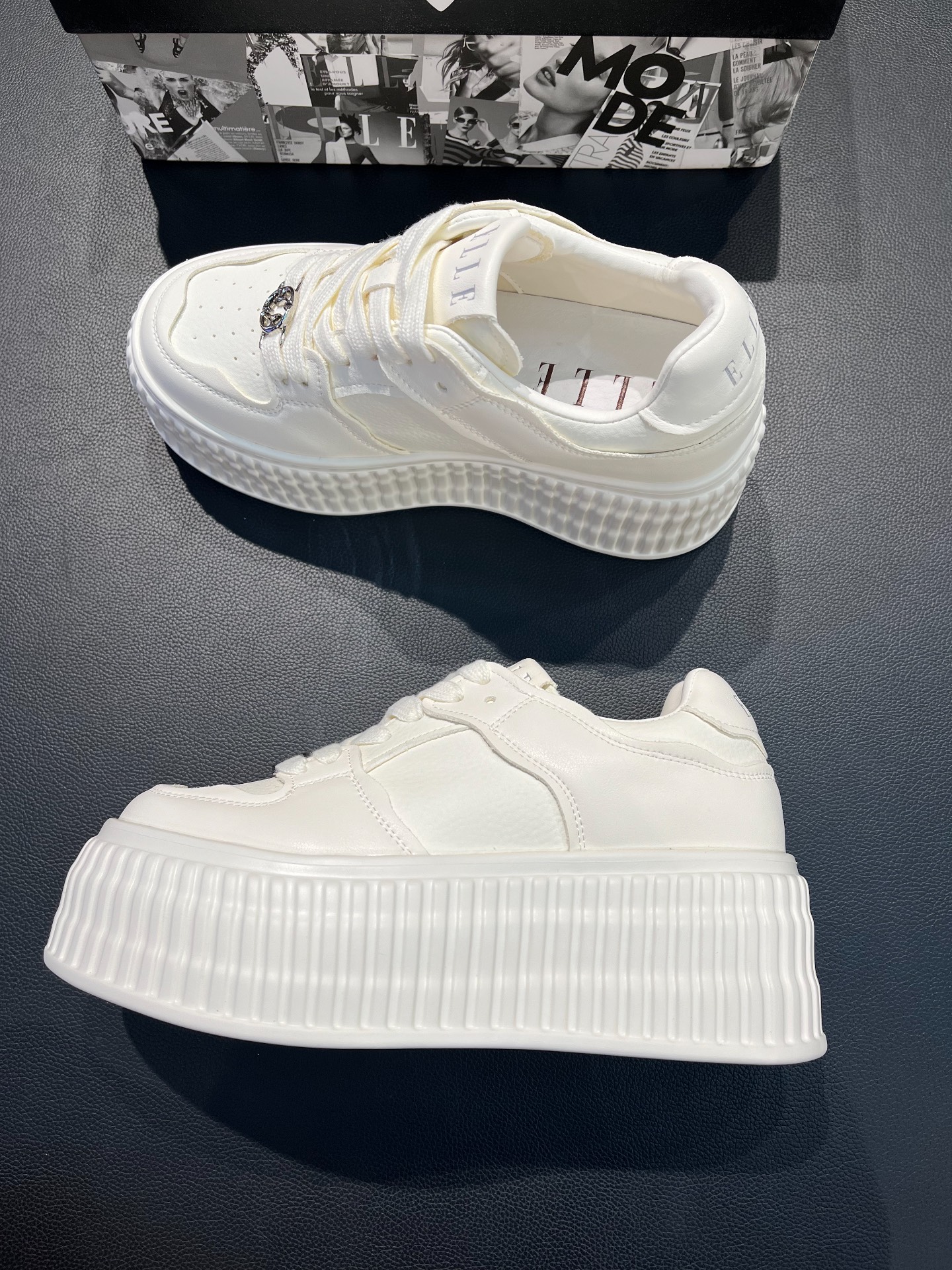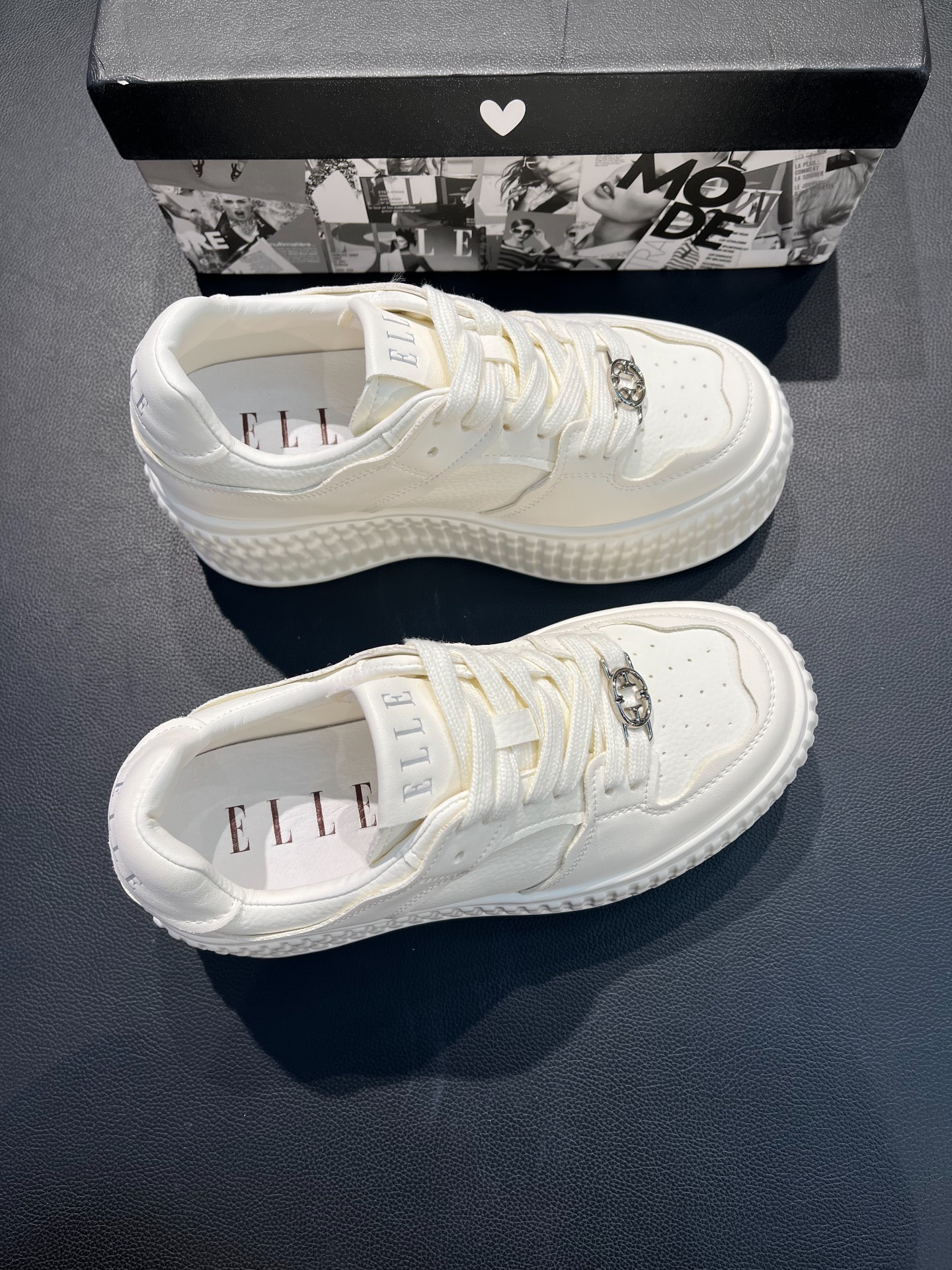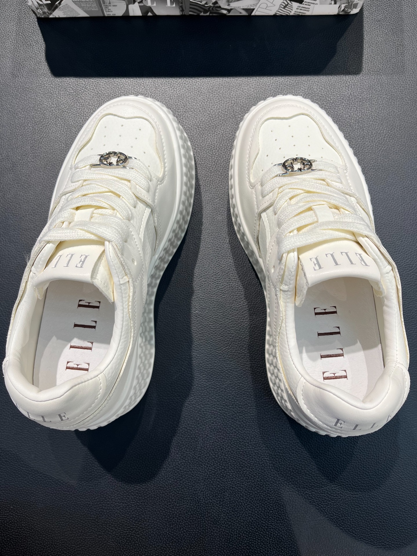 OMG❗️小白鞋就是我滴神,这双ELLE的饼干小白鞋,是我的白月光啊,纯白色青春的感觉,我最欢的颜色,穿上它给我一种自信感,奶乖奶乖的,小白鞋真的太鲨我了! 合成革的鞋面,很耐脏,不用洗鞋的快乐谁懂啊!橡胶的鞋底,防滑设计穿上很有安全感,6cm的增高,矮子的最爱,太俘获我这个小个子的心了,显腿长还显腿瘦,妥妥的韩剧女主的身高啊,白色厚底鞋真的太百搭啦,噂嘟好好穿啊#入秋的第一双鞋 #只买性价比好鞋...