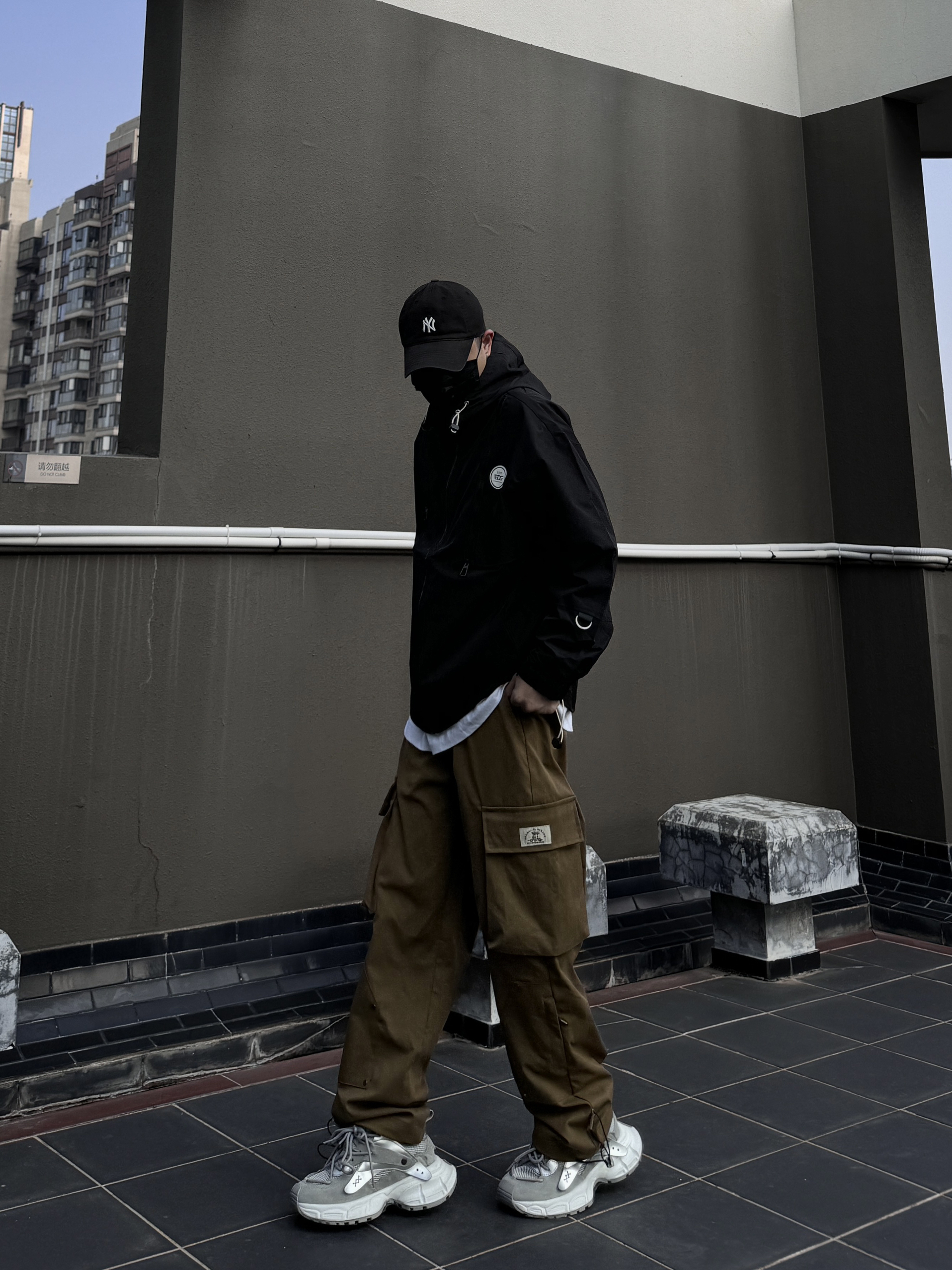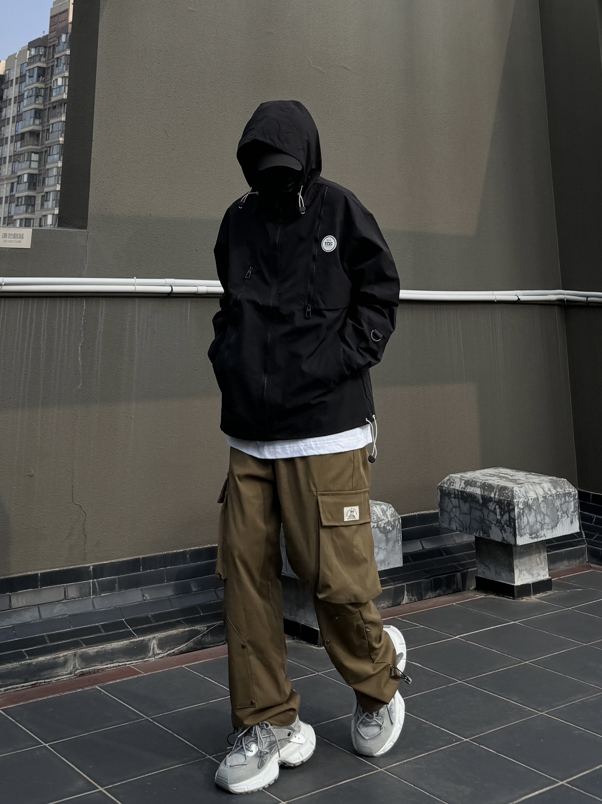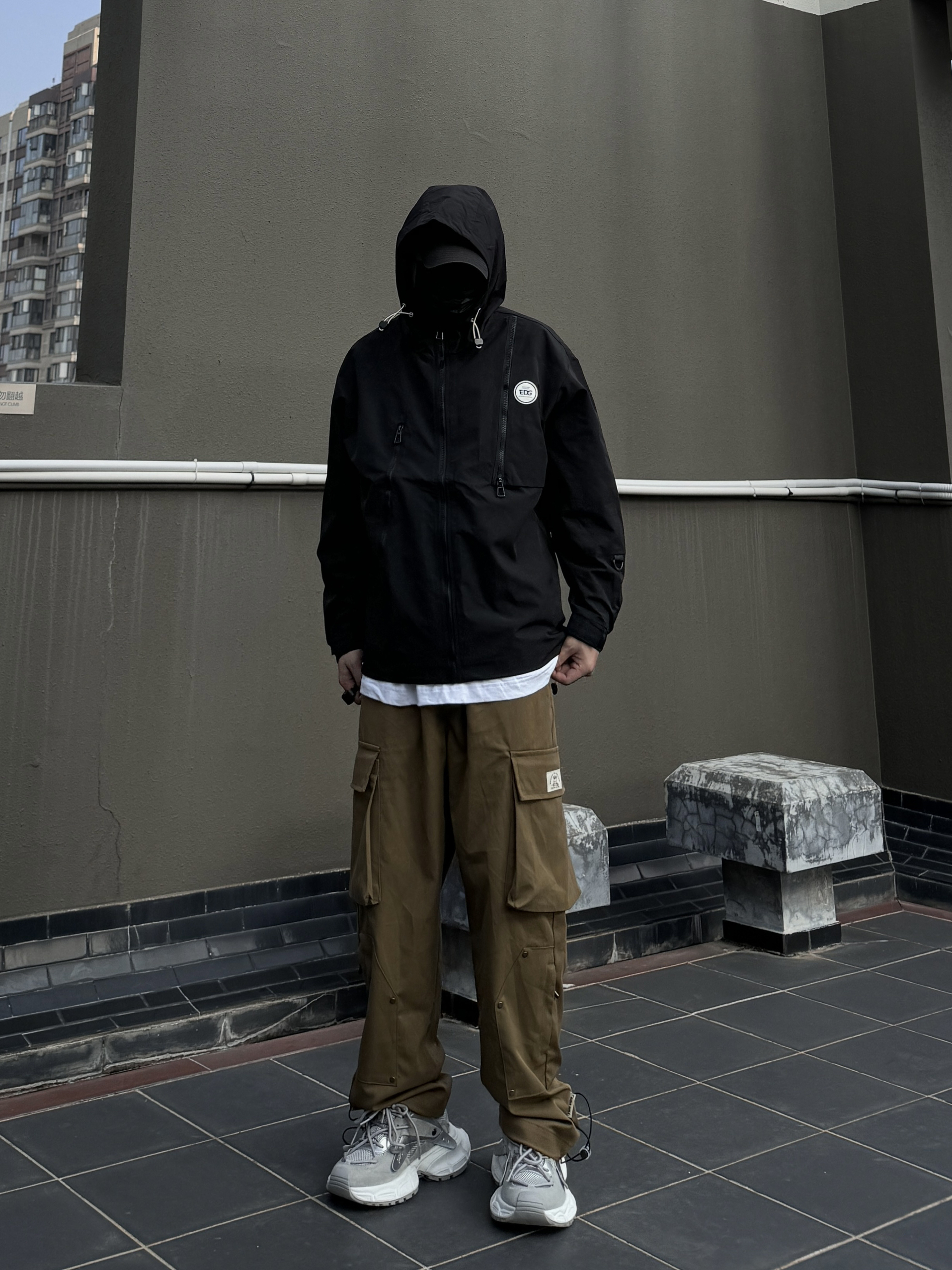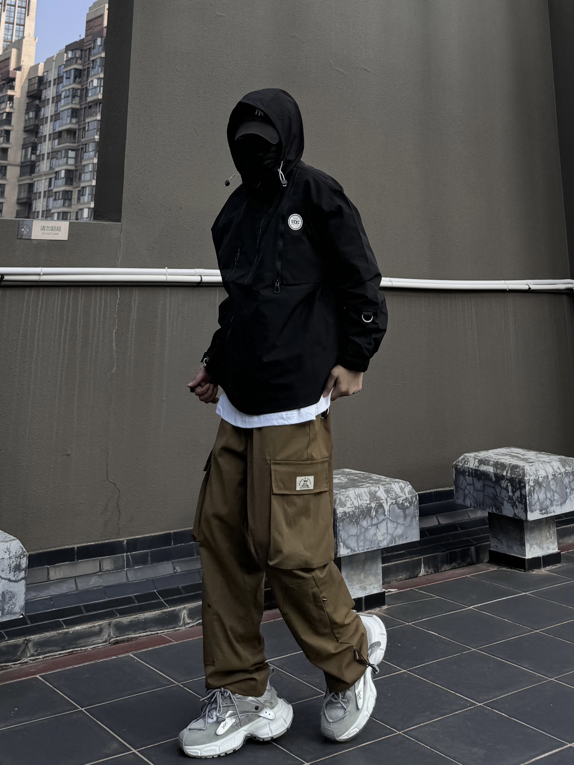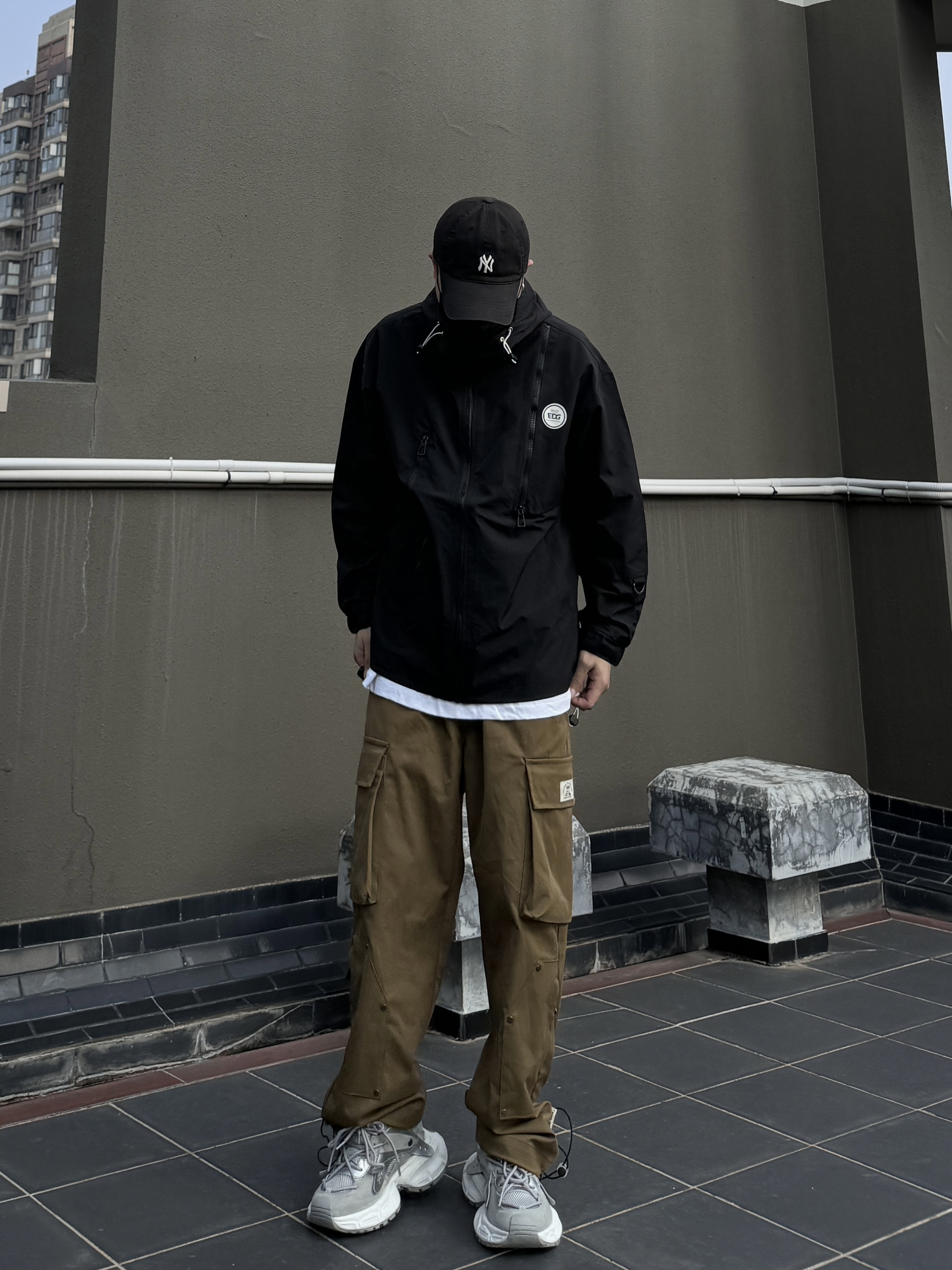 身高|体重:170/60 🧍♂️ 穿搭风格:街头潮流 👔 上衣:edg山系冲锋衣 👖 下装:大口袋工装裤 👟 鞋子:老爹鞋 🎒配饰:mlg棒球帽 冲锋衣搭配工装裤,对于男生无异于一次医美