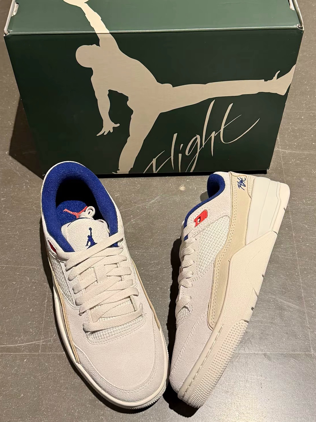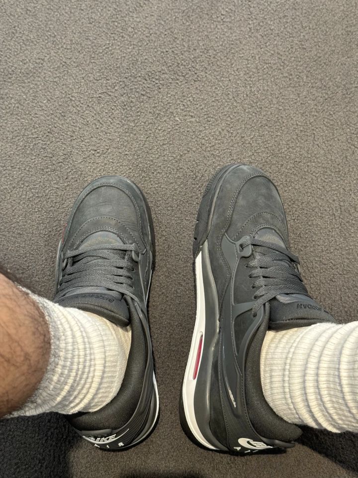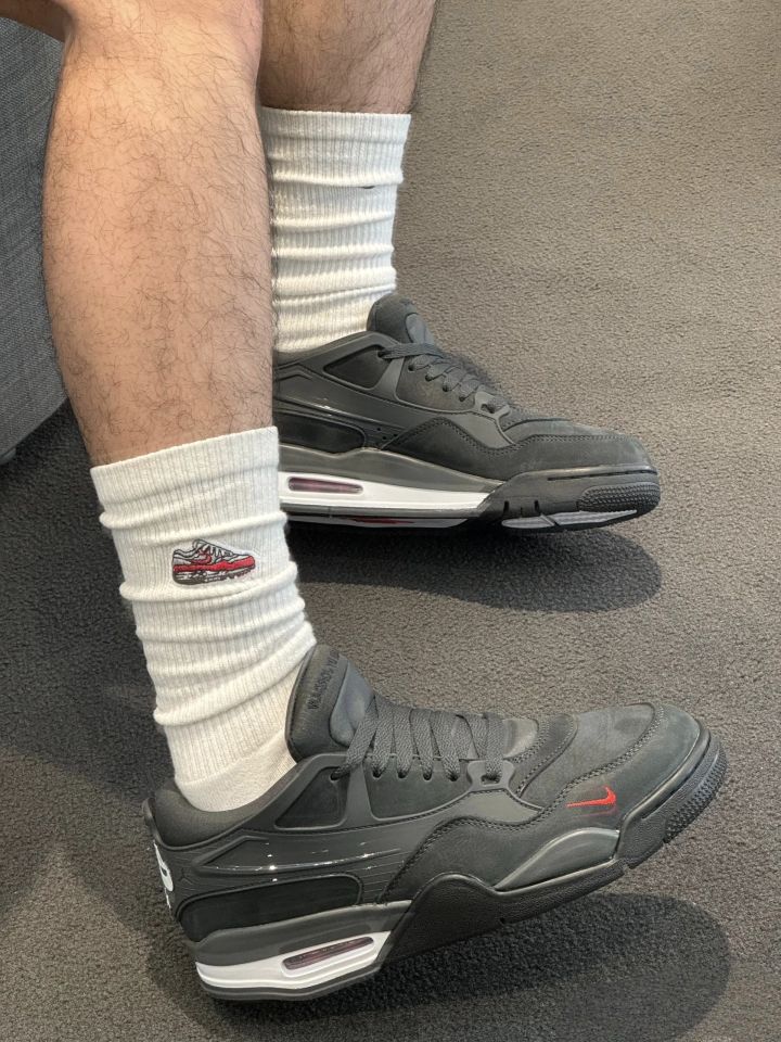 解锁出游新皮肤|AJ4RM 最近这双联名的两个配色可是心热度很高 相比墨绿色 黑色更具性价比 入手难度更低 实物颜值在线 廃皮质感 低帮百搭 脚感就没啥好评价的AJ4的底 懂得都懂 尺码方面 脚背搞拍大半码 瘦脚正常码 附赠了一副白色鞋带大家觉得白色还原鞋带好看