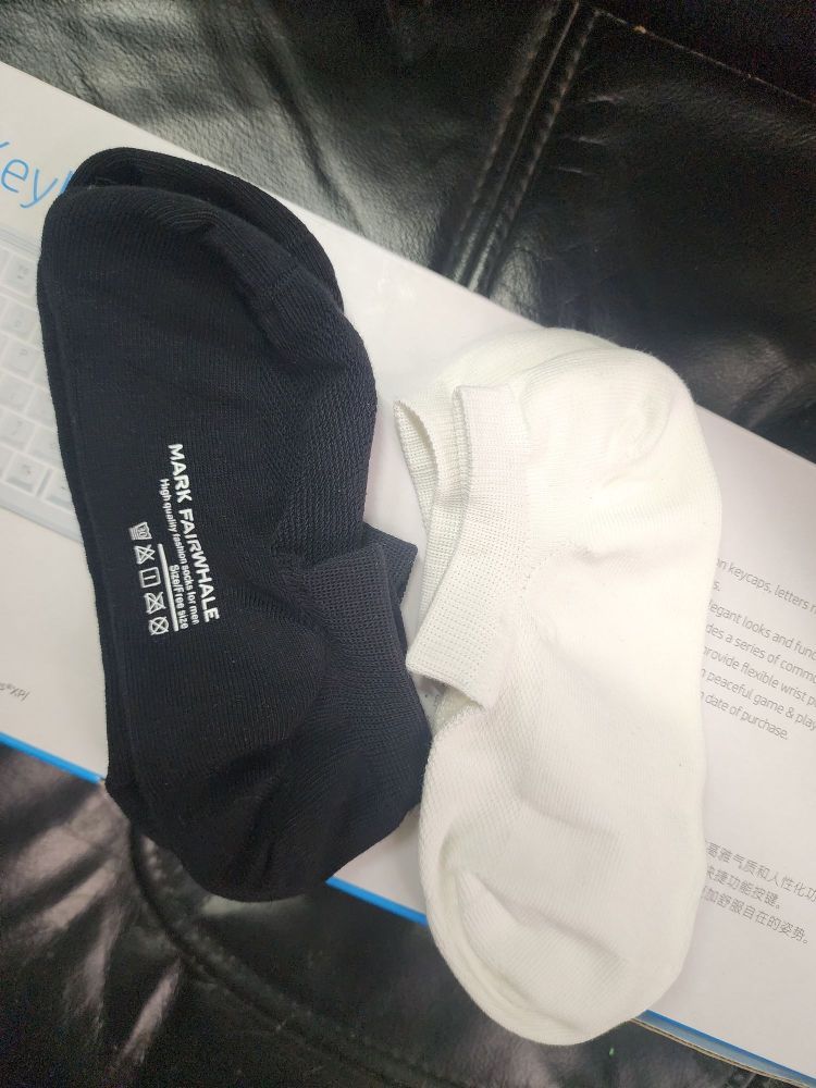 不得不说这真是男孩子的福音了,都能穿上“丝袜”了,再也不用偷看了吧![狗头_blue] 首先两点就是脚背的渔网透气孔,遍布的透气孔真的跟丝袜没多大区别,但还别说,真透气! 其次这个是超短款,穿拖鞋搭配上这玩意,颜值相当爆棚,亲测很有效果[机智_blue] 别忘了这个颜色很丰富,白色黑色都有,太全面了