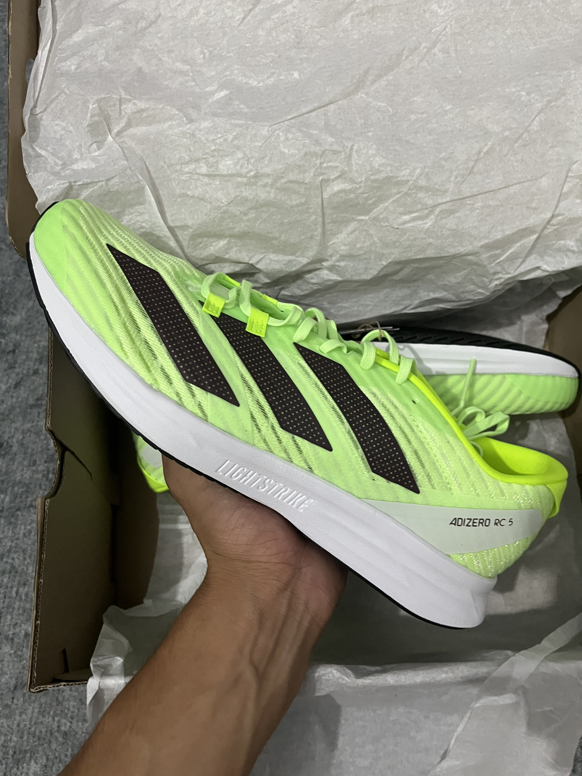 本篇笔记关联了adidas Adizero RC 5 减震 轻便 织物 碳板 跑鞋 绿色/亮柠檬黄等商品,为用户提供真实的使用体验和购买参考。