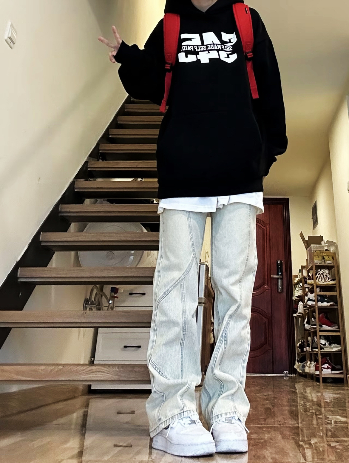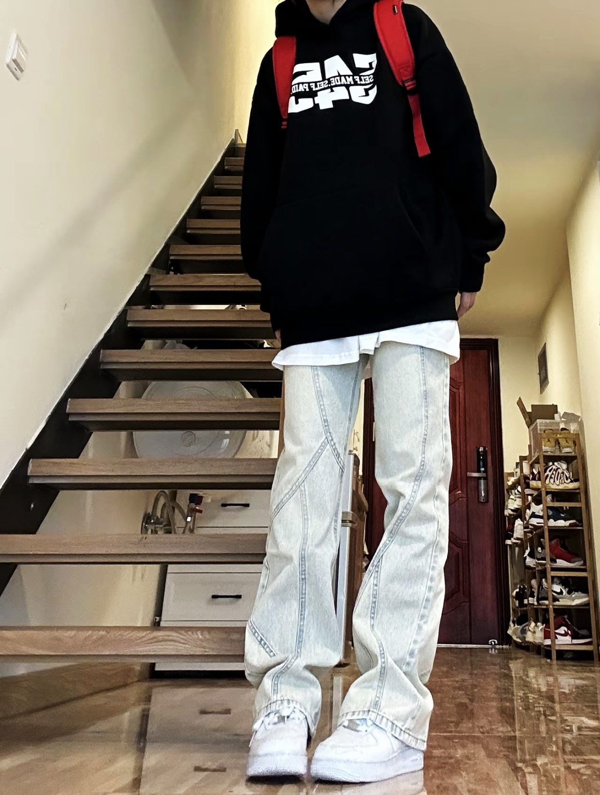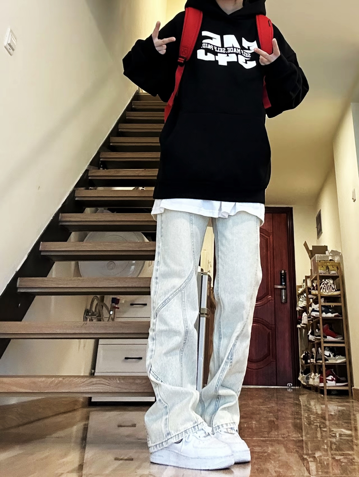 卫衣是很厚实的~秋冬穿这件完全ok 裤子水洗做旧感、直筒版型百搭男女穿都可🥰