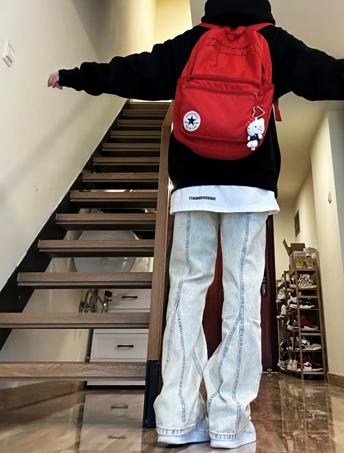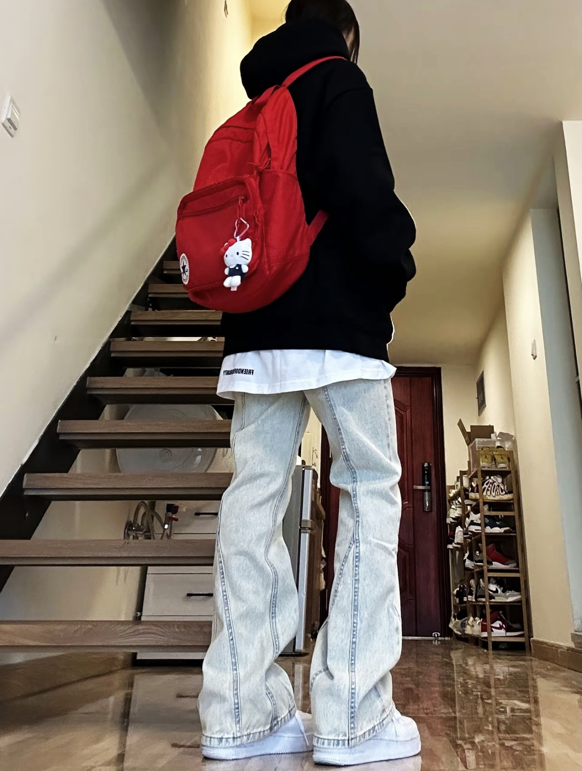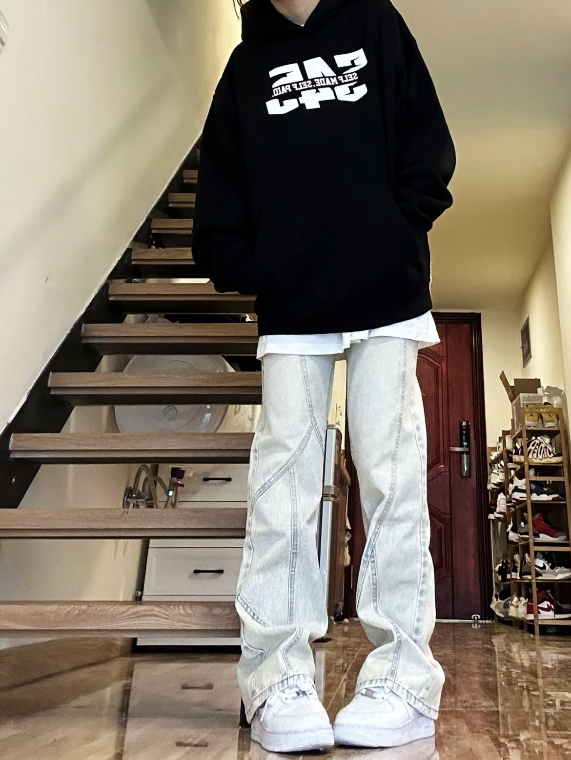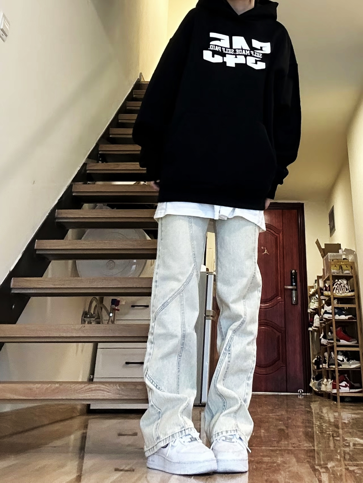 卫衣是很厚实的~秋冬穿这件完全ok 裤子水洗做旧感、直筒版型百搭男女穿都可🥰