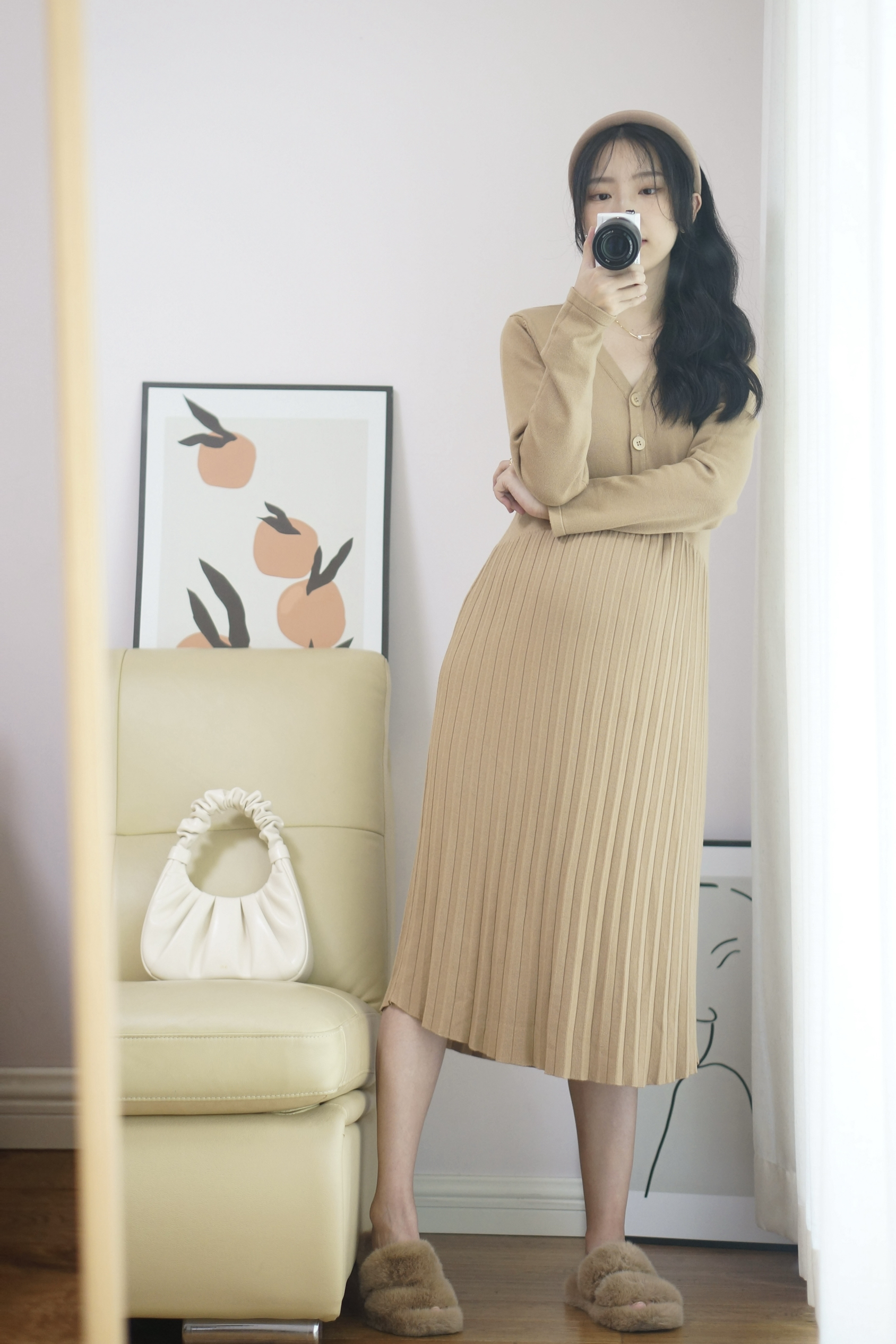 🩷Look1 橘色宝石边夹 粉色打底衣 黑色丝绒背心裙 白色中筒袜 黑色乐福鞋 VS 🤎Look2 棕色宽发箍 金色珍珠耳钉 金色珍珠锁骨项链 卡其色针织百褶连衣裙 棕色毛毛拖鞋 如果选一款约会穿搭 你更喜欢哪一套呢?