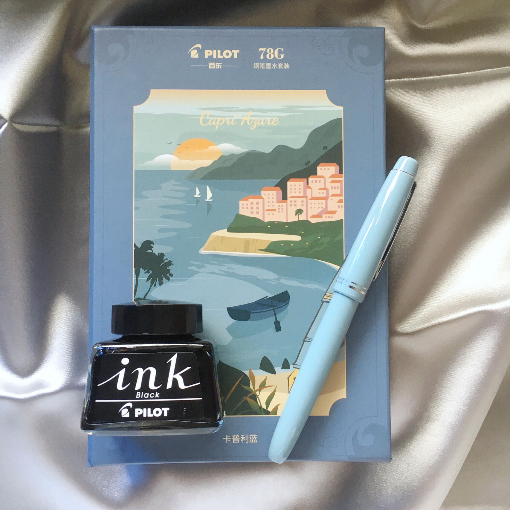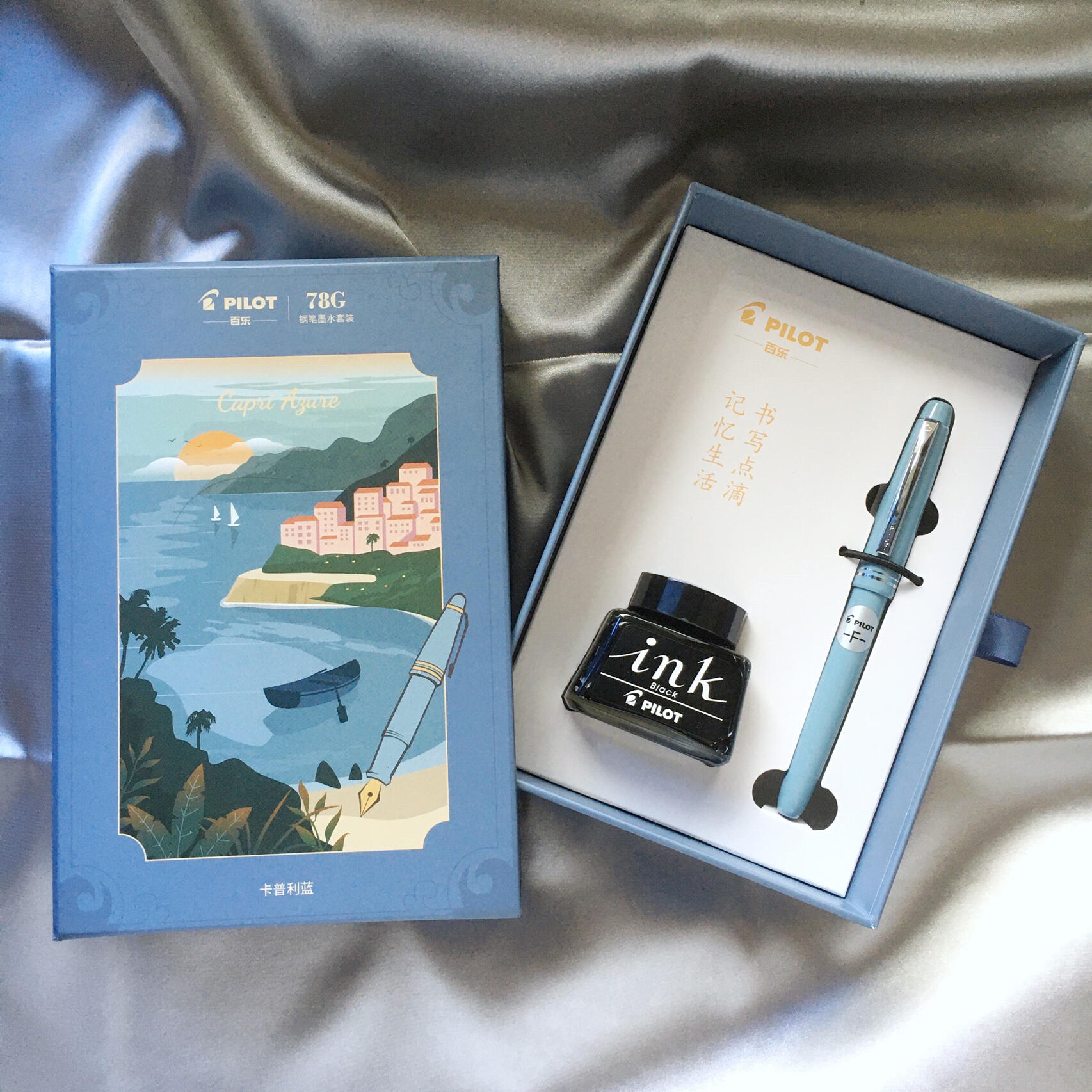 PILOT百乐 78g钢笔礼盒套装💕 我一直写字用的都是百乐的笔,所以对百乐的任何笔都很有好感,这次买的钢笔礼盒,非常适合送人,有钢笔和墨水还送一盒墨胆。 我选的这个卡普利蓝,非常清新舒服。 笔头有三种尖可以选,我选的F尖,比较适合日常写字。 图源网络,侵删