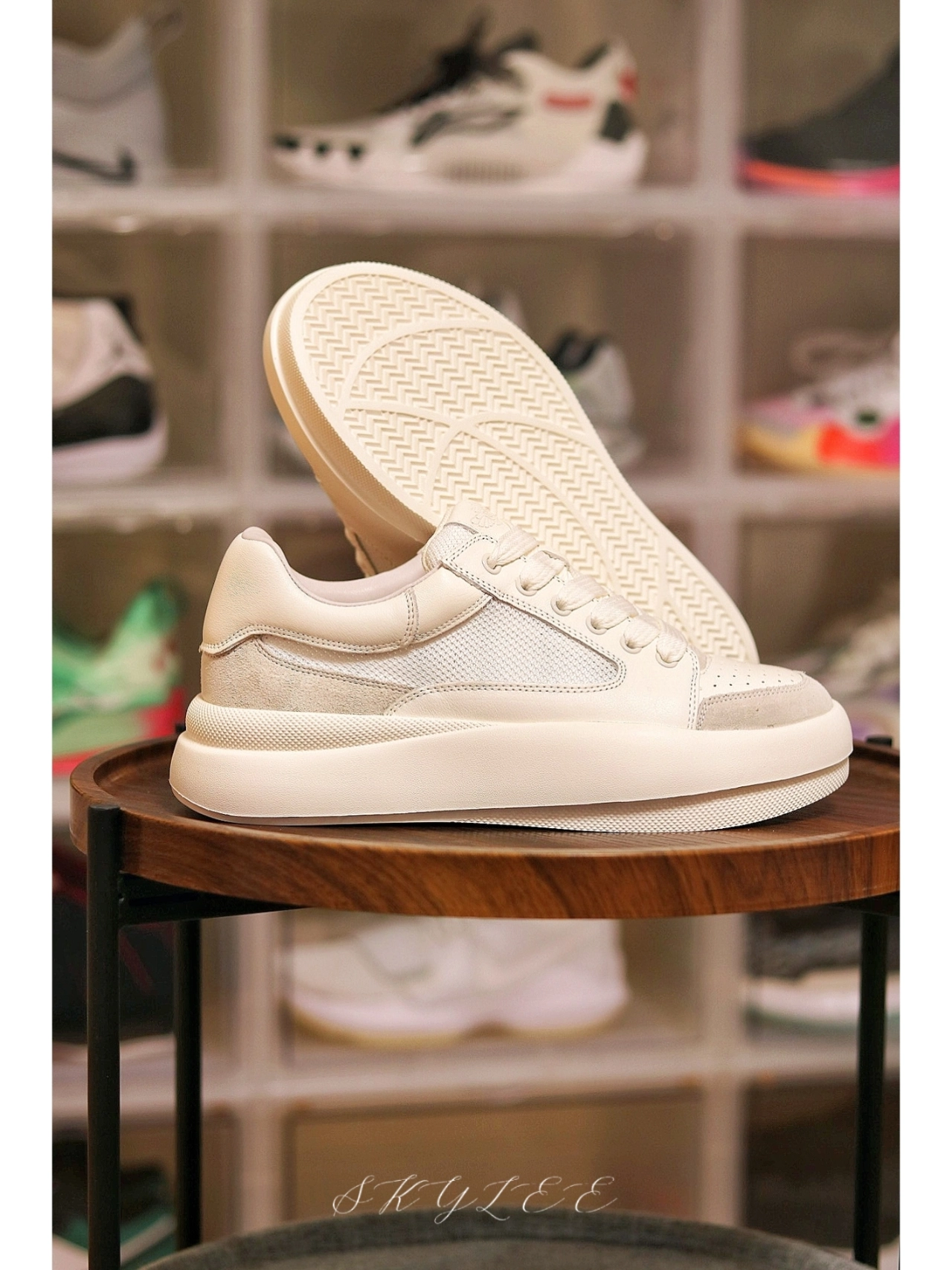 这款小白鞋包裹性很强 我买的正常码 穿的厚袜子 也不挤脚 (本人脚偏瘦)平时搭配短裤 长裤都很适合 鞋底比较硬 本来担心会扳脚 穿下来出现场走一天也不累 喜欢休闲美式穿搭必备款