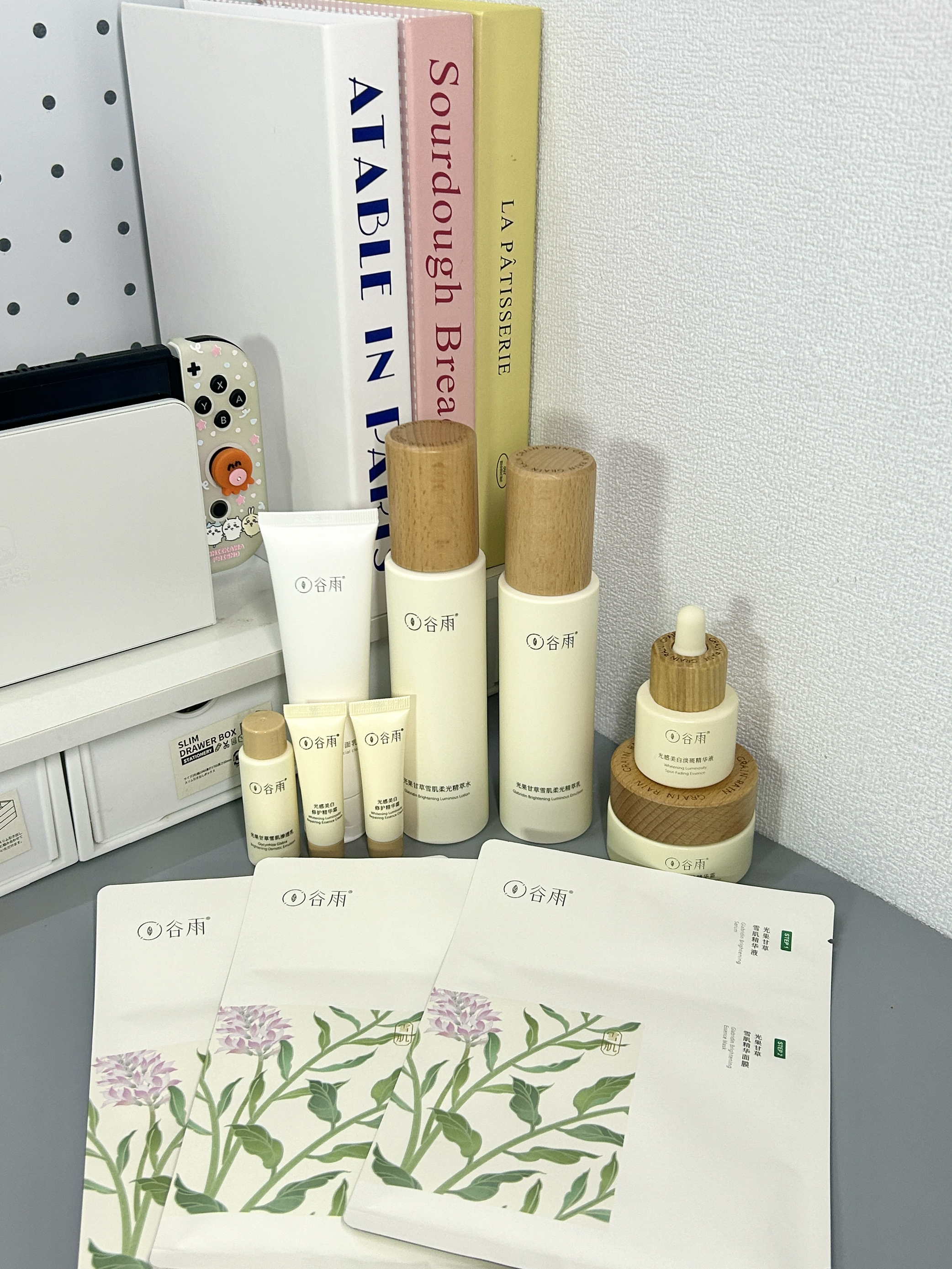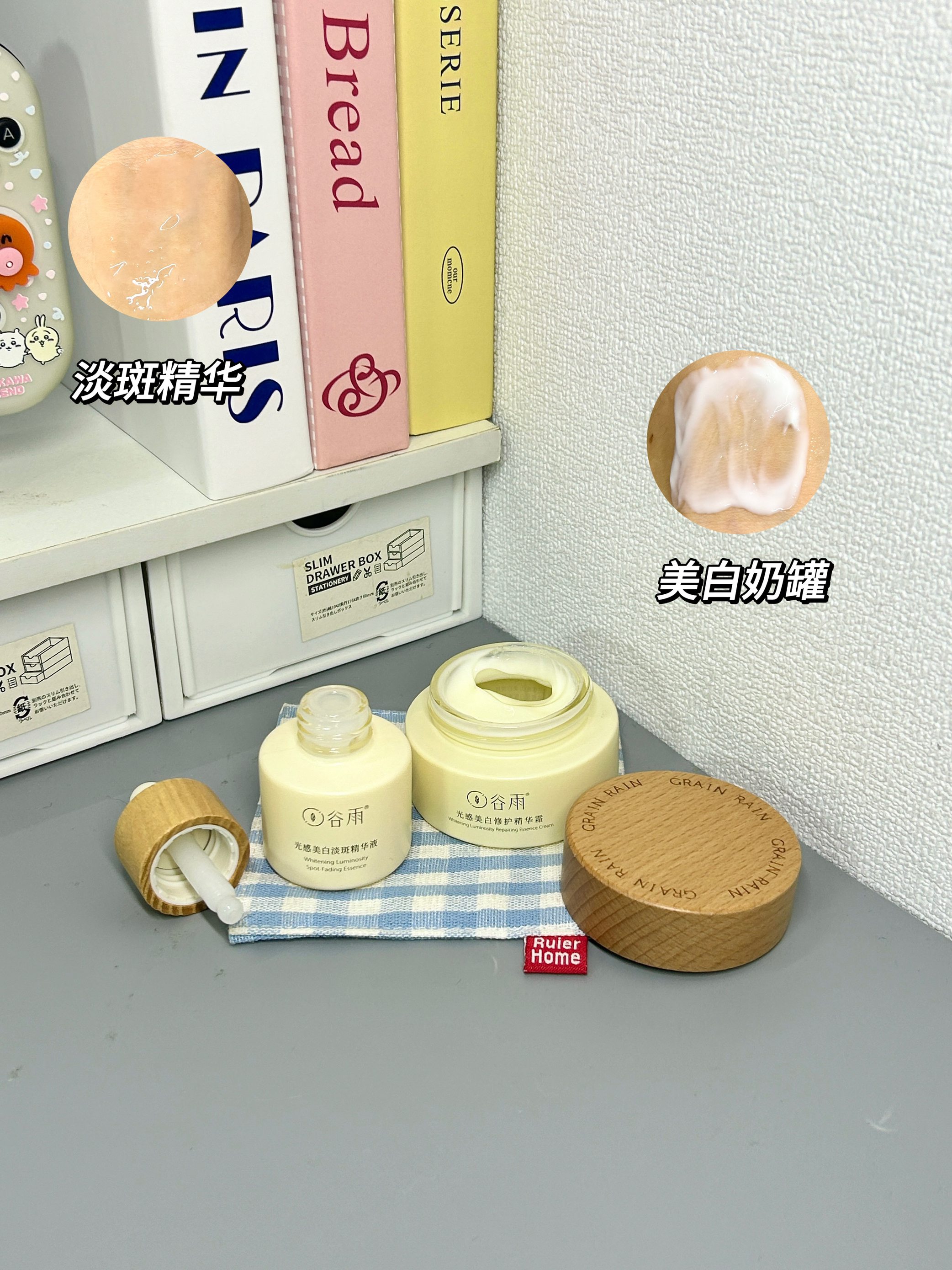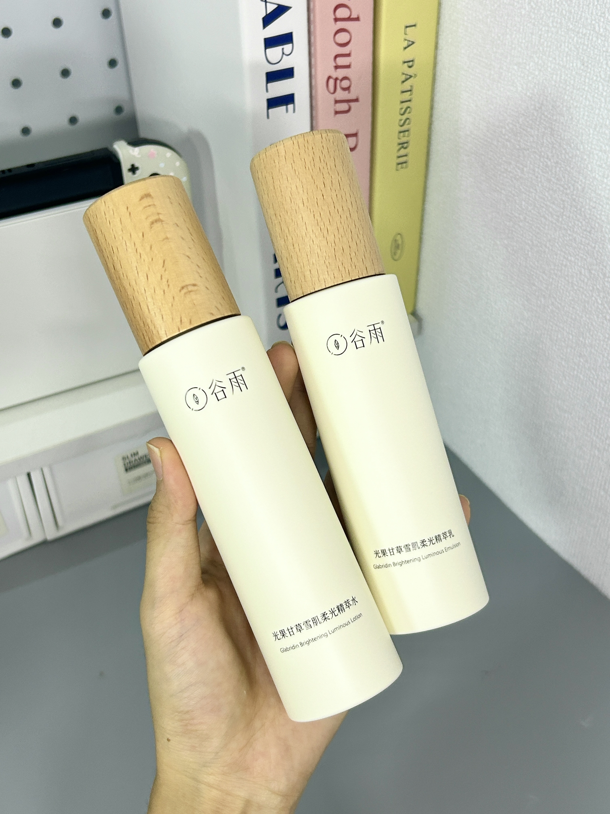 妹妹这段时间开学军训 皮肤晒黑了不少 介套谷雨雪肌水乳就hin适合她用啦 里面一套有雪肌水乳/美白奶罐/淡斑精华/小样 满满一大盒 送人嘎嘎有仪式感 水乳都是清爽那一挂的 妹妹是油皮 夏天用也不会油腻 美白奶罐是奶冻质地 上脸吸收蛮快的 搭配淡斑精华一起用 很不错哦 这套不管是送人还是自用都合适