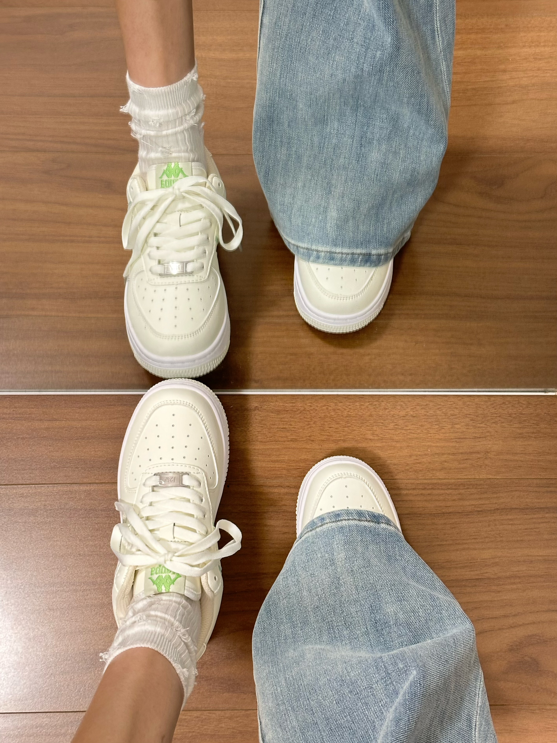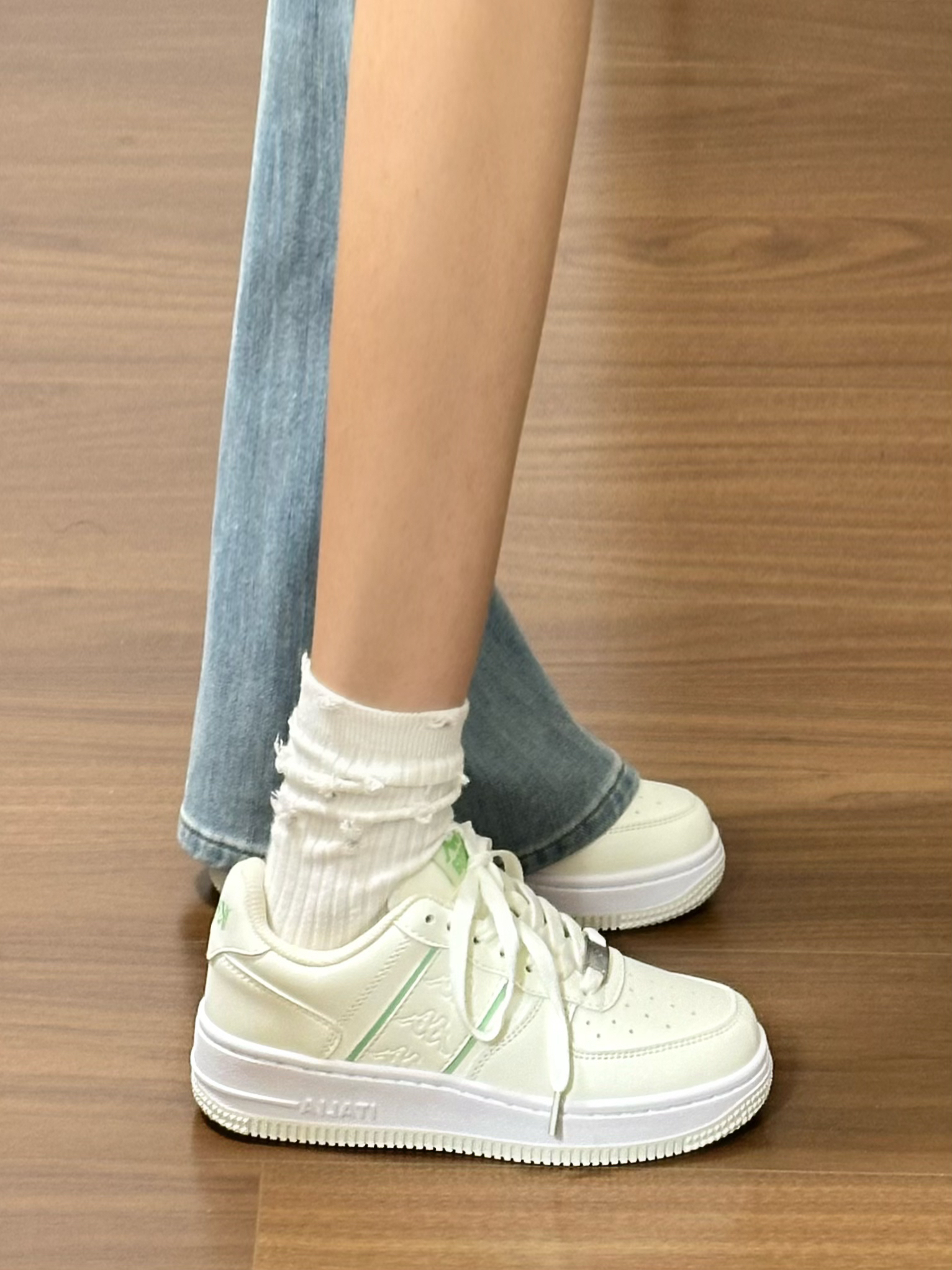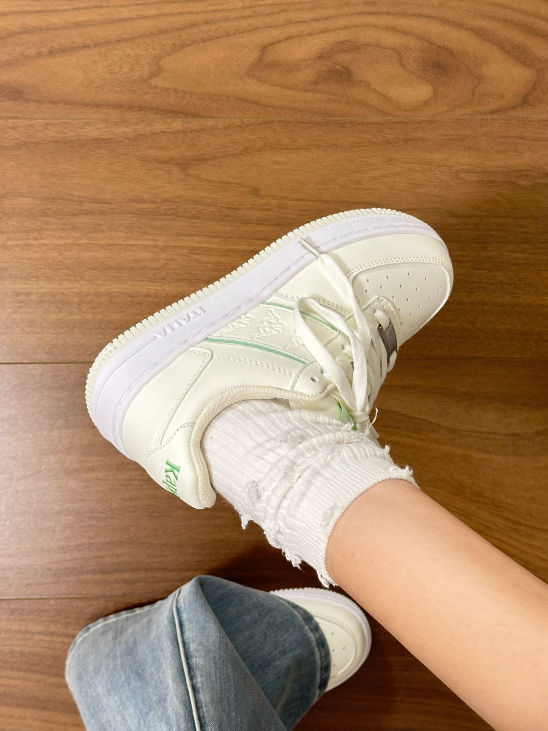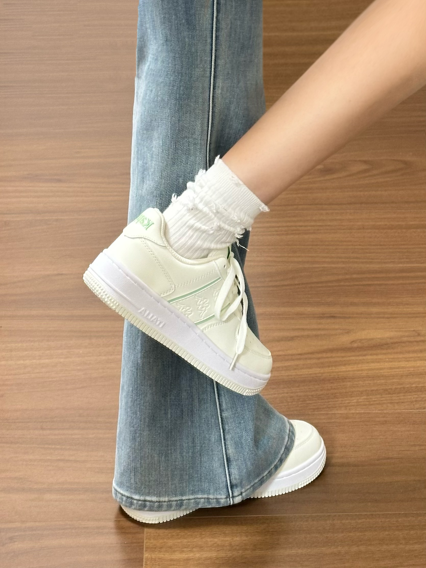如果问我开学鞋子里的number one是谁? 那这双嫩芽绿小白鞋 榜上有名好吧! 不仅颜色清新 还自带增高 显腿长一绝啦! 鞋面也有透气孔 也不会觉得闷 好穿! 鞋侧还有一丢丢线条勾勒感 蛮特别的! 好穿又百搭 谁会不爱啊啊 耶耶耶! #开学穿这双好鞋 #鞋控的日常 #小白鞋厚底增高