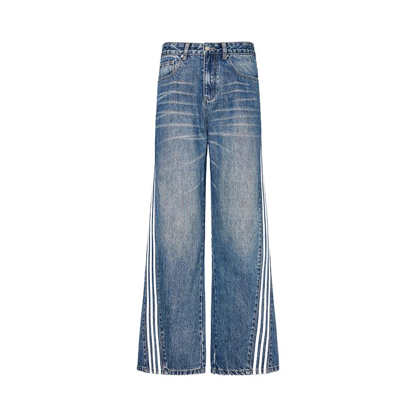 啊啊啊这条蓝色条纹牛仔裤也太帅了吧,宽松直筒版型,上身好看显高显腿长的,美式复古水洗做旧蓝色很百搭,随便搭配一下就很好看,男女同款,面料软硬适度有垂感,微微喇的感觉,谁穿谁酷,我真的太爱这条牛仔裤了!是谁还没有这条牛仔裤啊?