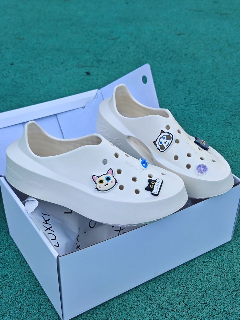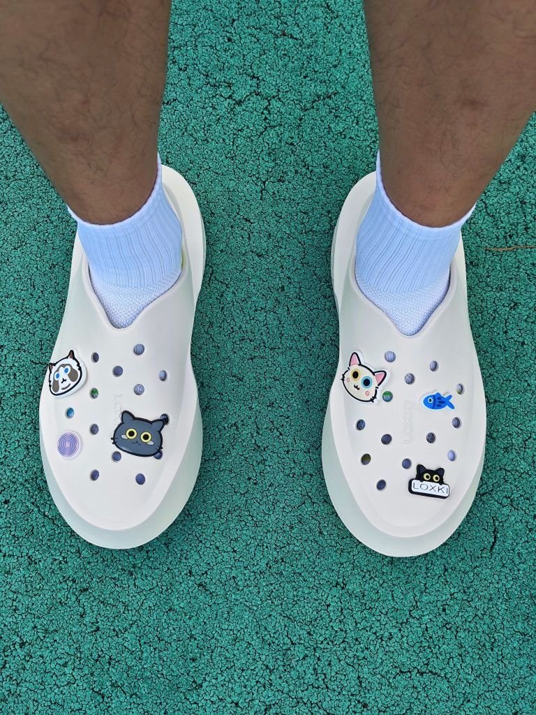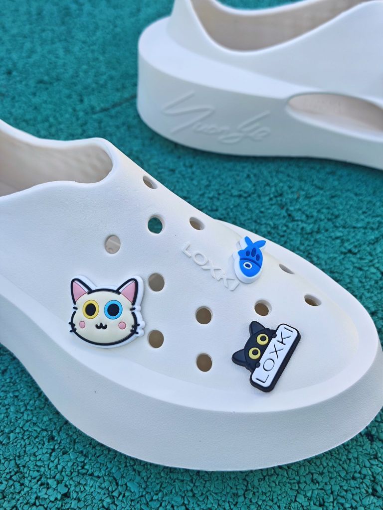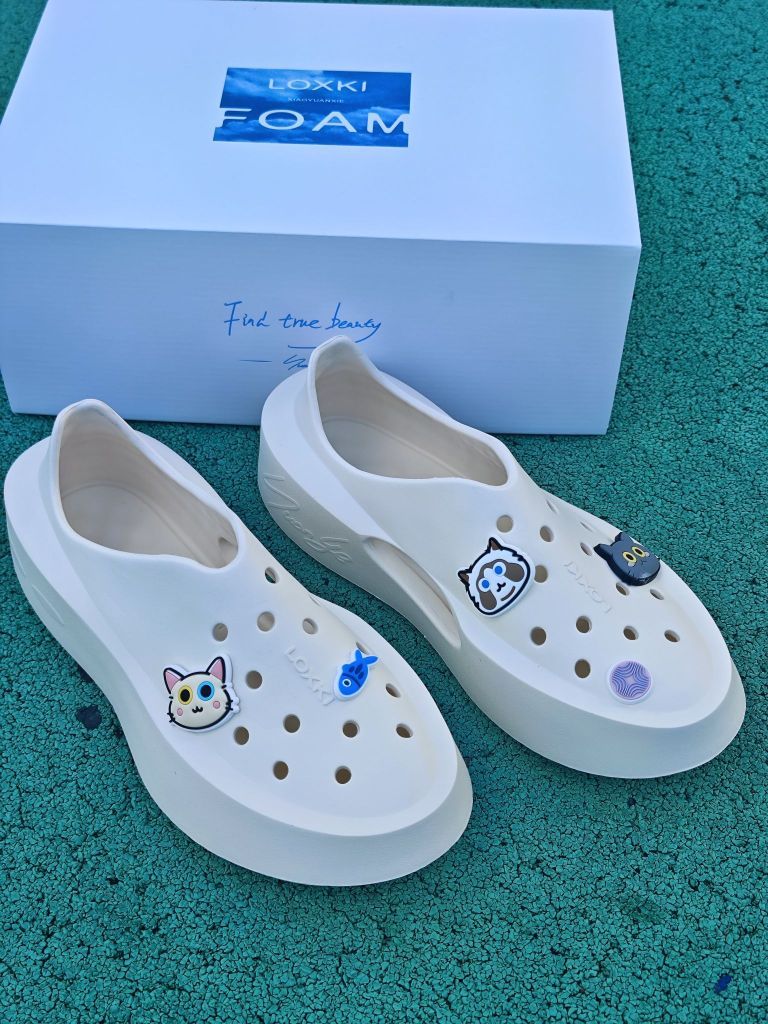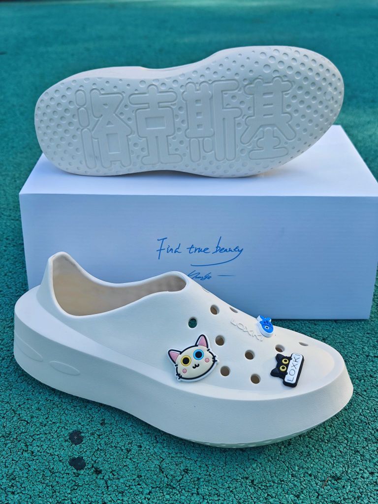 夏天谁不想要一双舒适的洞洞鞋,要是颜值再高点那就再好不过了 这双loxki洛克斯基洞洞鞋完美解决上面的问题, 造型上延续loxki的小圆鞋,这个纯白颜值还是很高的,随盒还付送了一包小猫鞋花,可以自己随心搭配,洞洞鞋也不会显得很单调 ,一体成型EVA发泡的鞋身, 上脚很轻便舒适,尺码方面正码正拍即可 所以你是喜欢有鞋花的点缀,还是更爱纯白的搭配?! 一开的价格也很适合学生党入手