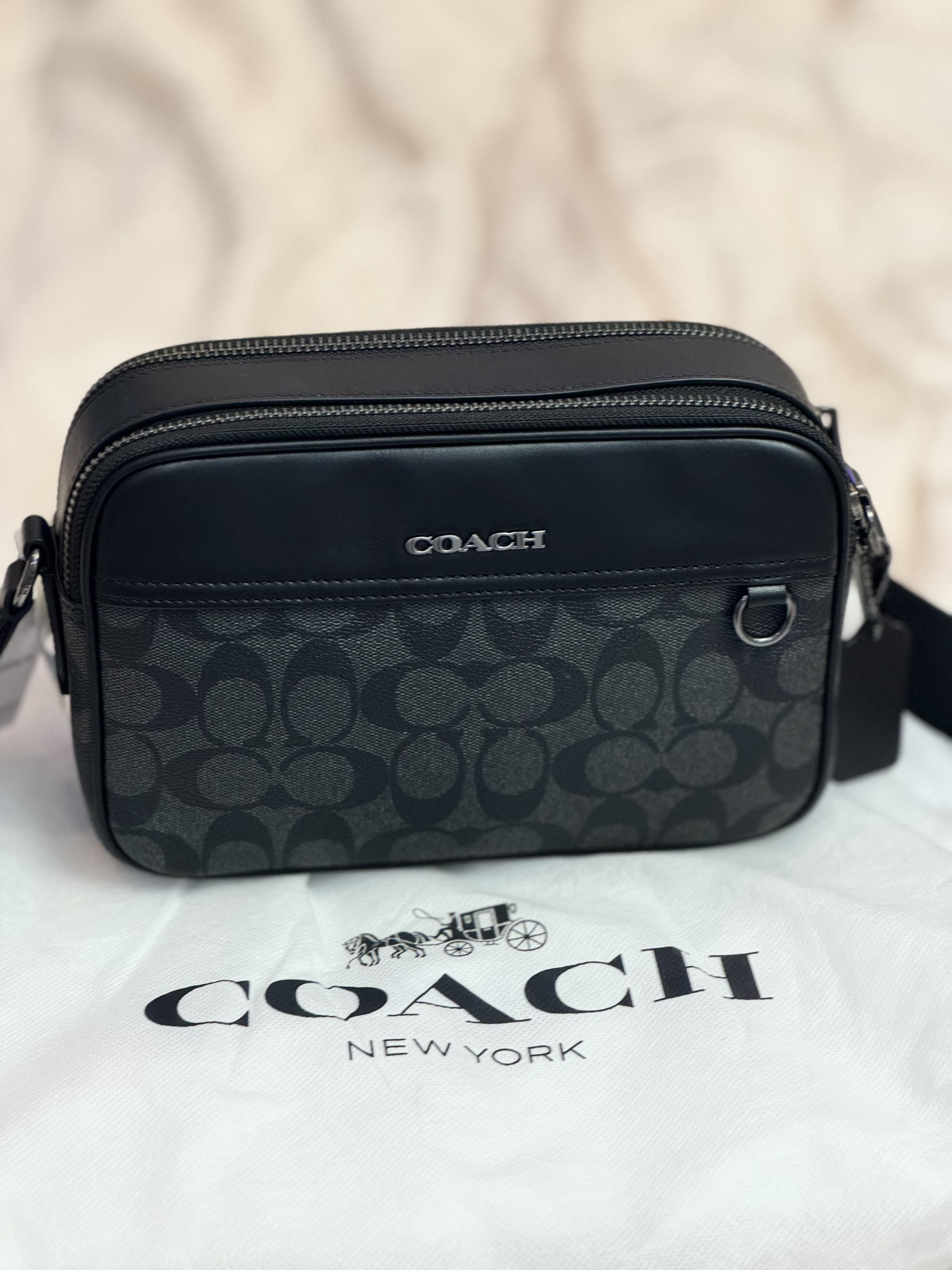 本篇笔记关联了Coach Graham 23 小号 帆布配牛皮老花拼色拉链开合相机包单肩斜挎包 炭黑色等商品,为用户提供真实的使用体验和购买参考。