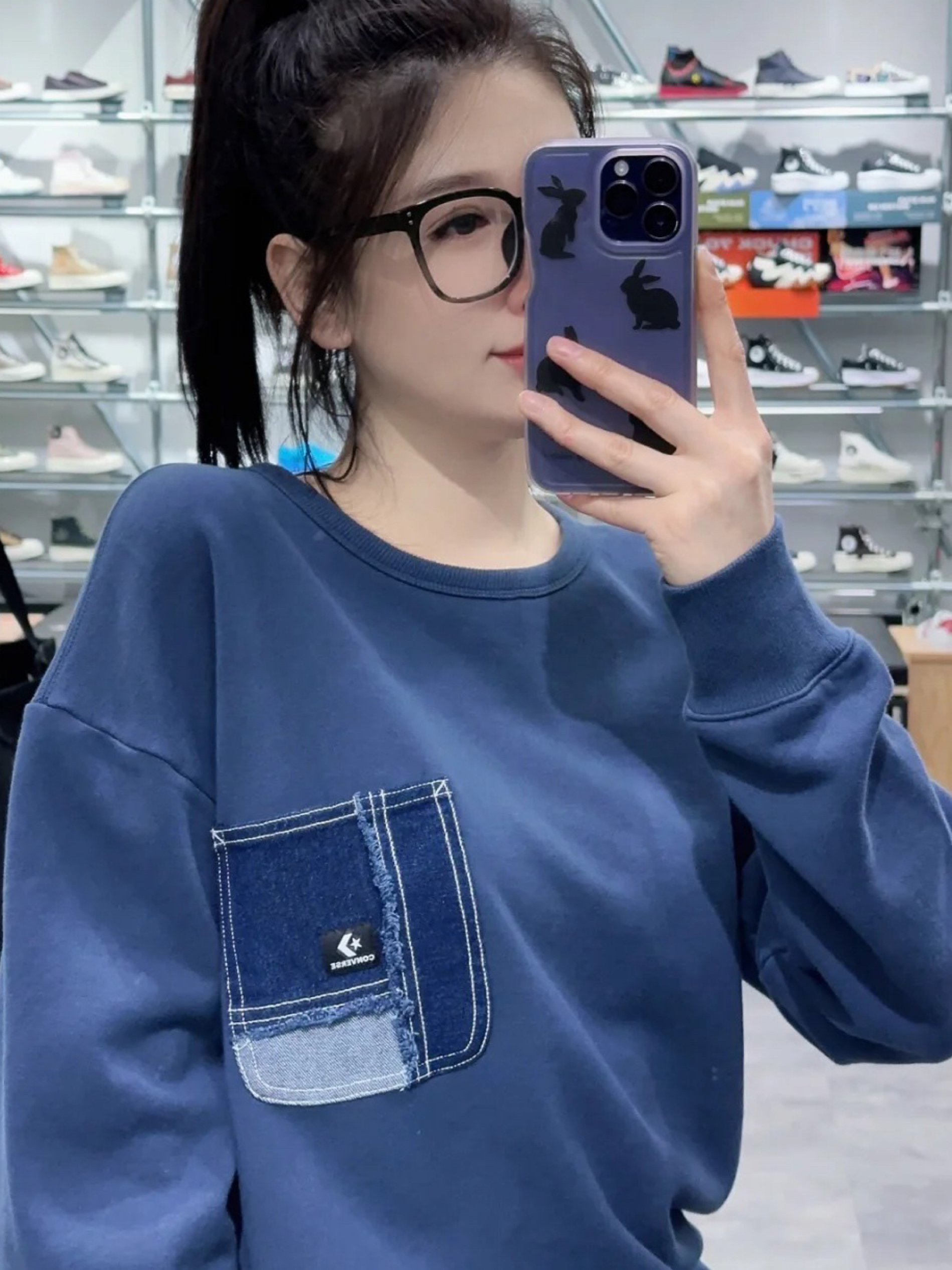 特步不愧是你!! 蓝色卫衣也太显白显嫩啦 搭配龙年配色板鞋 一套也太休闲舒服啦~