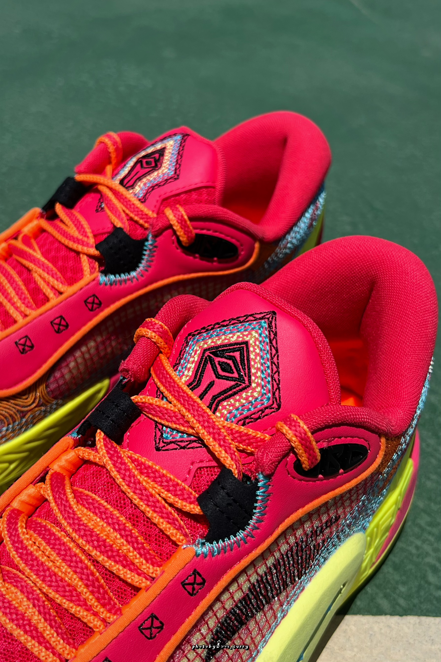 这狂潮6的配色是真够狂! 花里胡哨的这才有狂潮的感觉嘛👀 鞋身的细节也是真的很丰富 据说又是源自印第安文化? 最具特色的还是侧面的“香肠嘴”结构 到底是歪嘴🫤龙王还是悲伤蛙❓ 鞋舌的Logo有点灵魂之眼👁️内味儿了 配置也是很不错的 脚感以及实战效果都是很可以的👍 个人感觉比起Pro版本 穿着体验要更为舒服一点~
