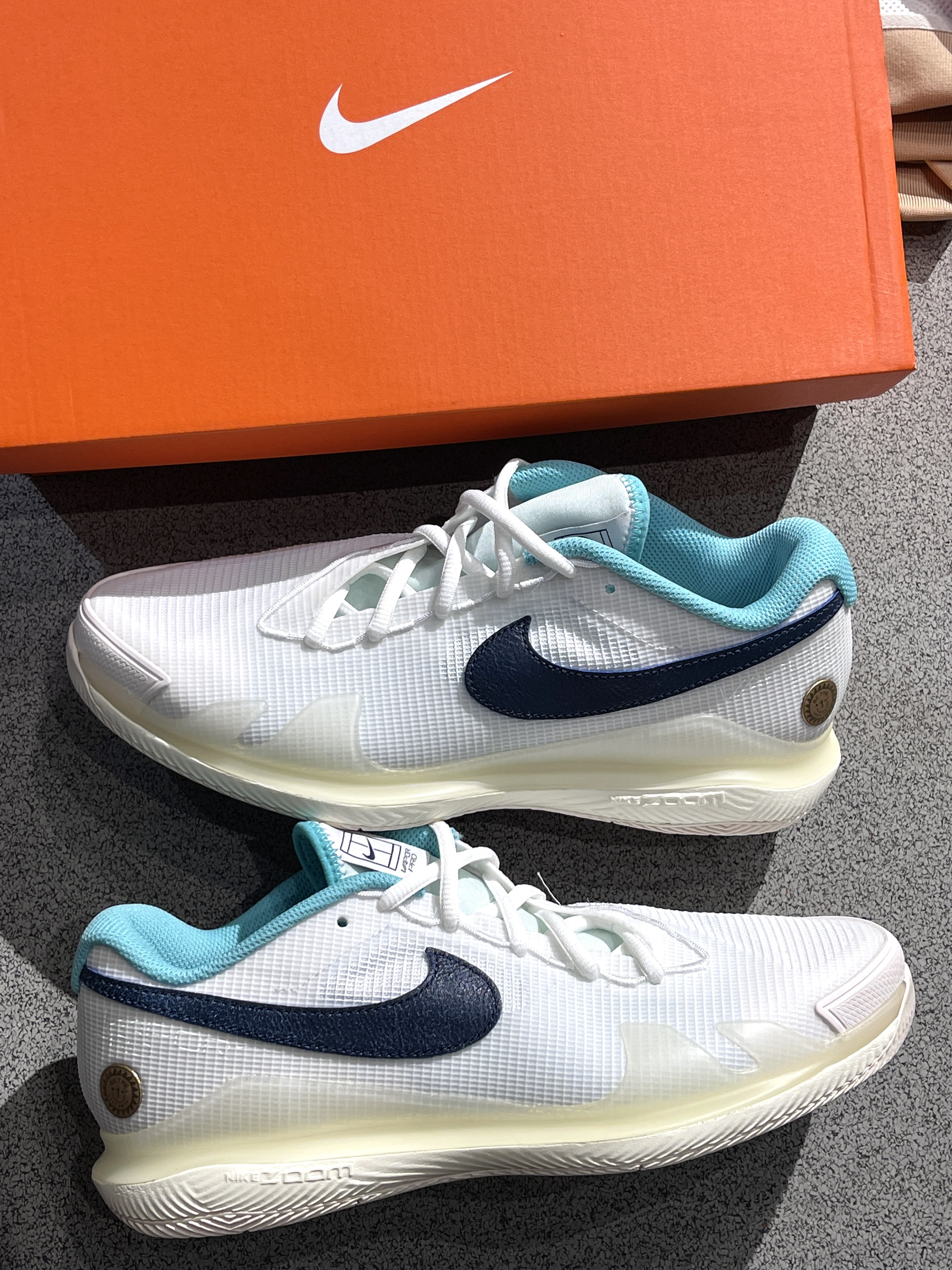 网球鞋最近大火哦,你的第一双网球鞋是哪双⁉️ Nike|Air Zoom Vapor pro 低帮网球鞋“乳白色”,实物开箱给人比较扎实的感觉!😎工程网眼鞋面搭配上紧致的鞋型、鞋周上翻保护,整体安全感十足!耐磨大底➕Air Zoom加持,脚感也是比较舒服~😍