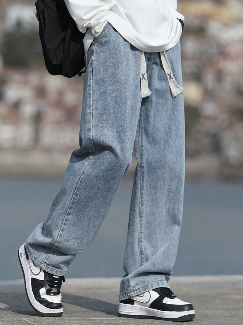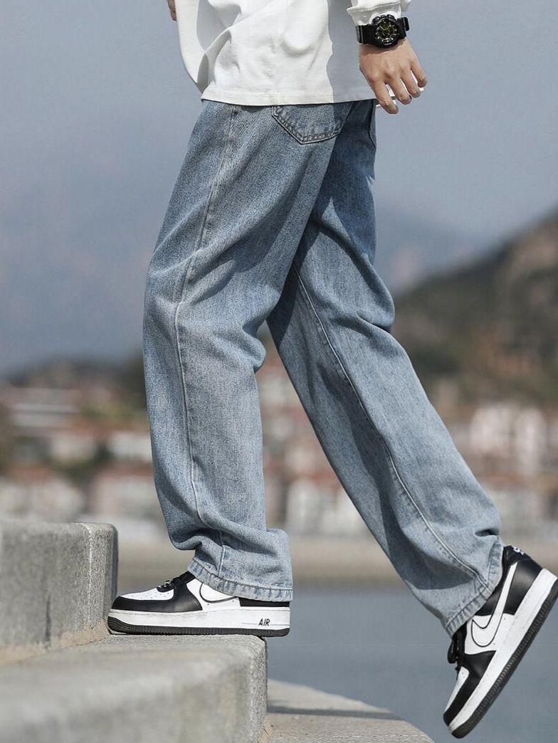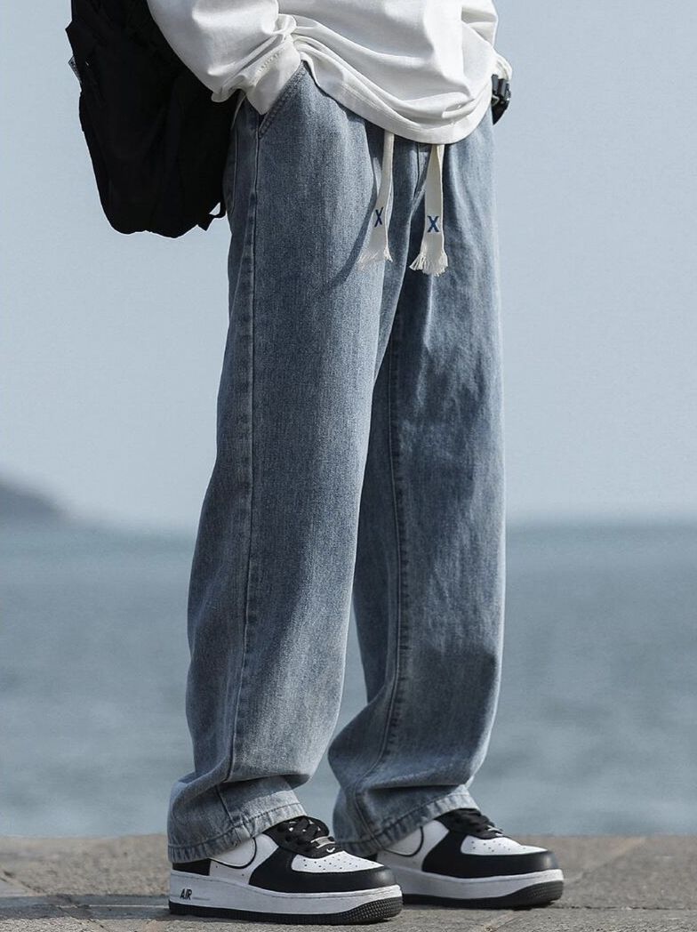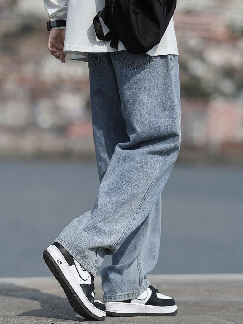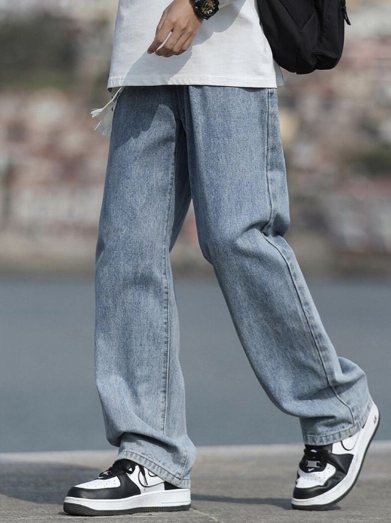 ✨宽松直筒的牛仔裤,让胖胖的男生们,不用担心被束缚!!立体版型,只看得见版型,看不到腿型,显高又显瘦!! ✨首选蓝色,秋天跟白色真的巨百搭,很有cleanfit感觉!!棉质面料,透气舒适,缺点就是价格不贵,展示不出大佬的气质!!! (图源网络侵删)