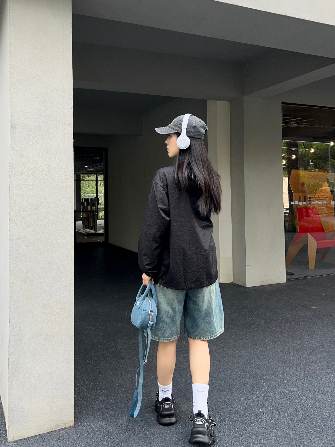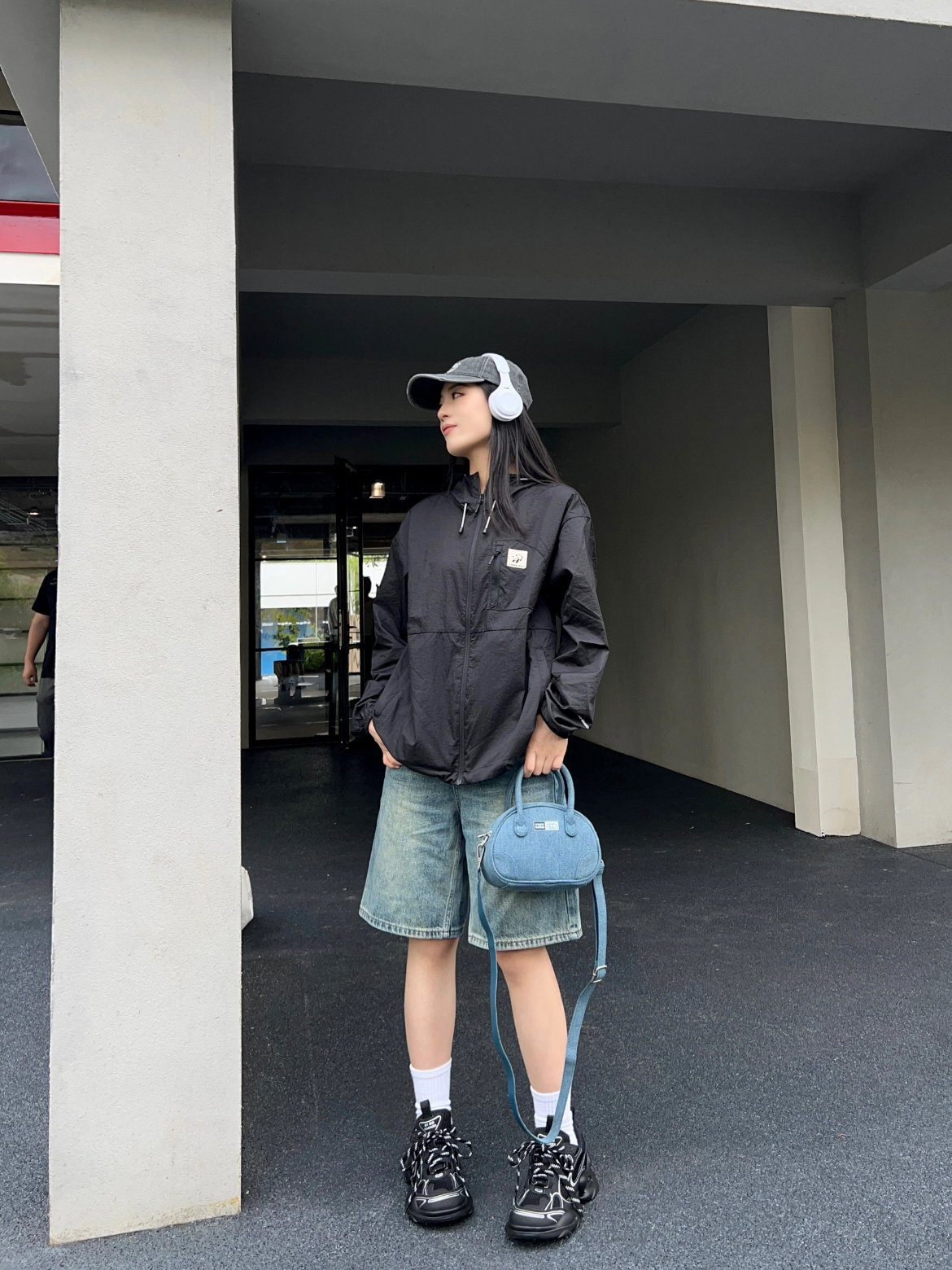 我好喜欢这件黑色冲锋衣,太酷了!版型很大很宽松,任何身材都可以穿。简约的设计风格,百搭又不挑人!面料是防风防水的,户外无压力!搭配了口袋工装五分裤,休闲又随性~ (图片来自网络,侵删)