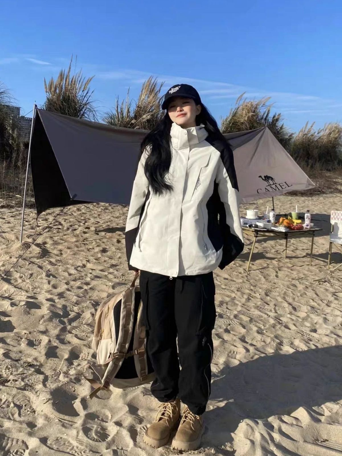 该说不说冲锋衣穿上真的很酷 防风防水的衣服对我来说简直太方便了🆒 但这件比较薄 想冬天穿的话要在里面加羽绒内搭 ➖我168/115穿的L 偏大一点 图片来源于@红朵朵绿泡泡