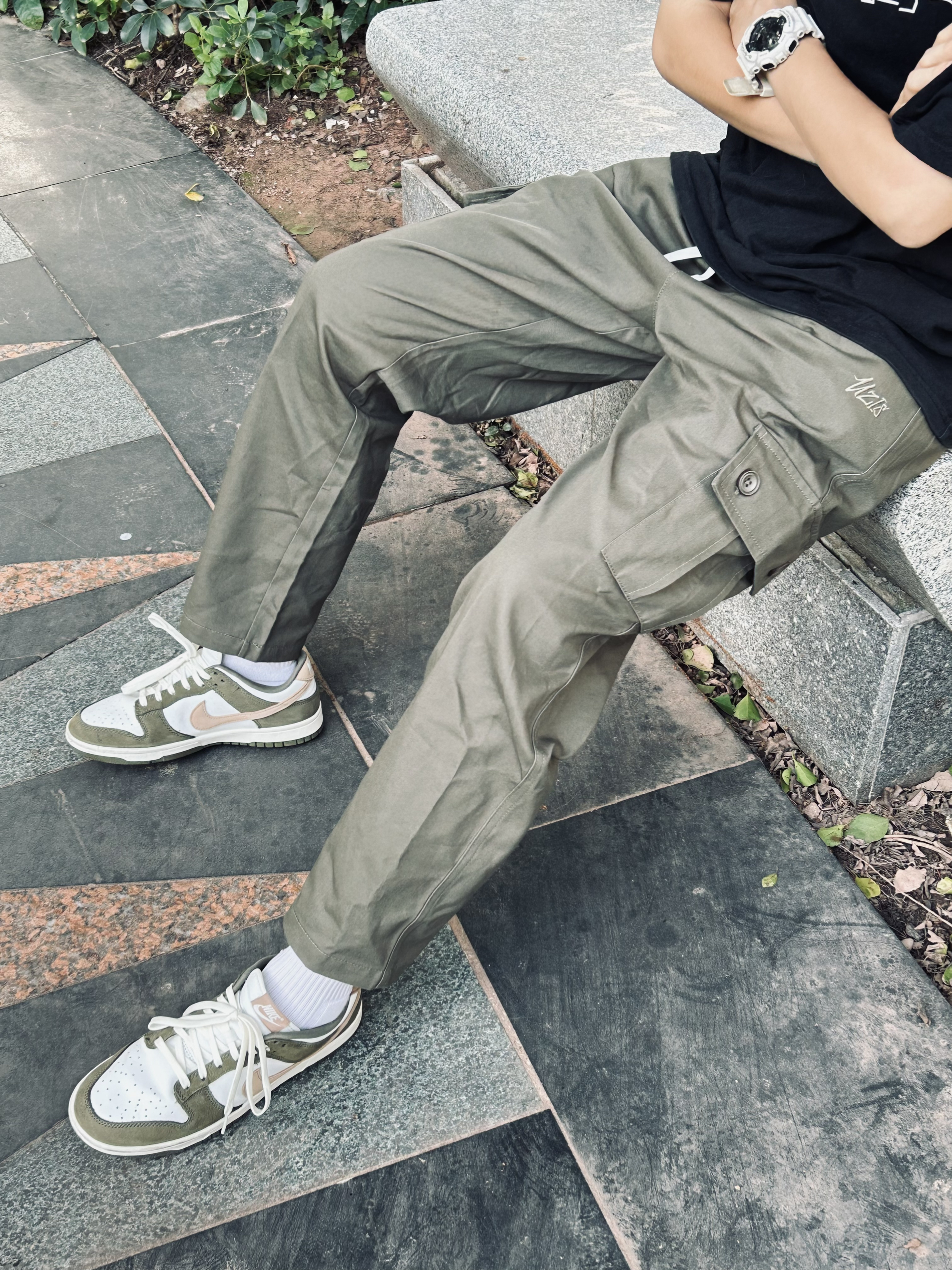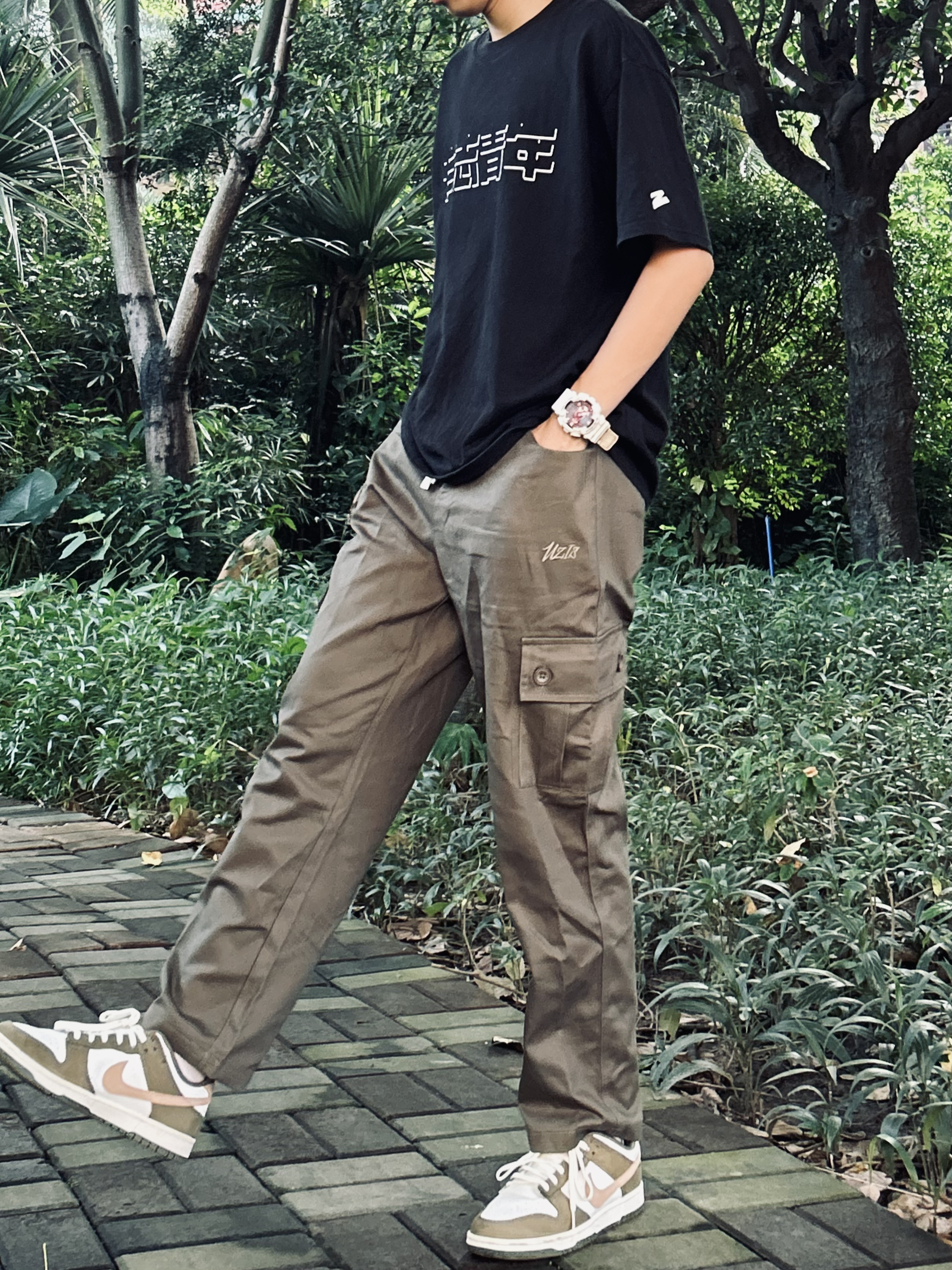 经典工装裤改良 又帅又能打的山语系列 大容量口袋+刺绣标 搭配一双橄榄绿的Dunk 回头率简直🐛