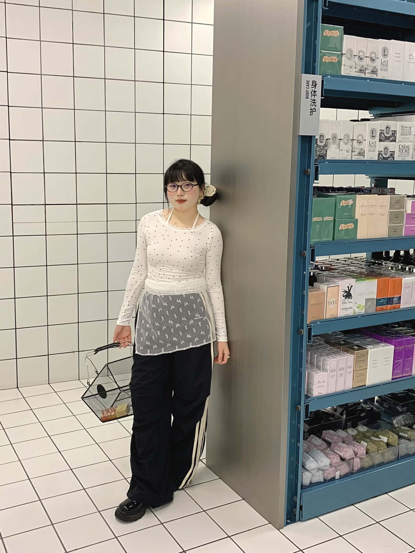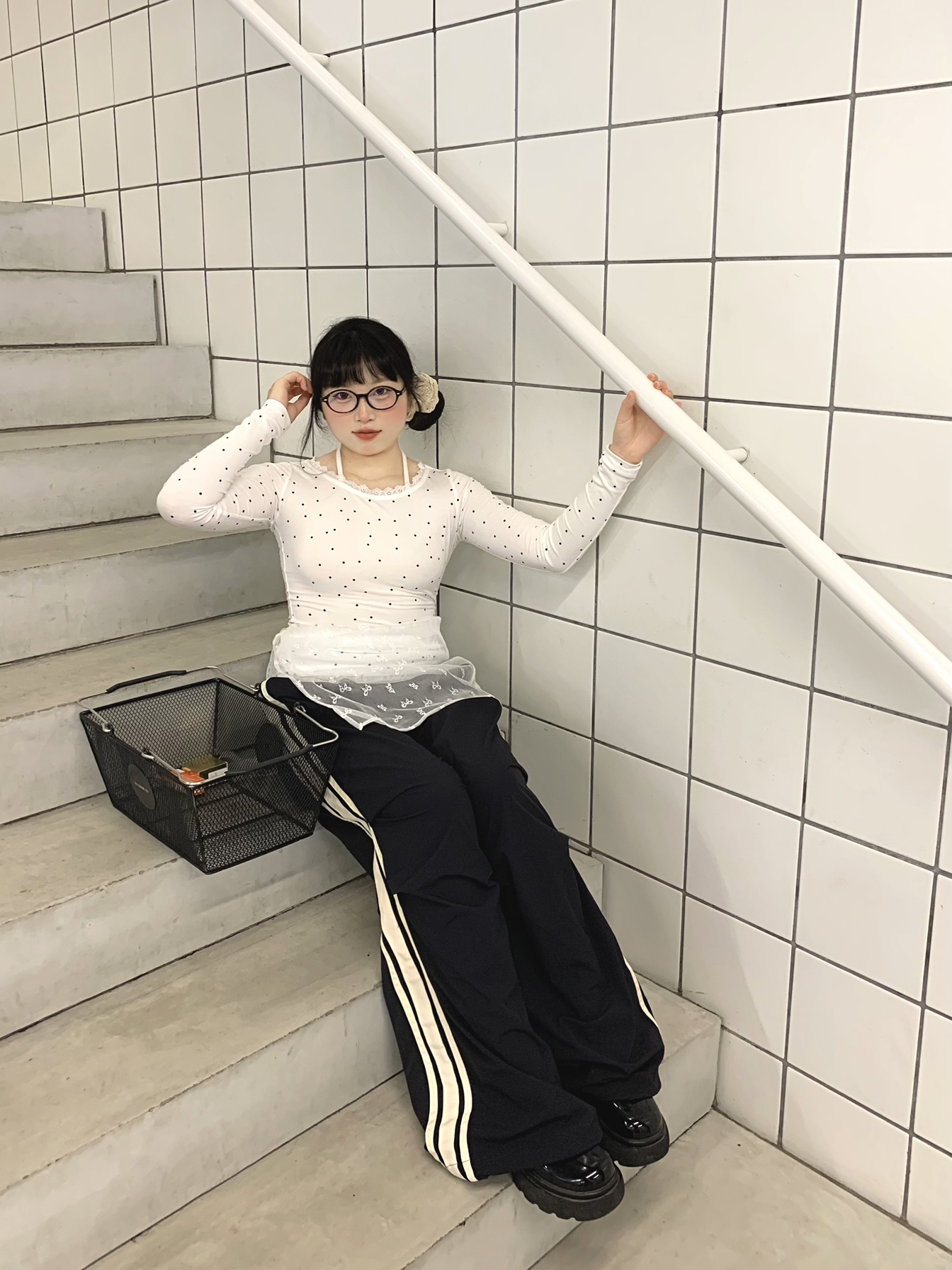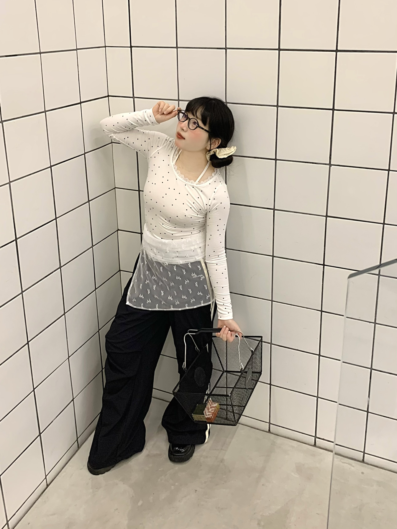 我勒个豆 小个子第一次尝试波点➕伞兵裤 好韩!!! 好喜欢 打开了新风格 波点真的好百搭啊啊啊啊 超喜欢这套 被好多人夸好韩系!!!