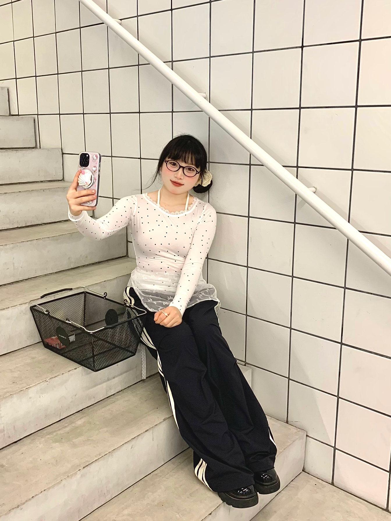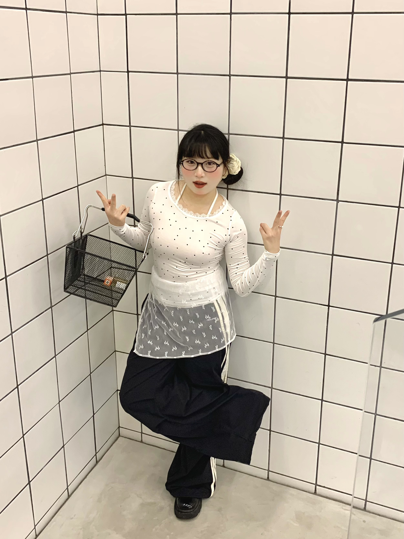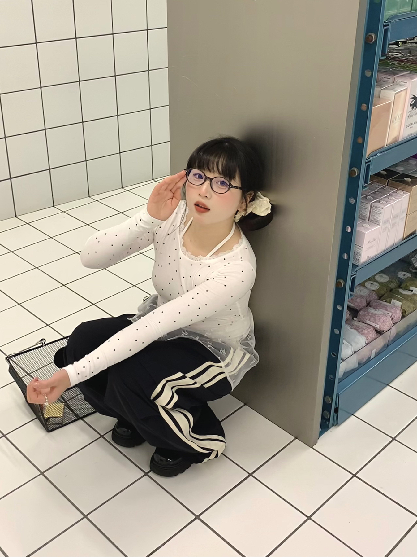 我勒个豆 小个子第一次尝试波点➕伞兵裤 好韩!!! 好喜欢 打开了新风格 波点真的好百搭啊啊啊啊 超喜欢这套 被好多人夸好韩系!!!