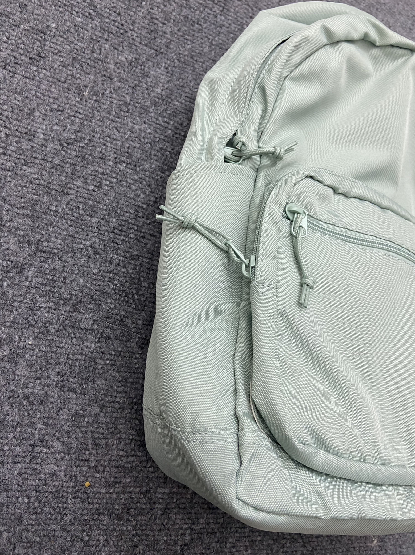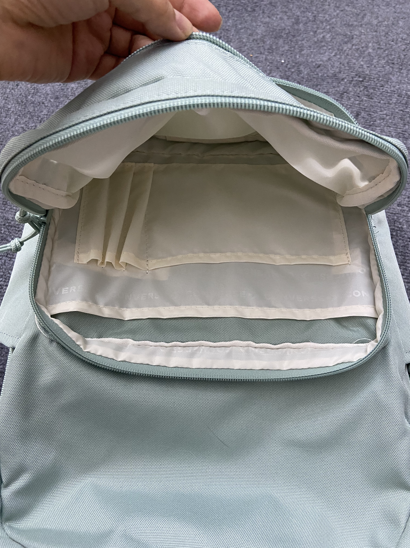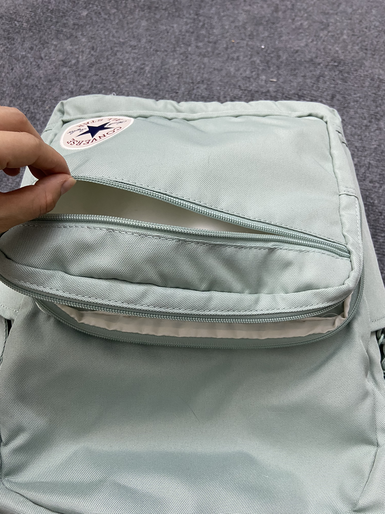 奶呼呼的薄荷绿色 一眼爱住!直戳心窝~ 包包是那种简约的款式!很百搭造型感强~ 不会说挑穿搭啥的!背上就很有清新感!少年感! 容量很大 可以放下我的笔记本书本和其他乱七八糟的 里边还有很多小格子收纳我零七杂八的小东西 很方便!挂个小挂件也是贼好看了!