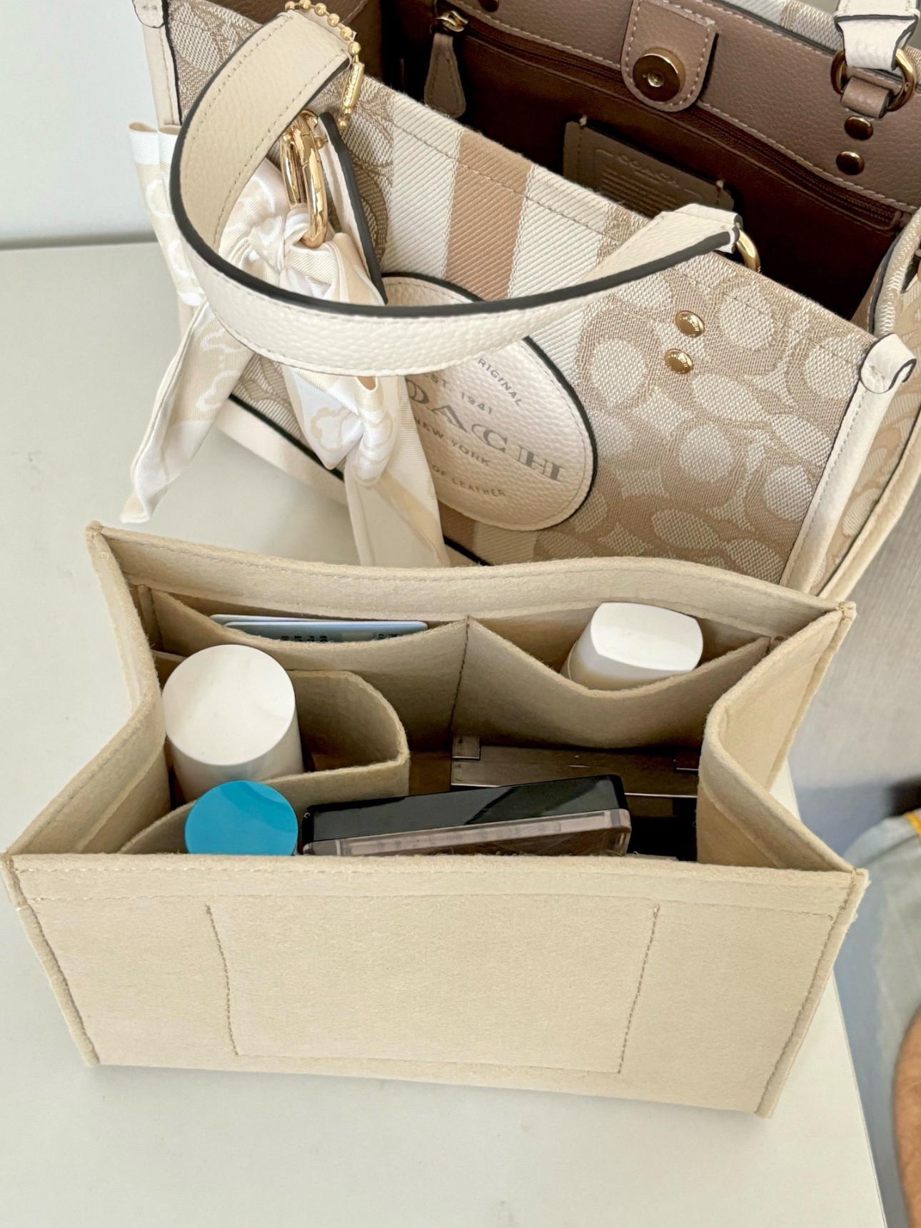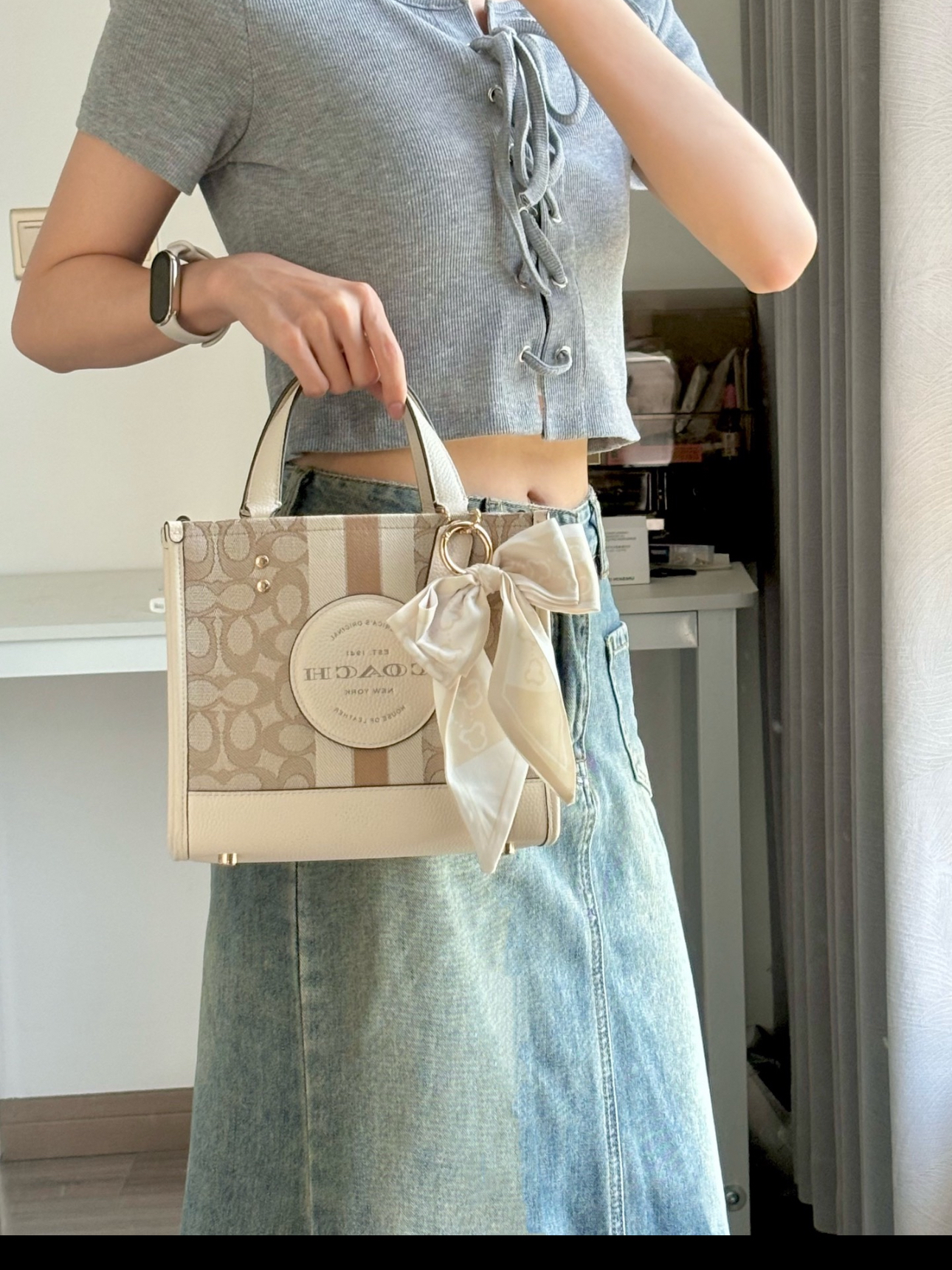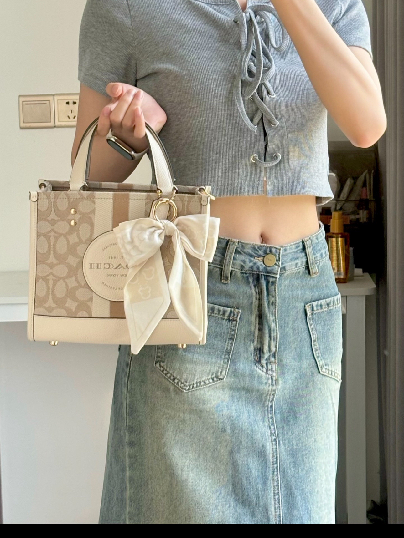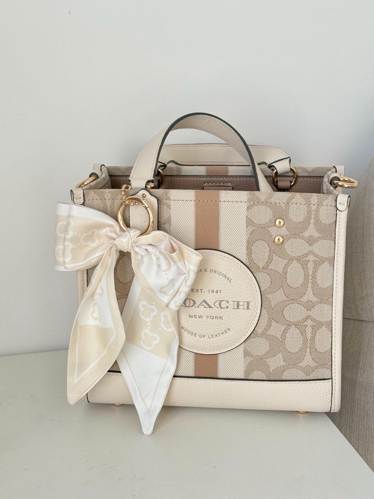 闲不下来一点,就是要给自己的coach整点花样,这样她才是最独特的! 继包包挂件之后,我又发现了包包丝巾,系在方形的托特上更添一丝俏皮, 自从尝试了内胆的香之后每一个包我都要给他搭配一下内胆哈哈哈,因为真的很方便收纳!!这个内胆也是毛毡的,特别轻 我不管,我的dempsey22是最独特的小蔻~