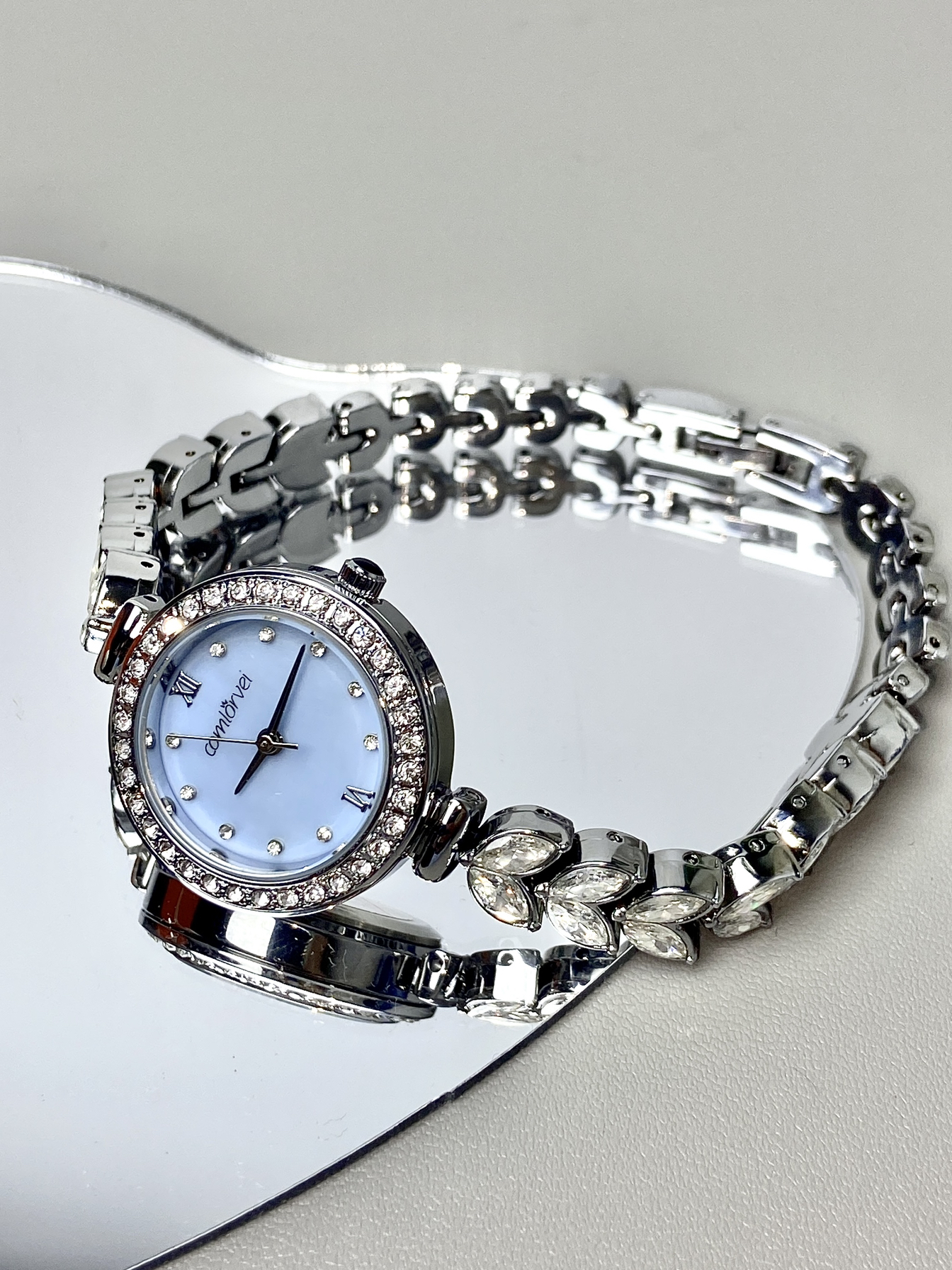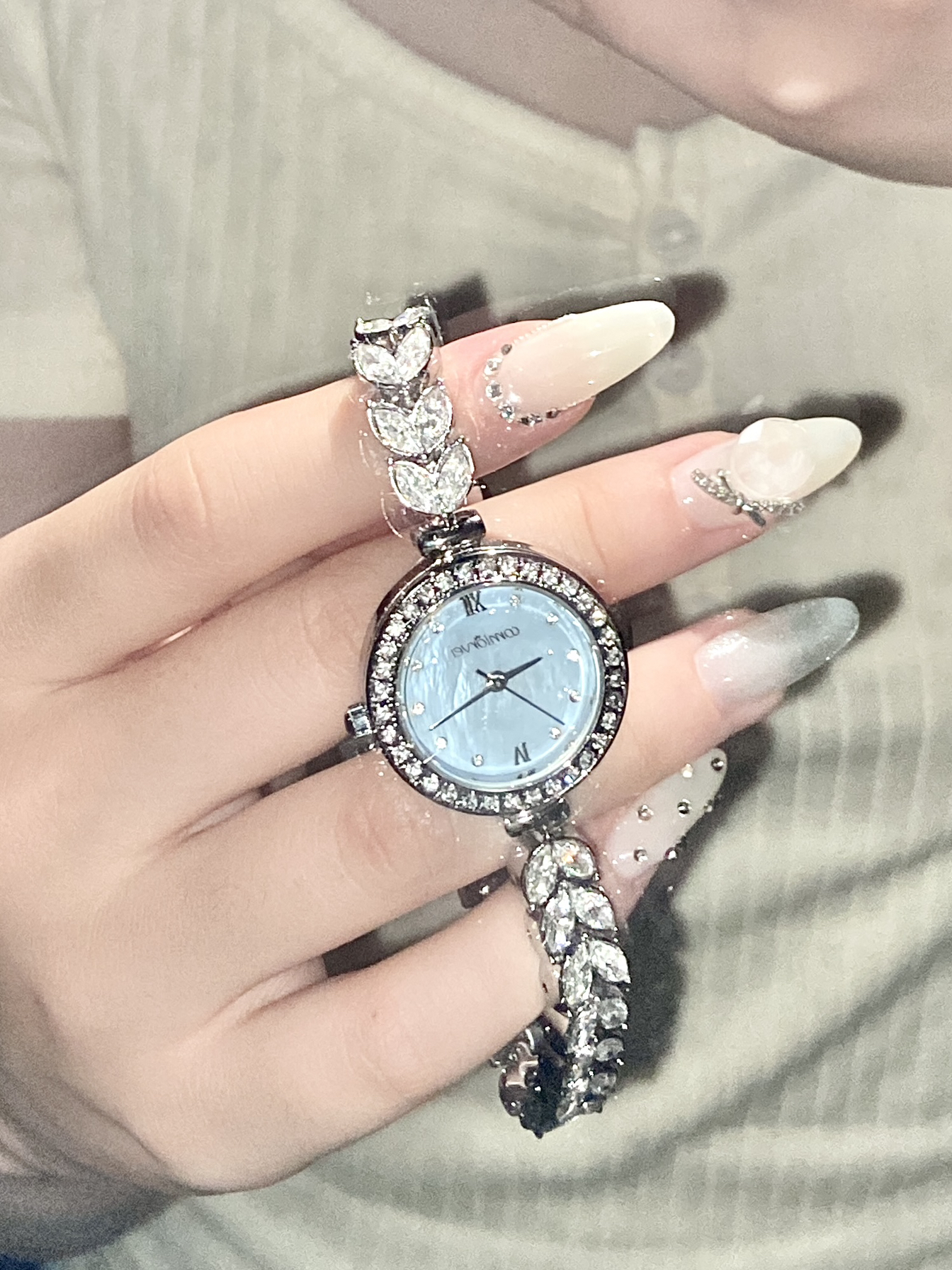 我真的一眼爱上!简直就是我的梦中情表🥹 真的太!闪!啦! 表带是鱼尾造型的 上面全部镶嵌了锆石 表盘周围还有一圈钻 一整个bulingbuling的✨ 我最爱的还得是这个表盘!! 蓝色的幻彩贝母🧊在不同光线下会有不一样的光泽~很有层次感! 戴上就是富家千金即视感 真的很显贵气!! 送给闺蜜👭或者女朋友太适合不过了