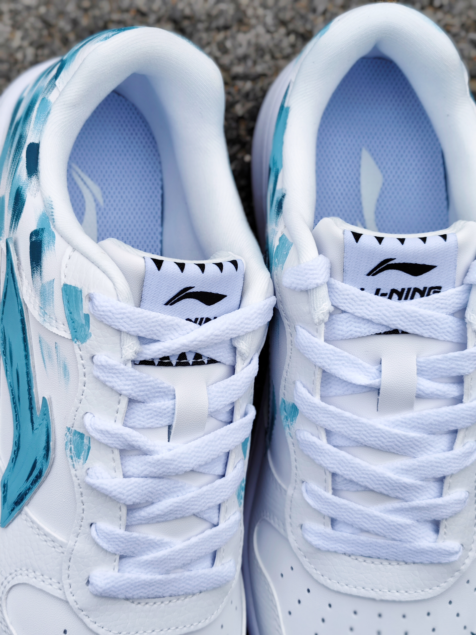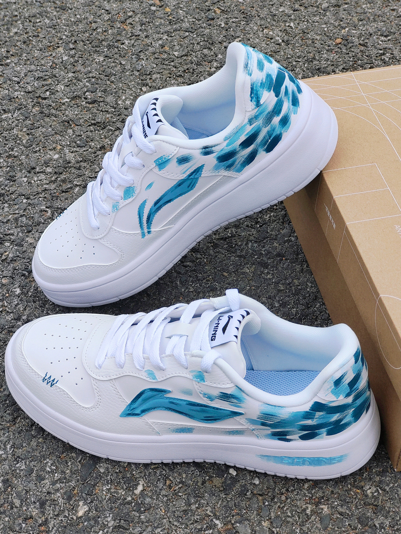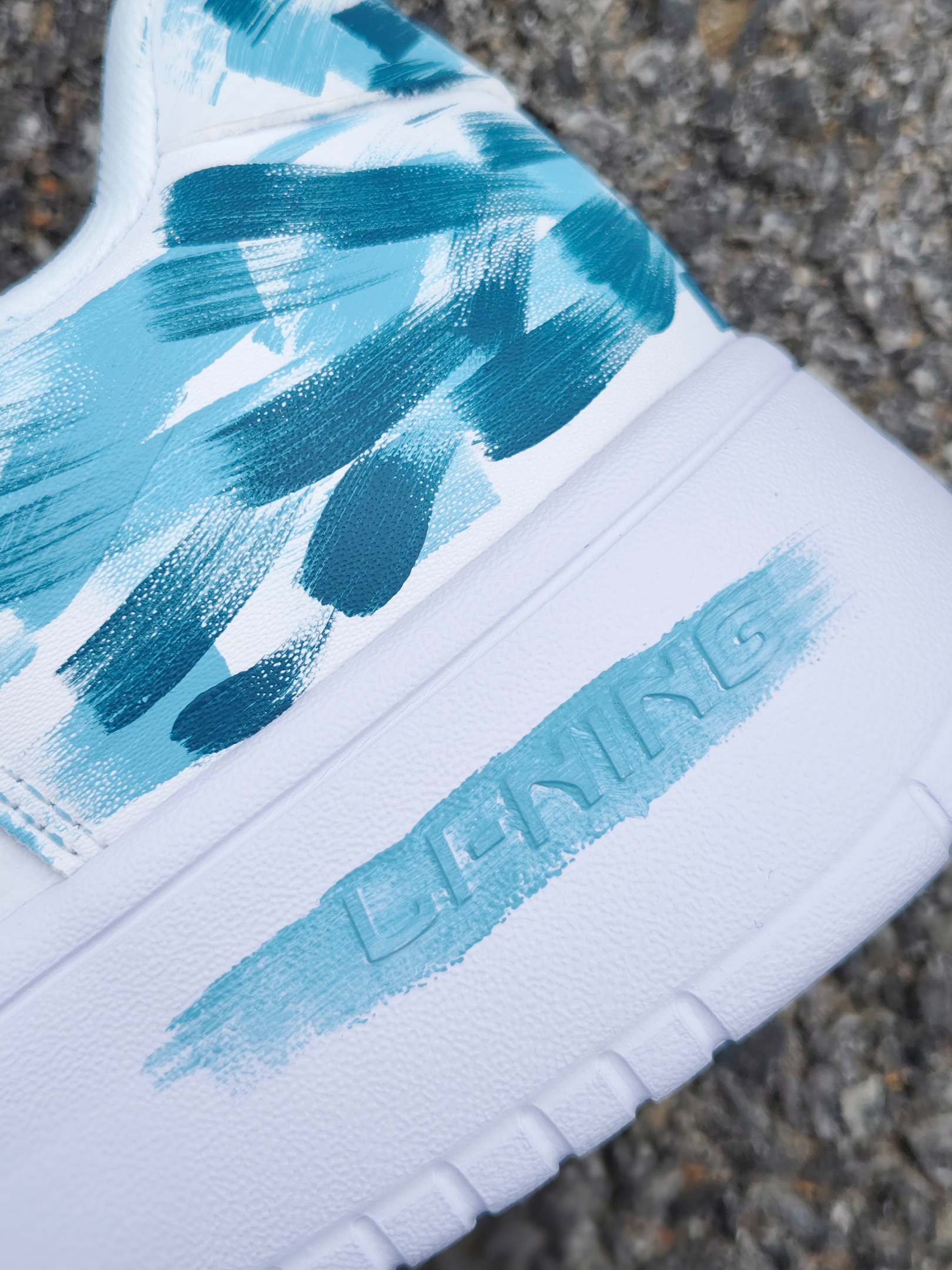 这还是我见过的那双小白鞋吗 蓝绿色的涂鸦,有一种看绿洲的感觉 鞋子侧面的logo也做了同样颜色的点缀,还挺有细节的~ 上脚脚感真嘟还不错,鞋子比较软弹,比较适合户外远足游玩