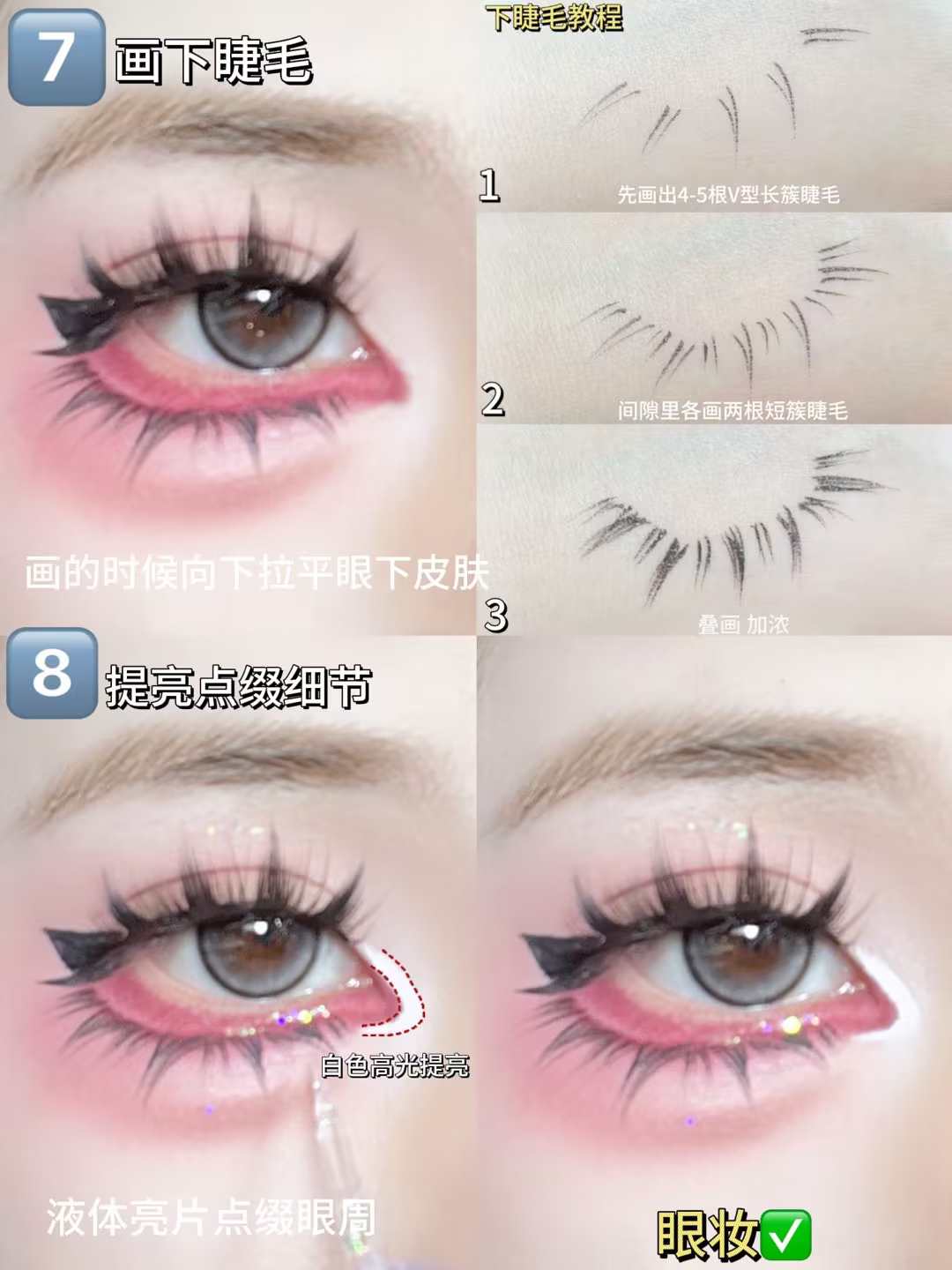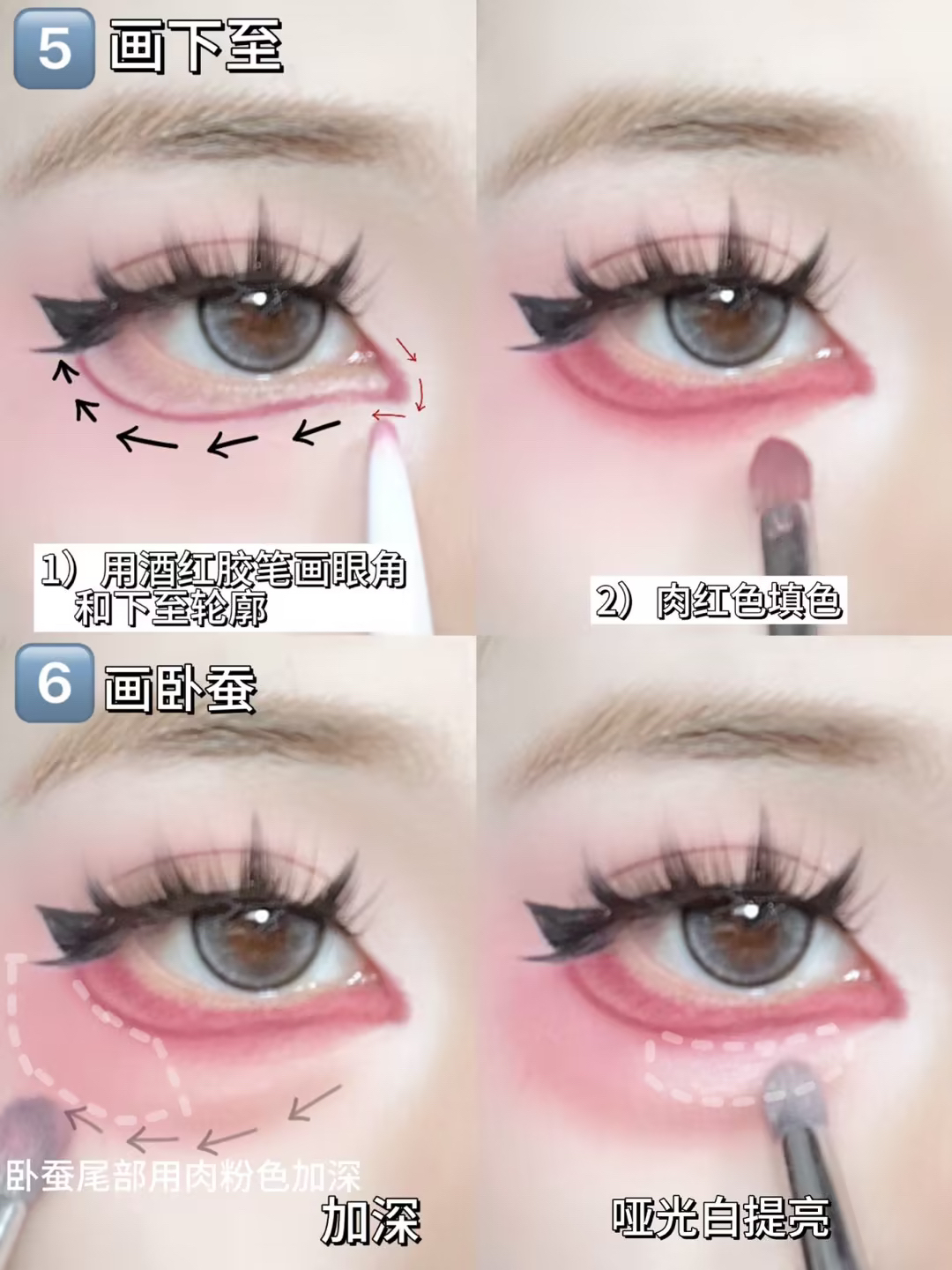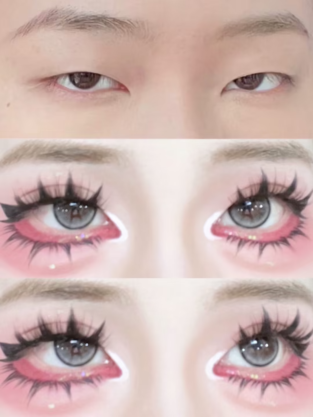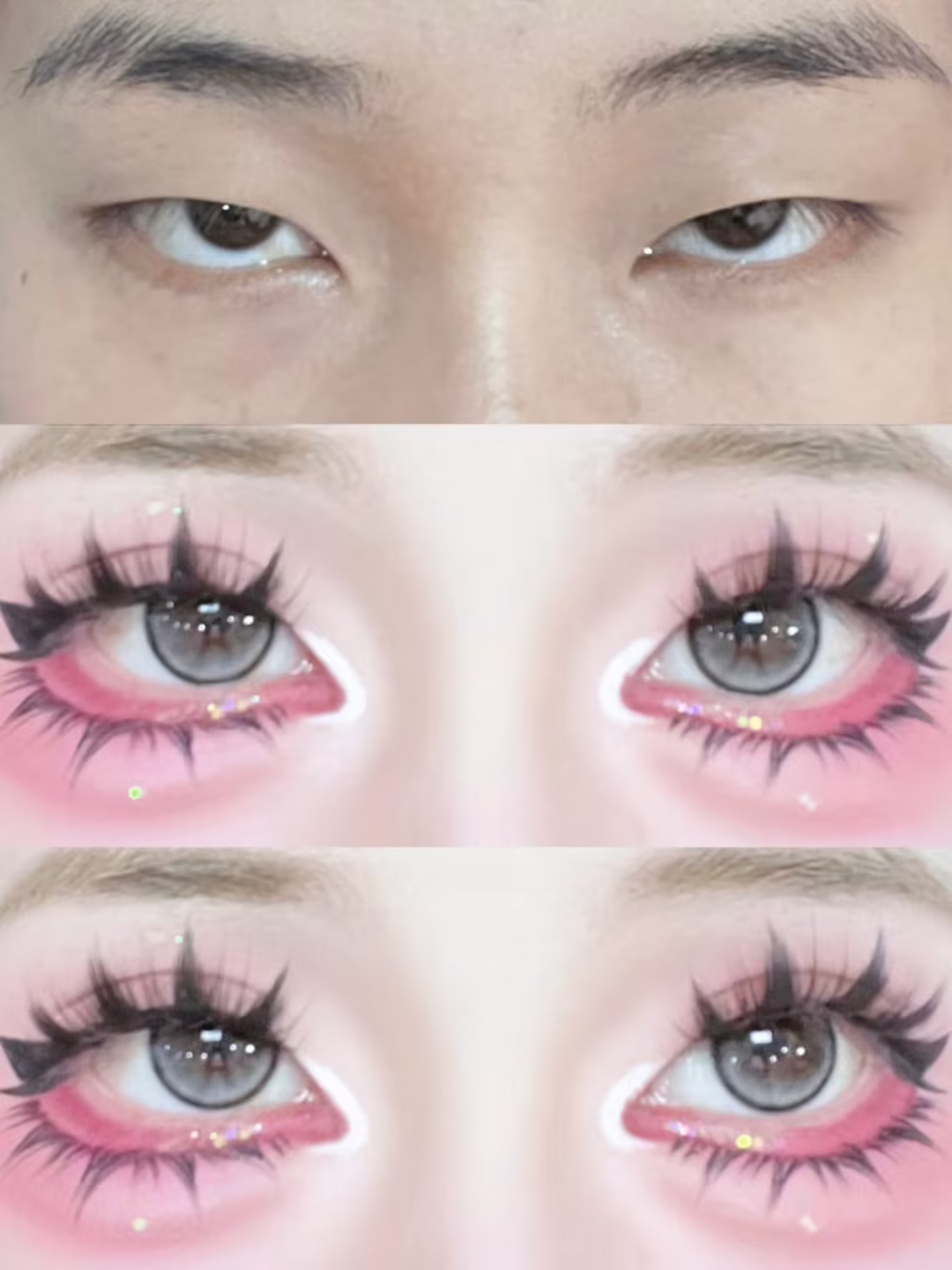 小眼睛爆改芭比大眼眼妆详细教程,有手能学 下三白单眼皮也可以get芭比大眼 藕粉色大面积晕染上下眼皮 然后贴两层双眼皮贴 贴大恶魔款式的假睫毛 画出下至和卧蚕后 用液笔画出下睫毛