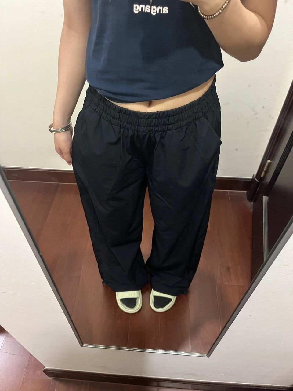 我太会买咯! 又买到了心仪的夏日百搭伞兵裤 宽宽松松 很酥服 后面还有臀线曲线设计 超显瘦