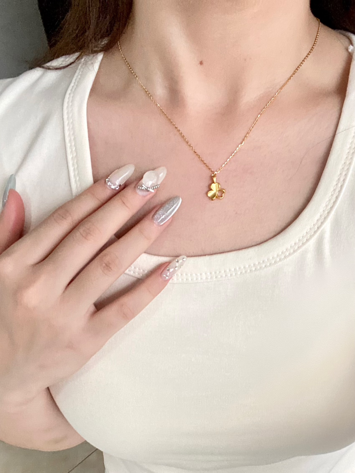 看到金子真的拒绝不了🖐️ 300+能拿下老凤祥我是真没想到 花小钱买大牌太香了~ 而且设计也很有新意 没有土土的感觉 三叶草的一片叶子做了镂空设计 增添了灵动感很适合小女生!! 这条名字叫心悦三叶草 寓意很好呢~送给女朋友超合适~🐰 足金999的质感很不错👍