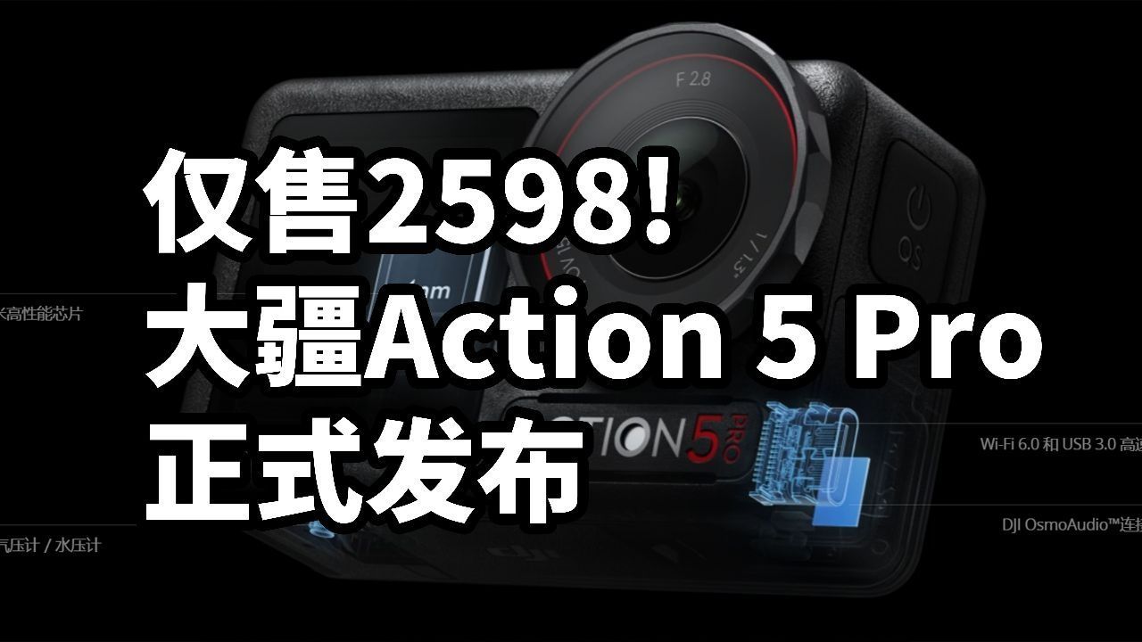 仅售2598! 大疆Action 5 Pro 正式发布 9月19日 大疆正式发布 Action 5 Pro运动相机 性能将大大提升 外形和Action4差不多 一样的前后屏幕 搭载新一代高动态范围 1/1.3英寸传感器 动态范围高达13.5档 带有色温传感器 双OLED高亮屏幕 和内置47G存储空间 采用4纳米芯片 带有水压计 支持人物居中和跟随 可连接DJI麦克风 拍1080P时 续航可达4小时...