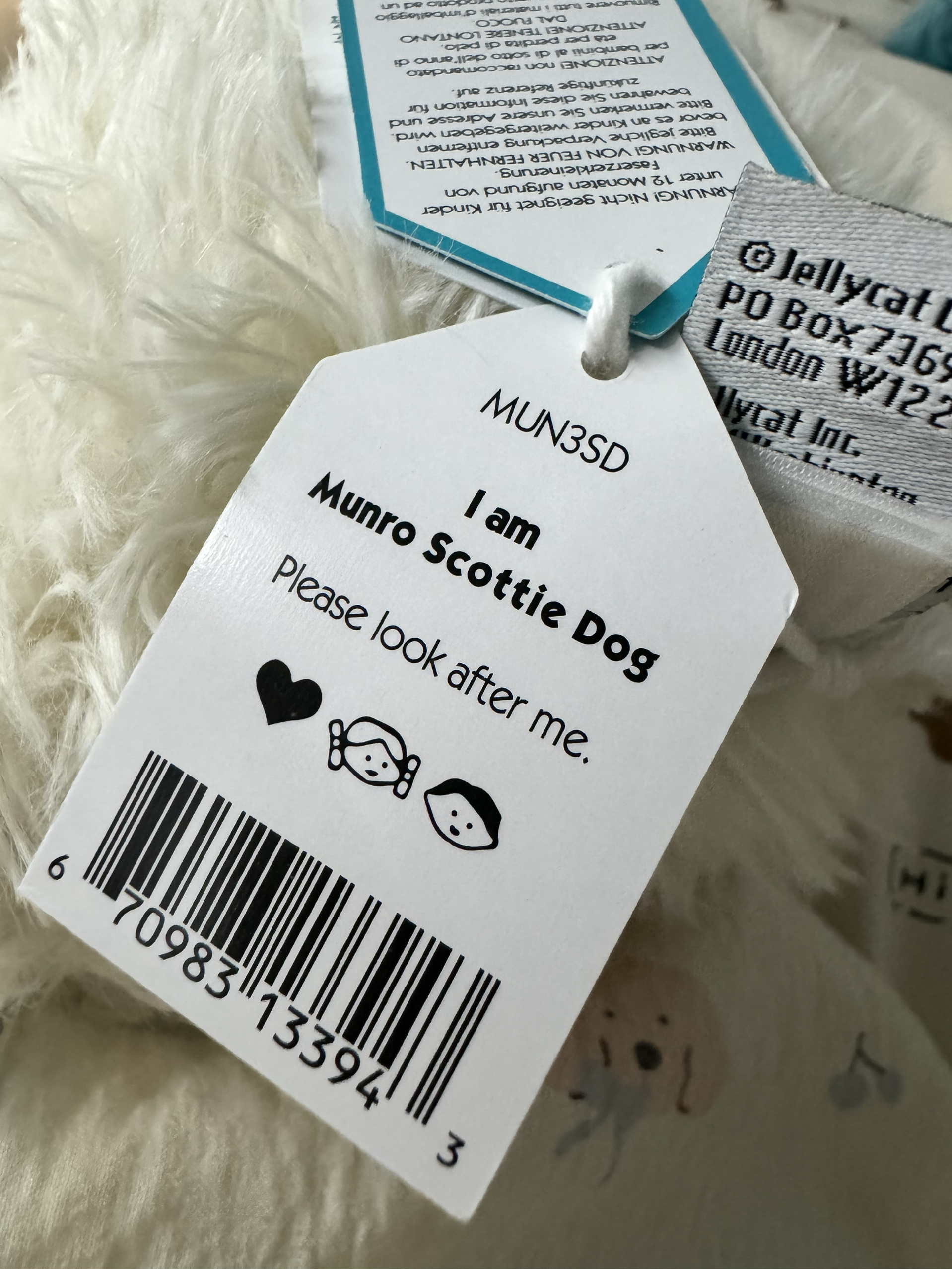 我真的好喜欢这只西高地小狗啊啊啊啊啊! 手感毛茸茸的软软的 质感特别好!! 第一只jellycat一定是坠重要的人送的 标签上写着 Please look after me 意思是请照顾我 呜呜呜呜 真的非常喜欢!!