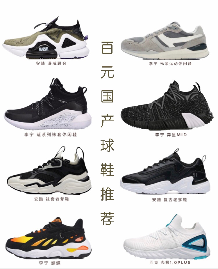 超级划算的球鞋来袭!国产球鞋的良心推荐!看看这篇推荐有没有你喜欢的吧! 1️⃣李宁 弈星mid 💰识货价格:168(42码) 其中底的设计灵感源自太空舱结构,搭配特殊的光泽感装饰,让中底在视觉上呈现出极为前卫的观感,外观简约而百搭,将运动时尚型格发挥到极致。👌 2️⃣李宁 适系列袜套休闲鞋 💰识货价格:184(42码) 其采用了弹性混纱一体织鞋面,用高帮袜套的设计结合弹力鞋口,轻柔的包裹脚踝,...