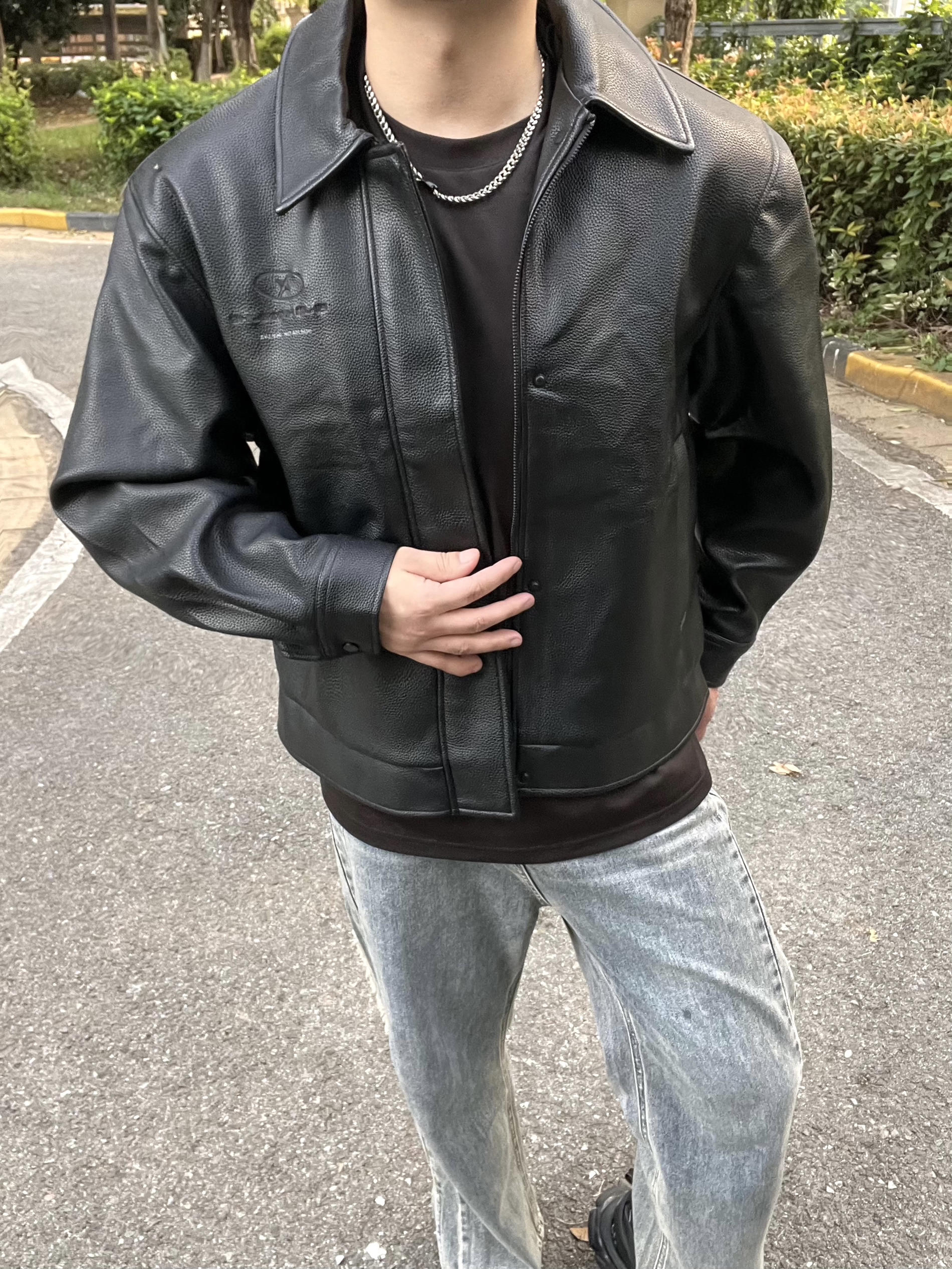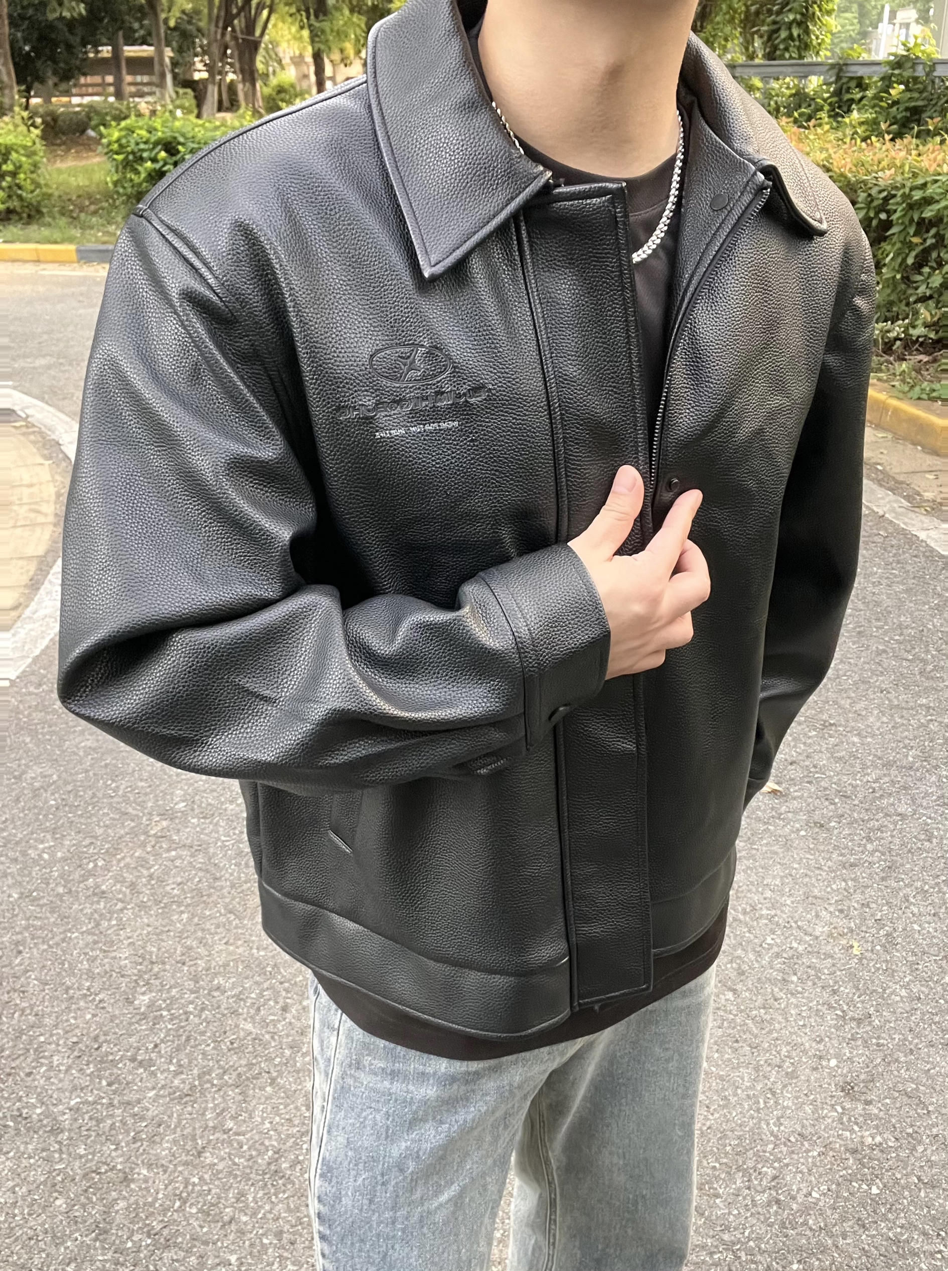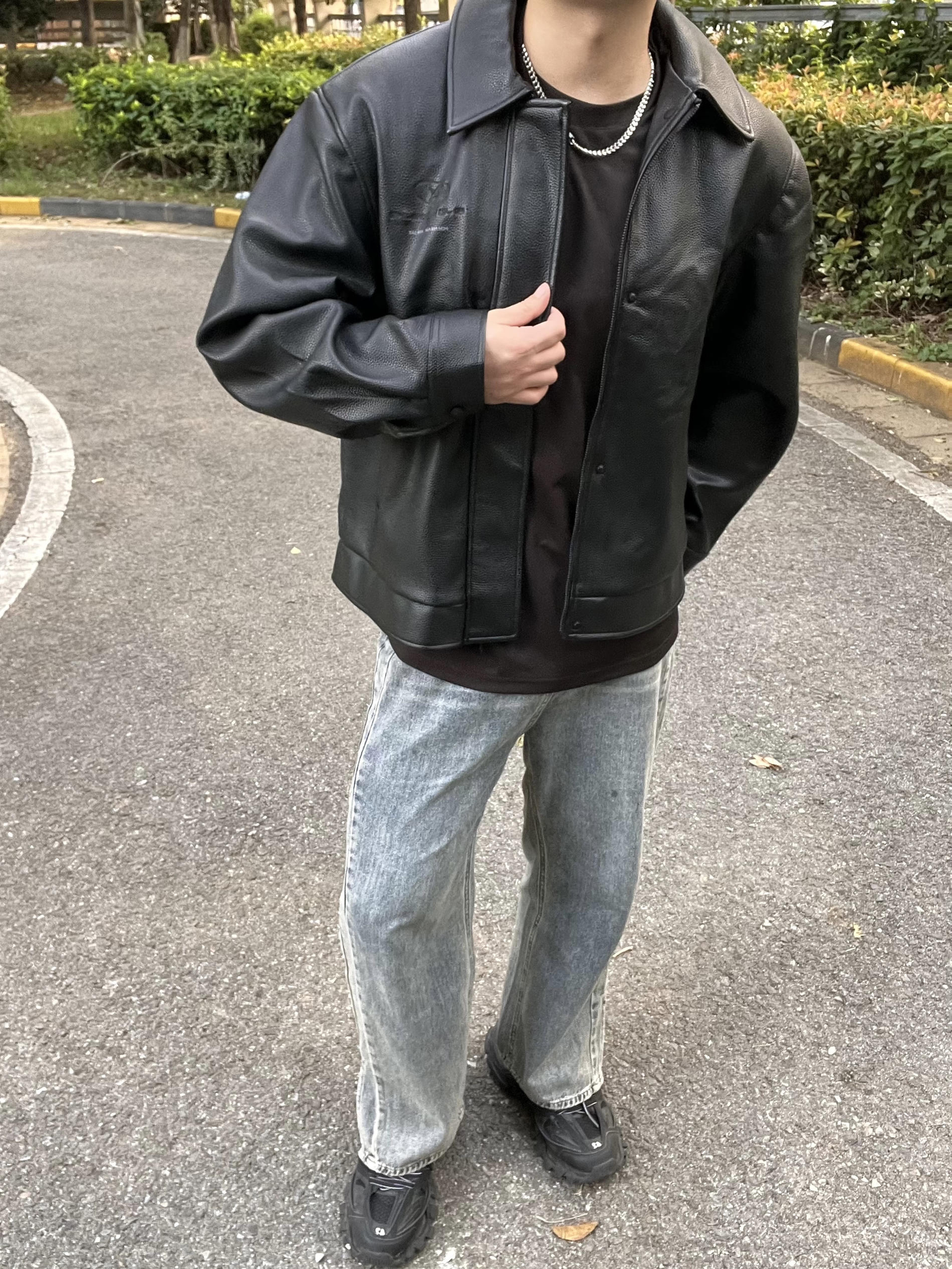 哈哈一件找了很久的皮夹克,是BJHG家的 南京的秋天很短暂,一下就进入速冻模式 这件PU皮夹克,穿起来人很立挺,版型太正了 秋冬天还能抗风 皮面的颗粒感就感觉很高级 拿手里就知道就很软的皮料 美式宽松风格配上小阔腿裤和老爹鞋 好看!