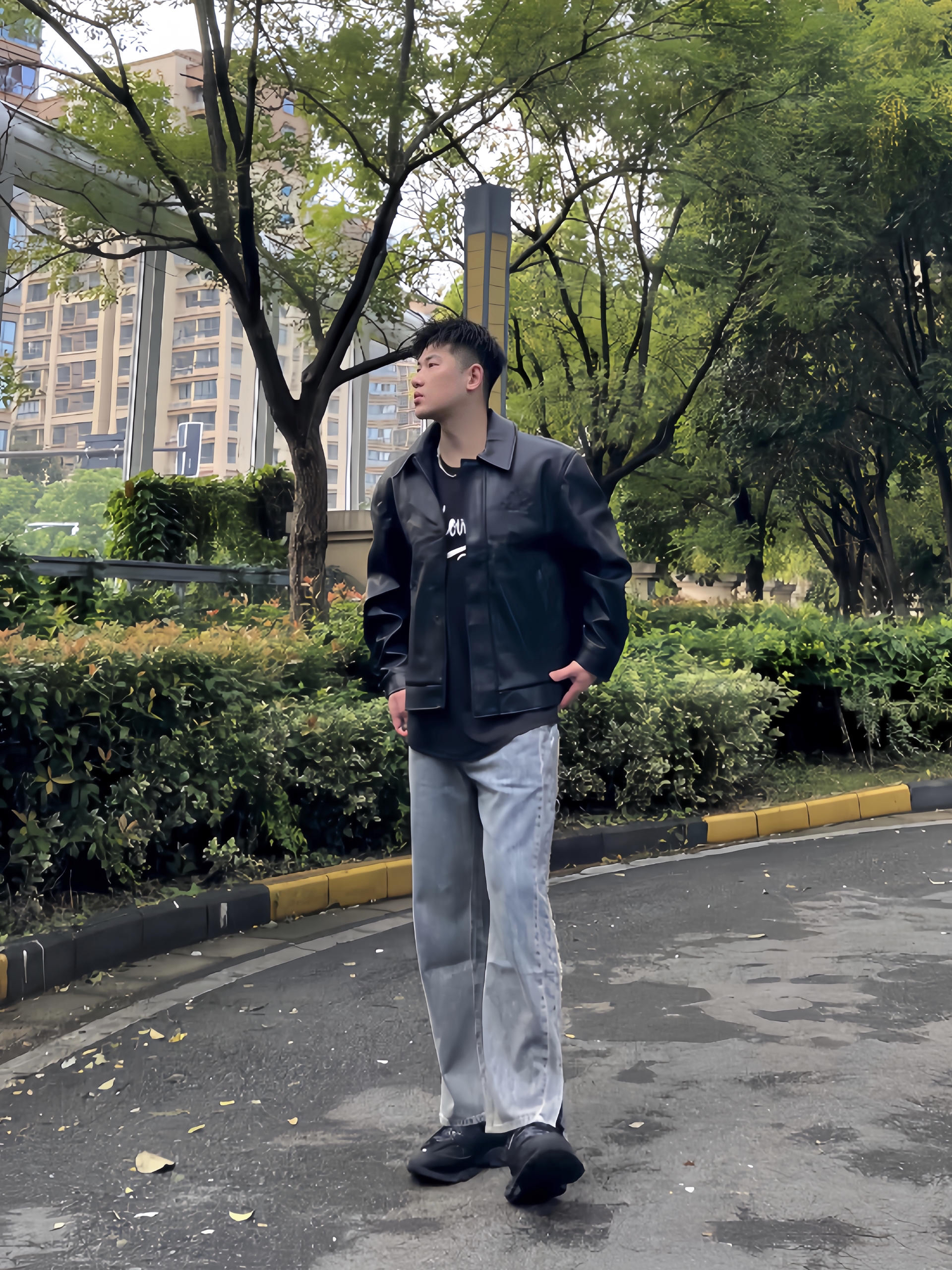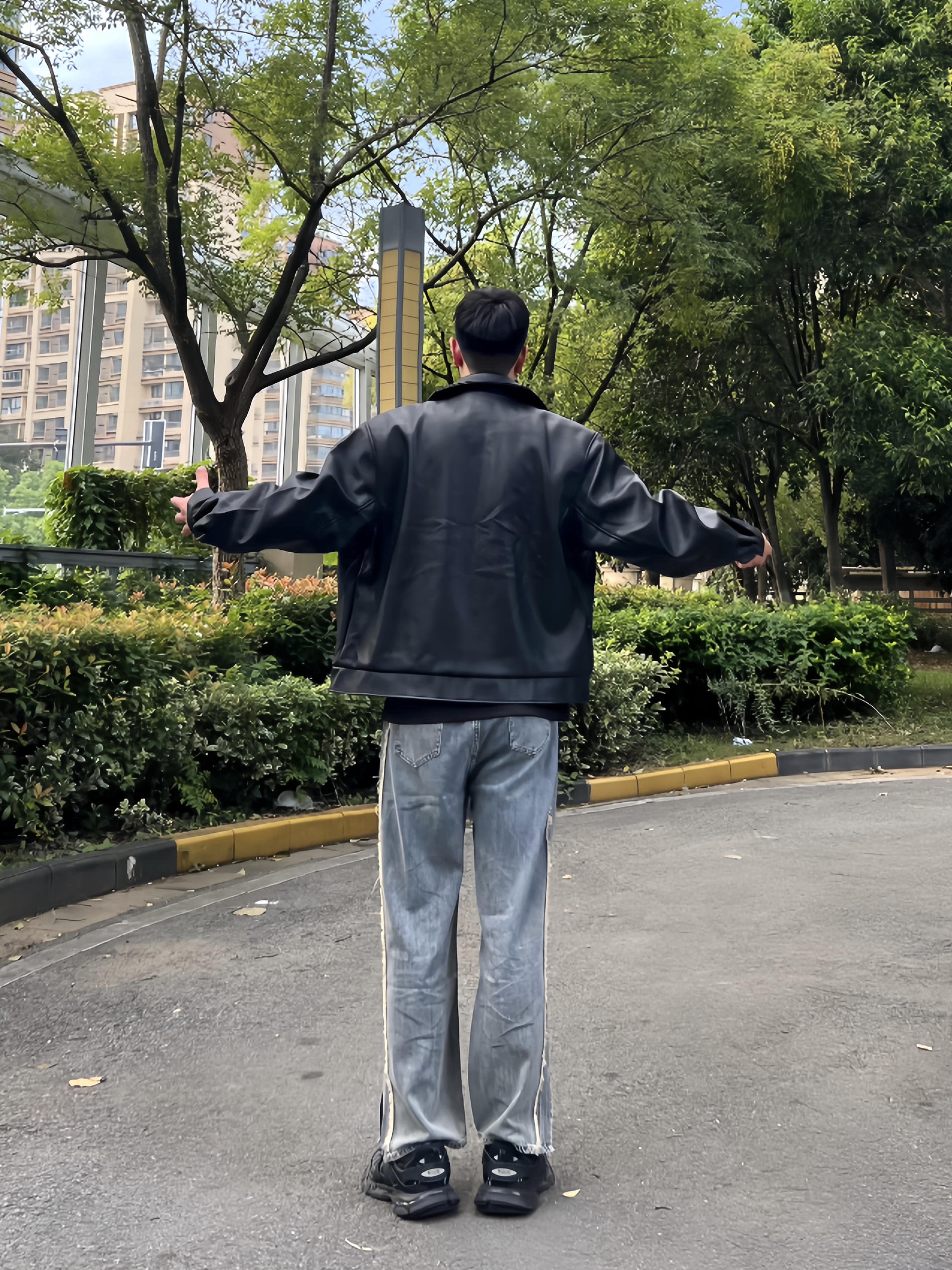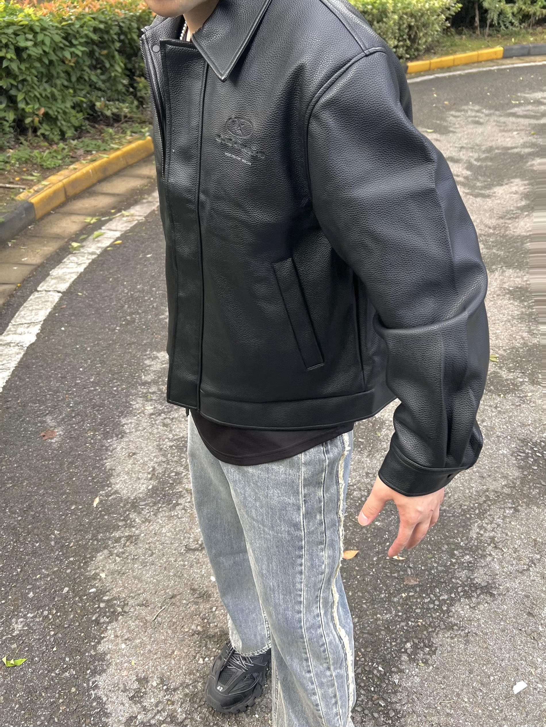 哈哈一件找了很久的皮夹克,是BJHG家的 南京的秋天很短暂,一下就进入速冻模式 这件PU皮夹克,穿起来人很立挺,版型太正了 秋冬天还能抗风 皮面的颗粒感就感觉很高级 拿手里就知道就很软的皮料 美式宽松风格配上小阔腿裤和老爹鞋 好看!
