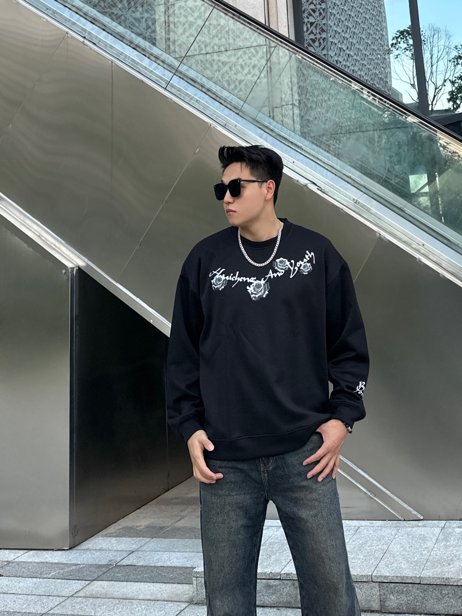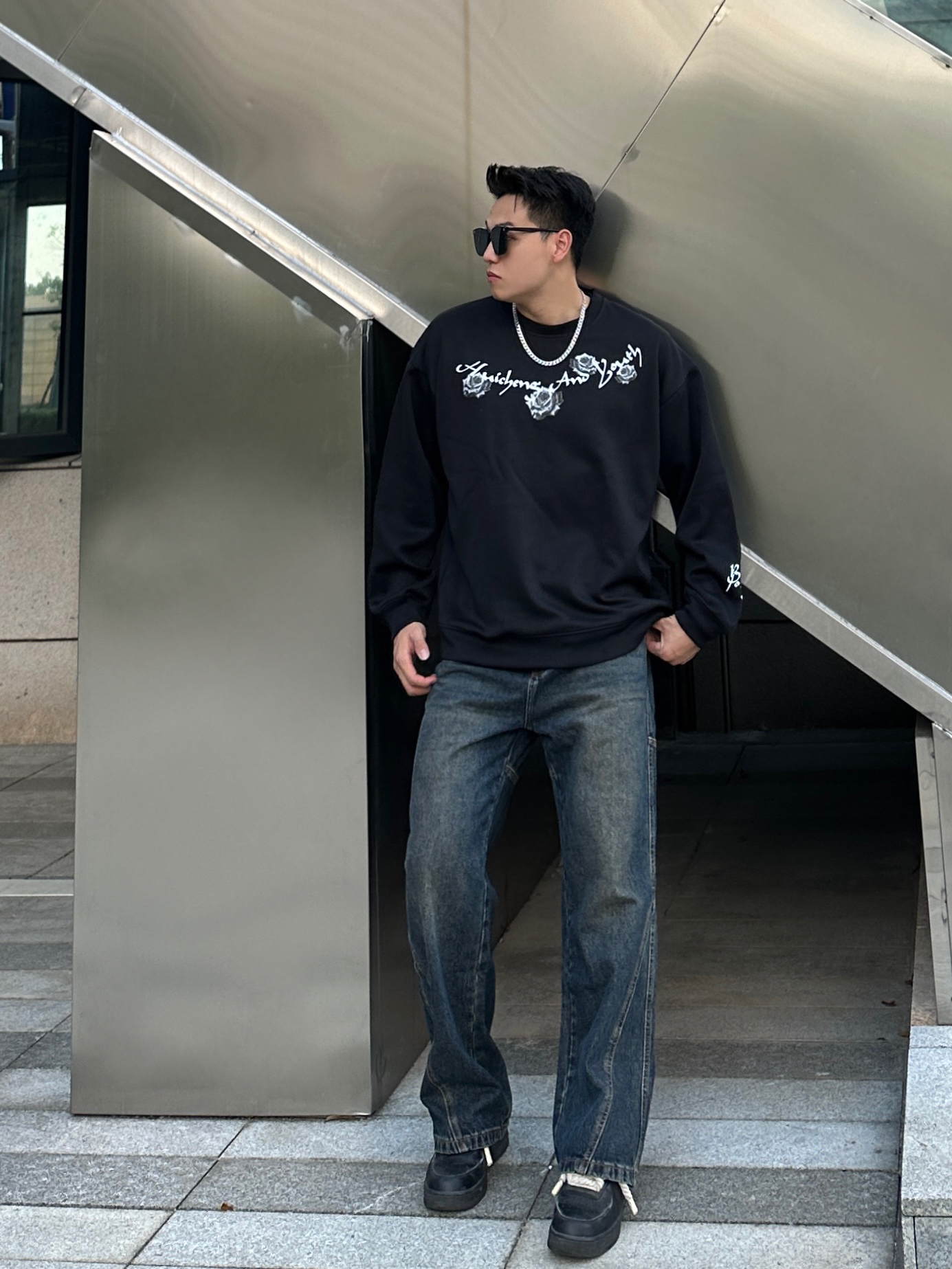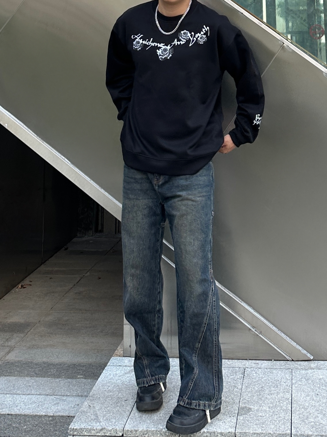 今日份穿搭分享☑️ 用心搭配🙋🏻♂️ - 👔:🔗绘承圆领卫衣(2XL码) 是一款美式复古的圆领卫衣,衣身字母玫瑰🥀图案高级感十足,特别喜欢衣服的版型🤩,挺阔的版型上身效果非常板正,面料克重适中透气性较好,日常搭配十分帅气😎 - 👖:🔗UKTK做旧牛仔裤(2XL码) 水洗做旧效果特别明显,复古感很棒🥰,直筒版型上身视觉上更显腿长🦵,面料质感很不错,日常搭配起来非常nice👍 - 🚶🏻小聂身高|体重...