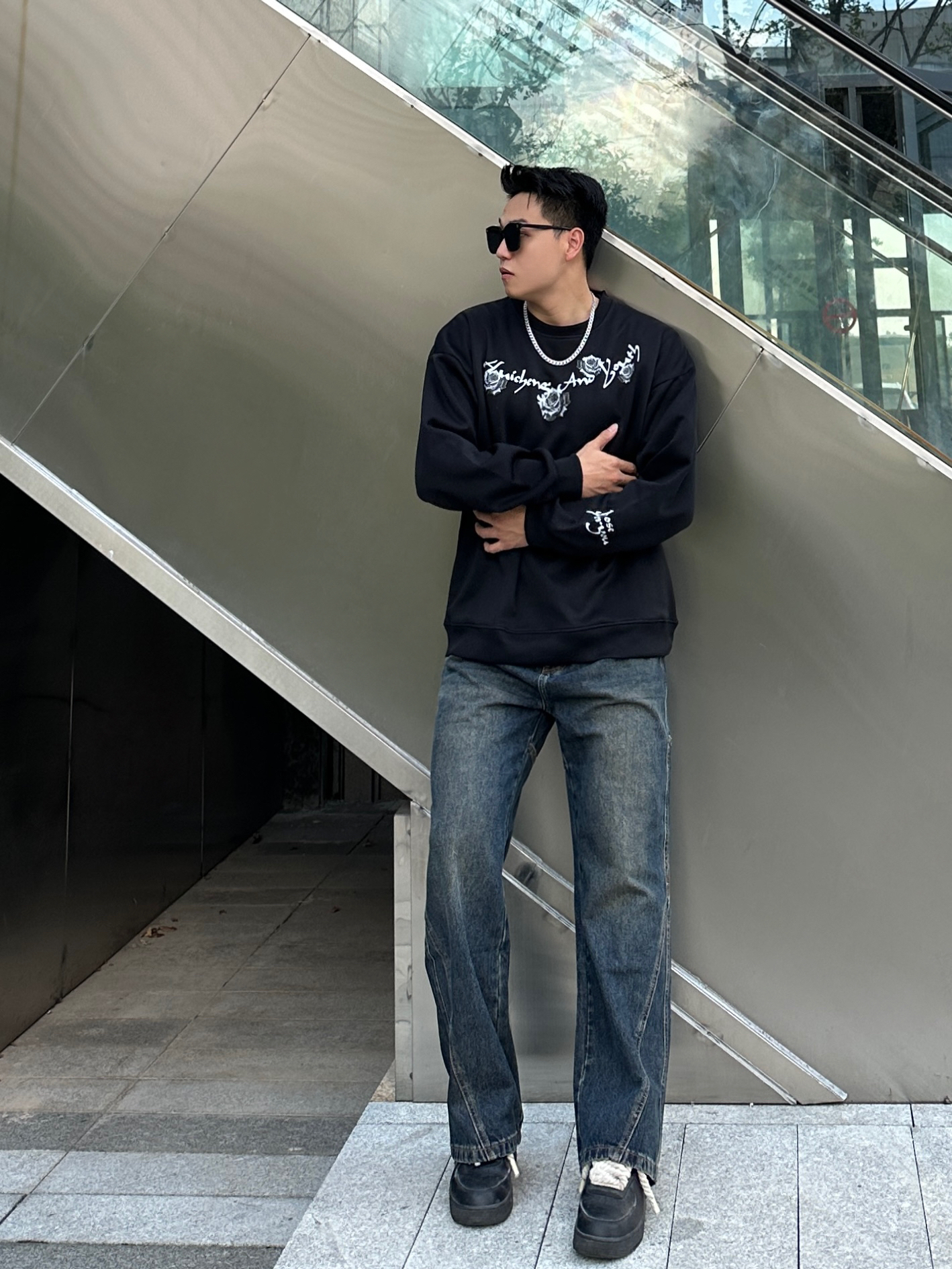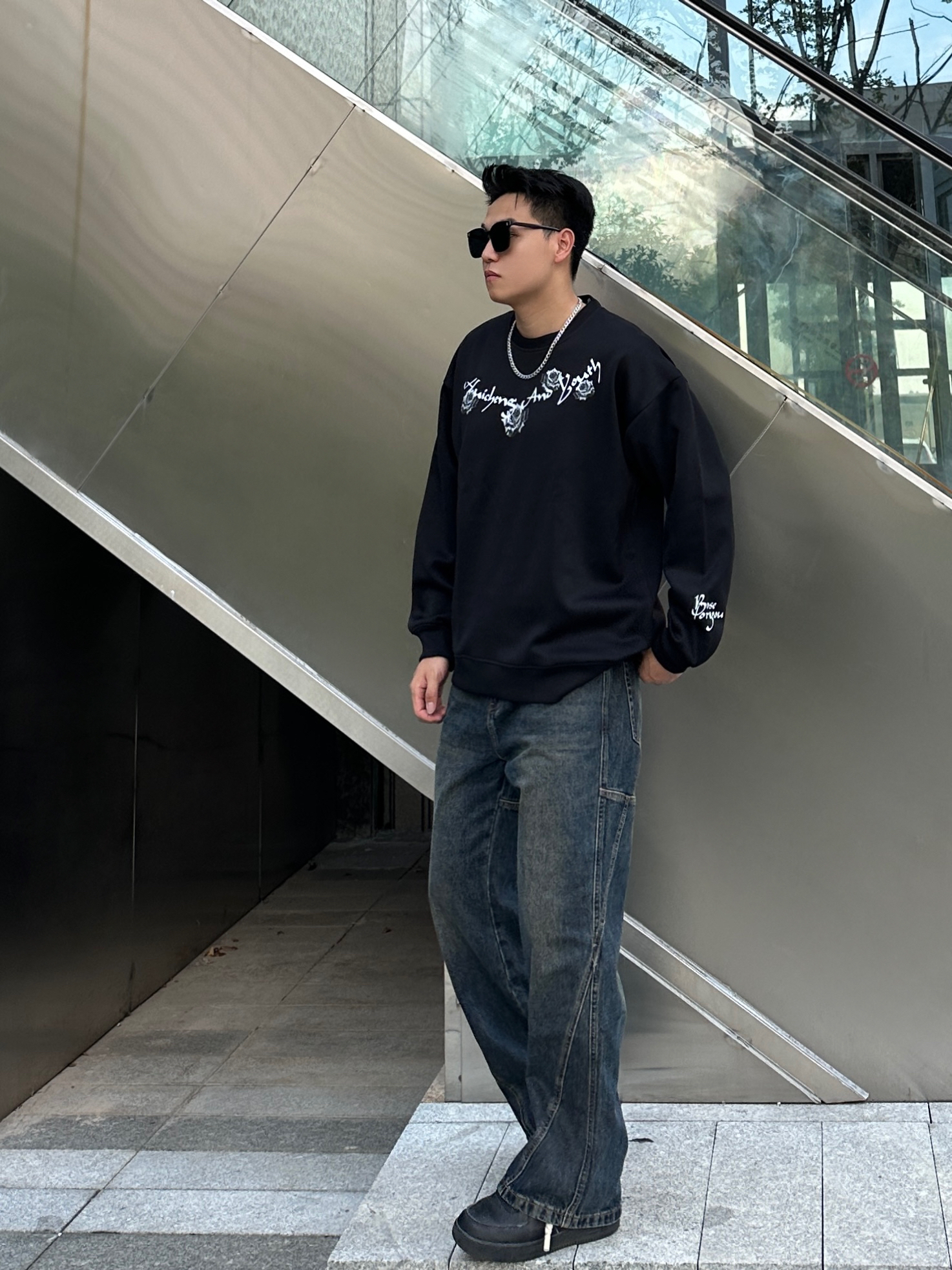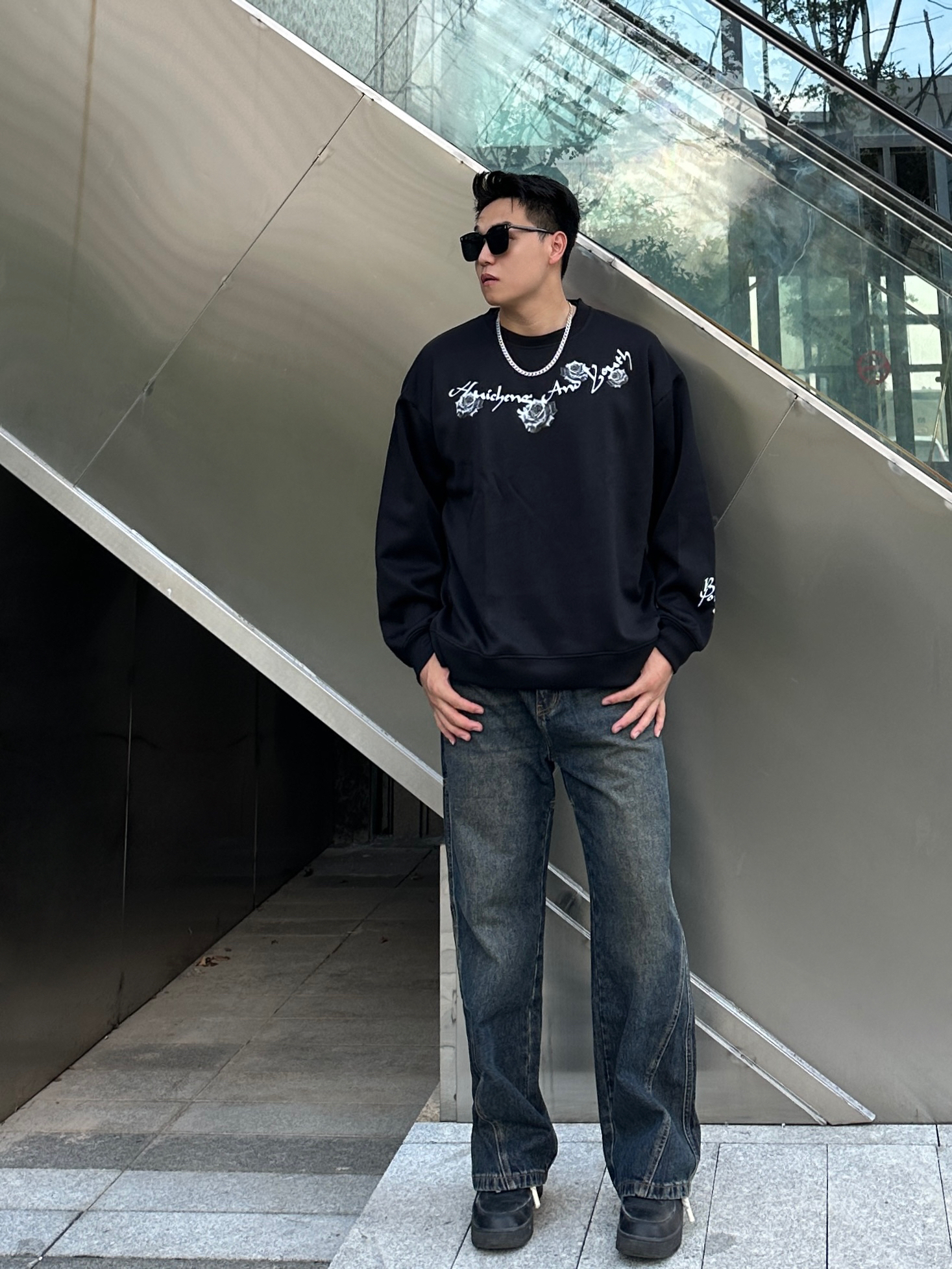今日份穿搭分享☑️ 用心搭配🙋🏻♂️ - 👔:🔗绘承圆领卫衣(2XL码) 是一款美式复古的圆领卫衣,衣身字母玫瑰🥀图案高级感十足,特别喜欢衣服的版型🤩,挺阔的版型上身效果非常板正,面料克重适中透气性较好,日常搭配十分帅气😎 - 👖:🔗UKTK做旧牛仔裤(2XL码) 水洗做旧效果特别明显,复古感很棒🥰,直筒版型上身视觉上更显腿长🦵,面料质感很不错,日常搭配起来非常nice👍 - 🚶🏻小聂身高|体重...