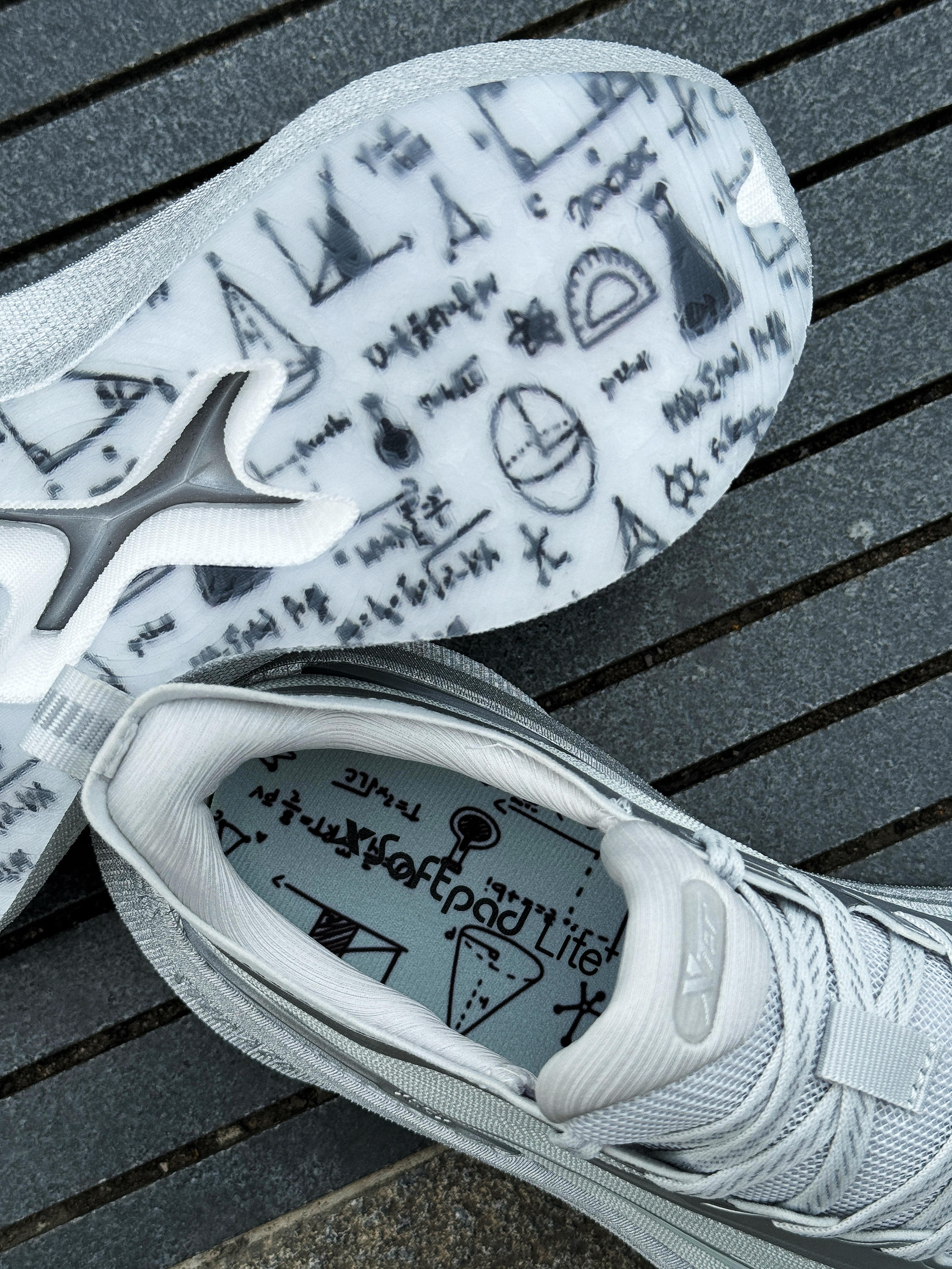 特步两千公里2代入过很多配色了 对它性能也很熟悉 很适合慢跑通勤!正值开学季 今天再开箱这双学霸配色! 整体银色装扮 高级简约 非常好搭配!细节上鞋垫和鞋底都印有几何公式的图案 辨识度蛮高的!绞综鞋面透气轻质 搭配的XTEP ACE中底 上脚脚感舒适回弹 缓震效果很明显! 总体来说 作为一双多场景的入门级跑鞋 学生党也可以轻松驾驭!微宽鞋楦适用性广泛 日常通勤也可以穿着 需要注意的是尺码偏大!