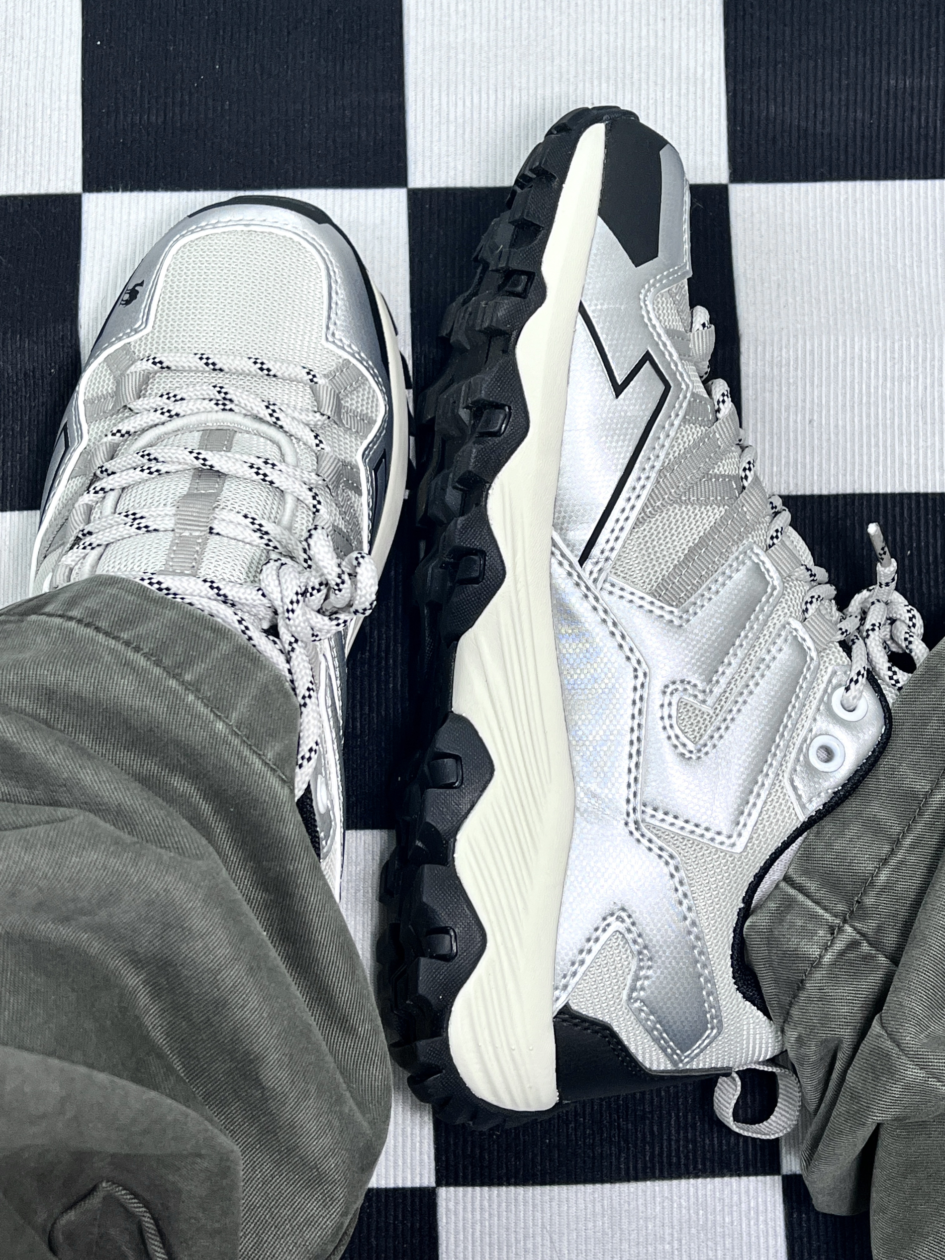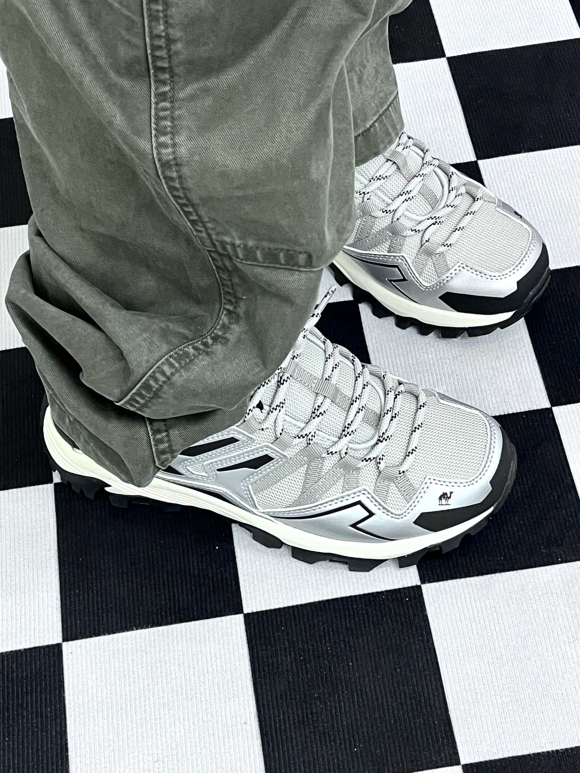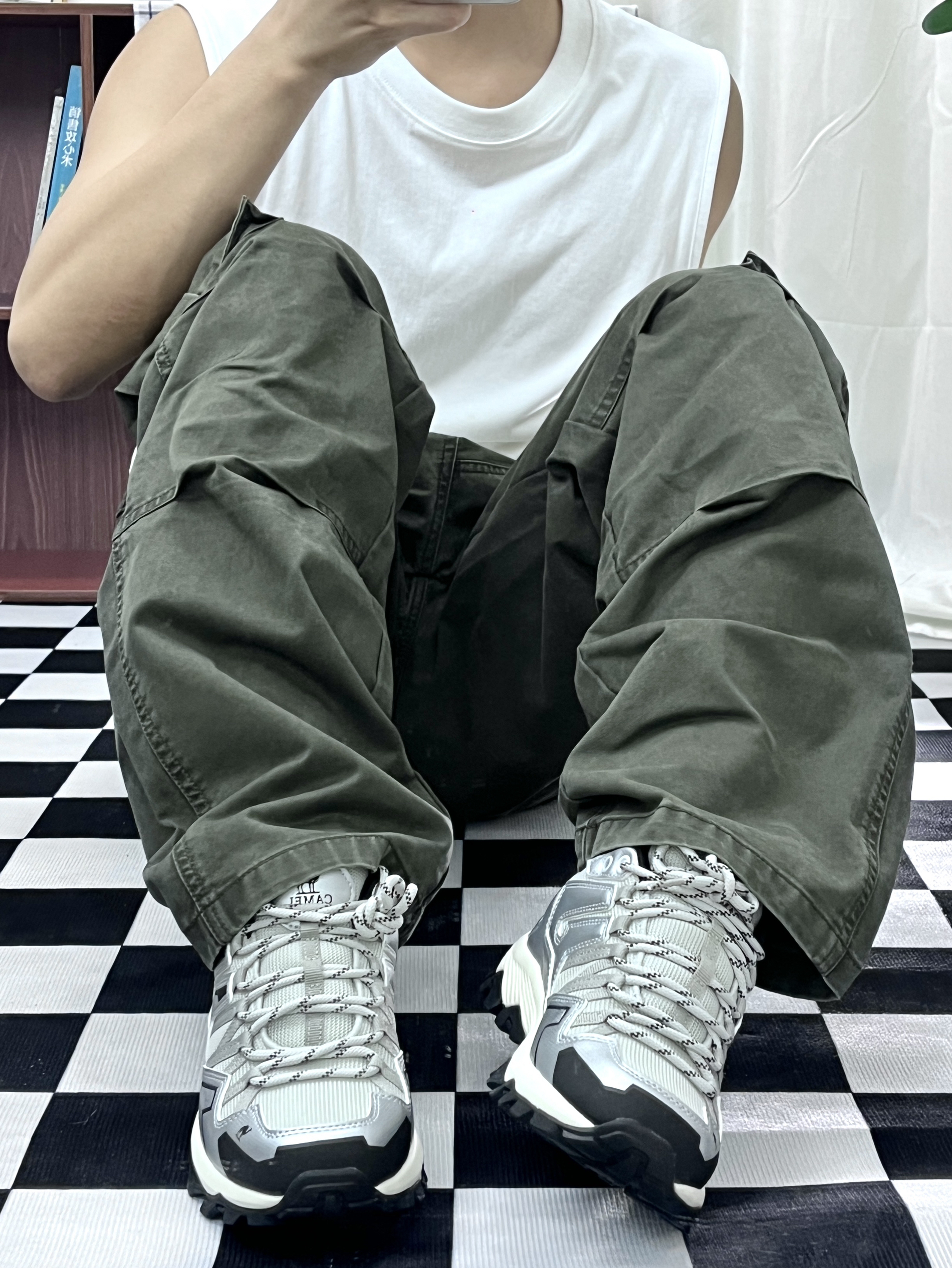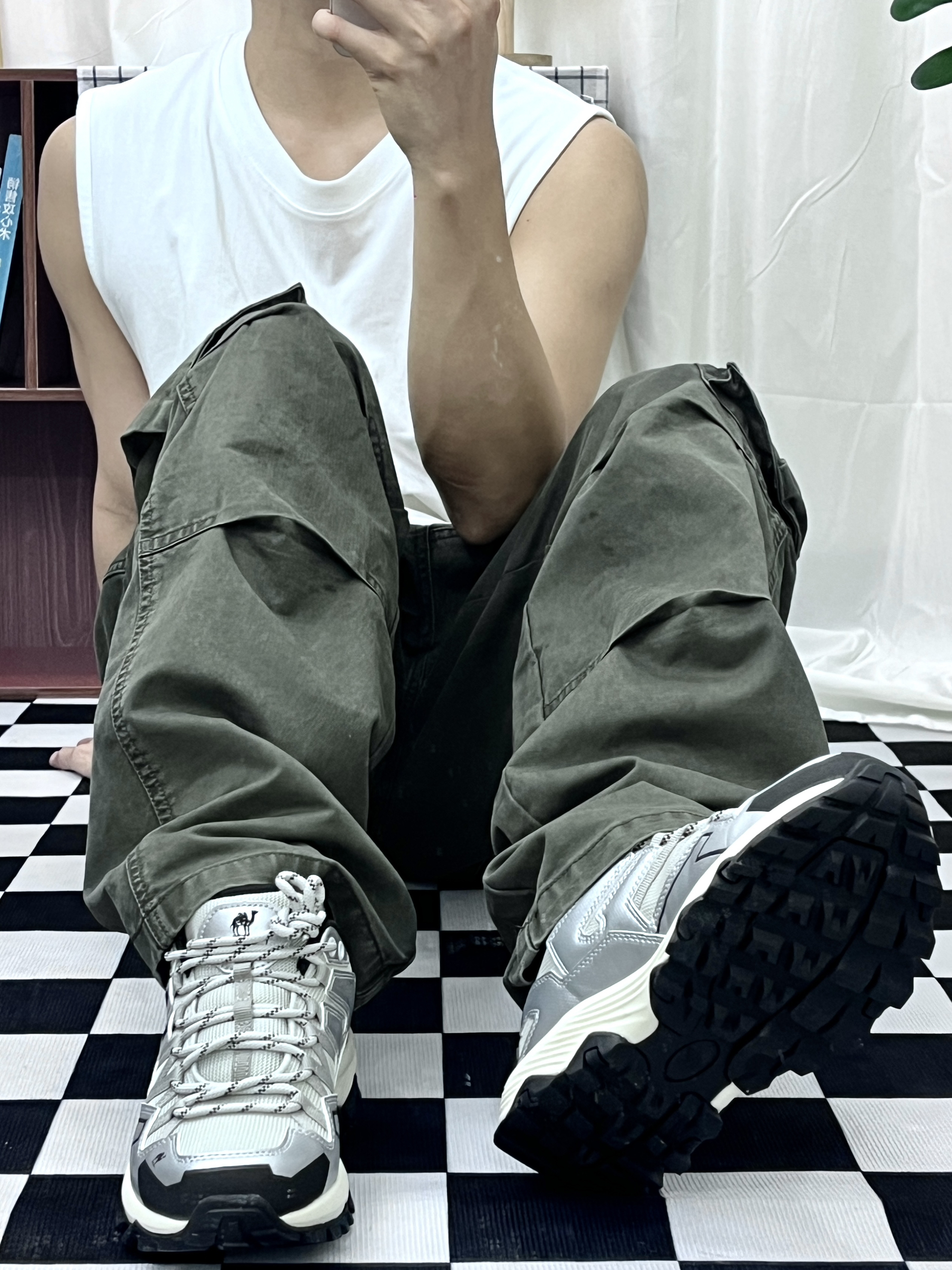 品牌:骆驼昆仑老爷鞋 色系:银灰色 上身白色背心 下身绿色工装裤 真的很舒适也很好看 骆驼这款鞋可以用来户外登山🧗 平常休闲运动也可以穿 鞋面有网孔可以排汗 价格方便也很划算 节假日购买优惠力度更大