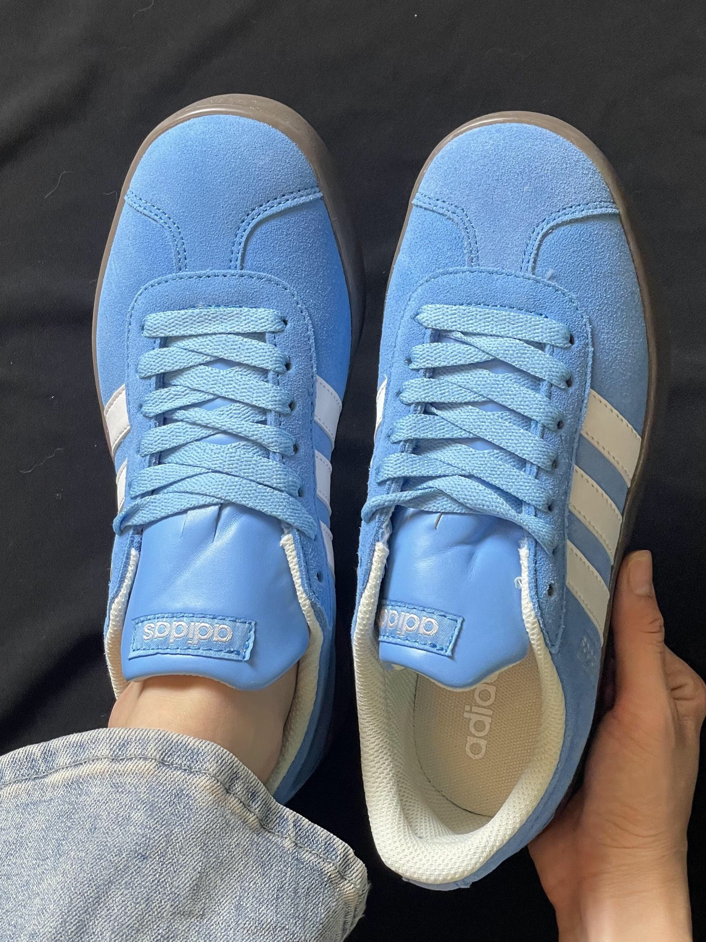 Adidas Neo VL Court 2.0 绒面麂皮防滑耐磨轻便低帮板鞋, 整双鞋以传统的低帮呈现的清新造型 ,包裹感优秀。 图片源自得物博主@爱买鞋的小兜兜,侵删