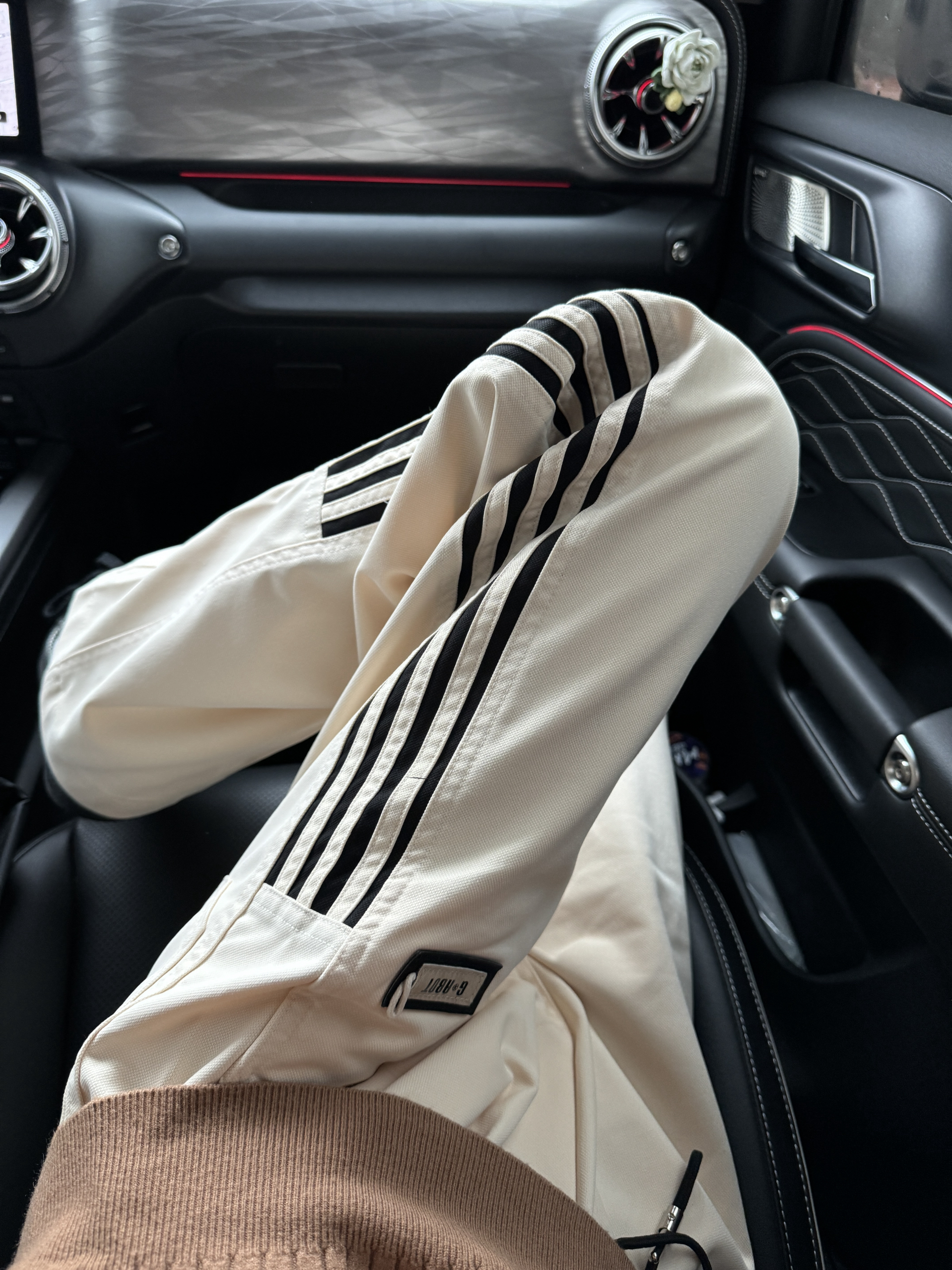 挖到一条秋冬也能穿的条纹裤,这款的面料很好,穿起来很舒服。灰黑三条杠的配色很经典百搭,裤子垂感也很好,休闲感拉满!
