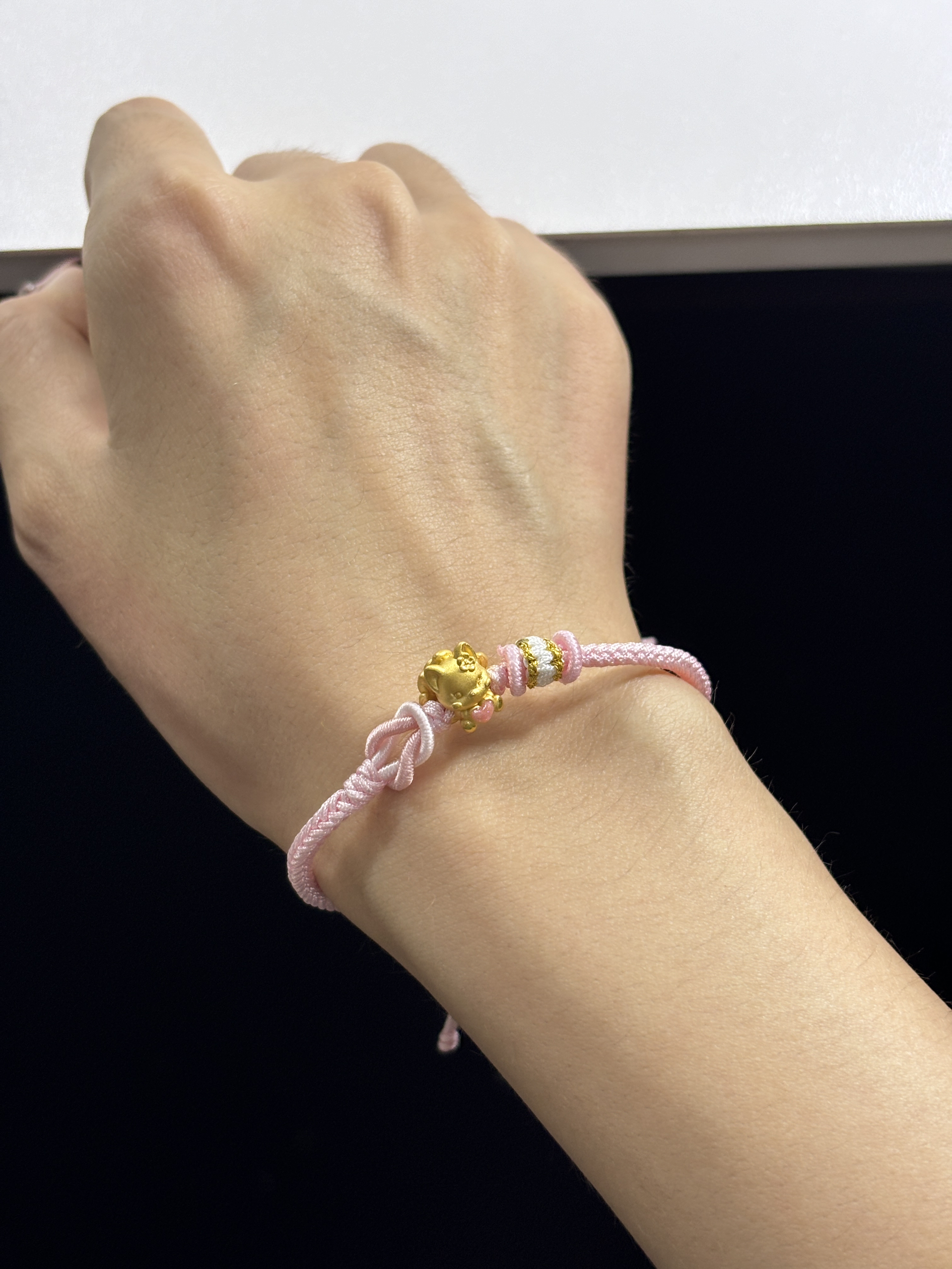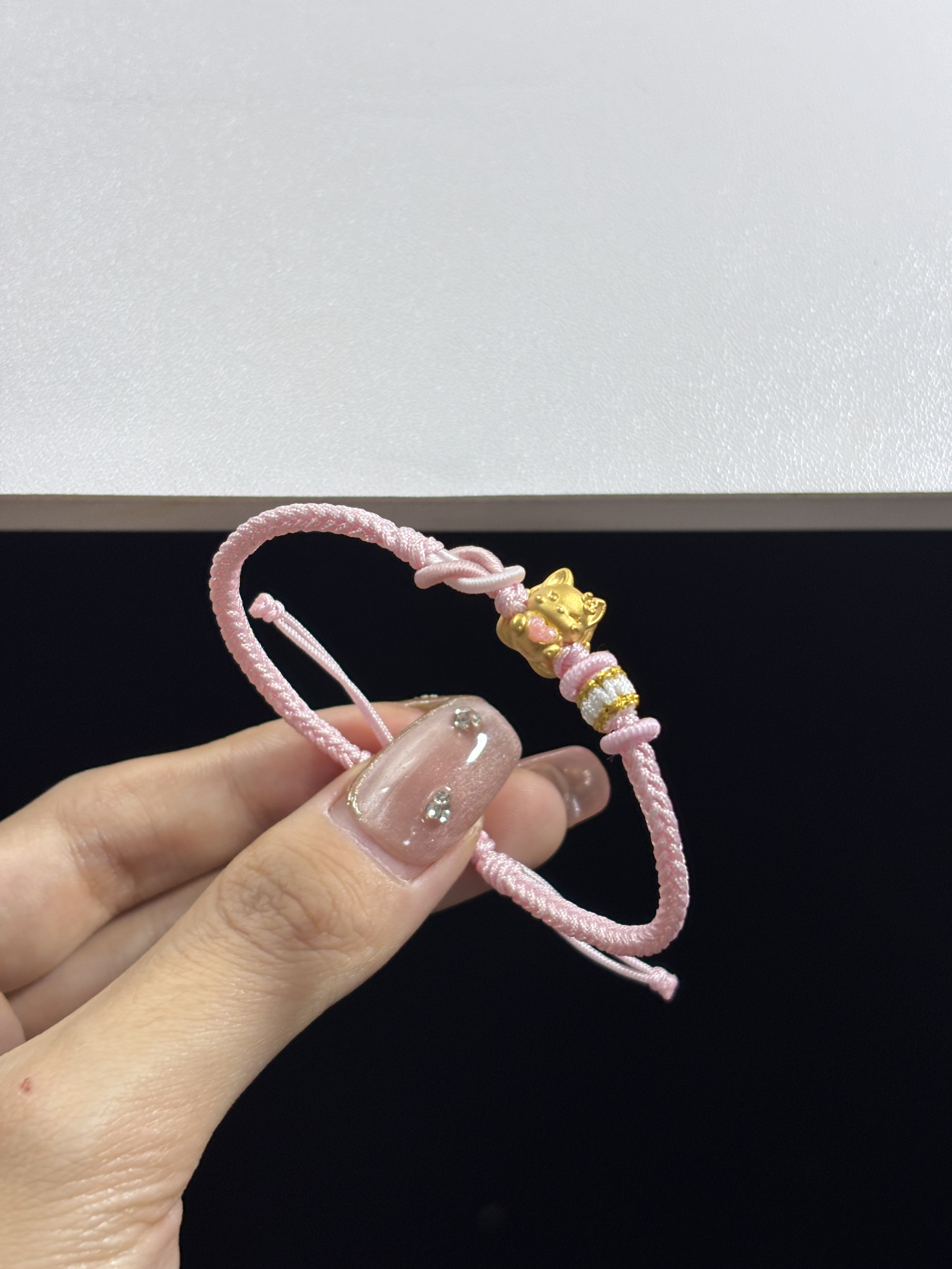 5D硬金手绳,编织绳质感满满 粉嫩的手绳搭配黄金意外的好看 小狐狸真的太可爱太治愈了 佩戴起来也是超级舒适自然呢 真是将温柔时尚体现的淋漓尽致