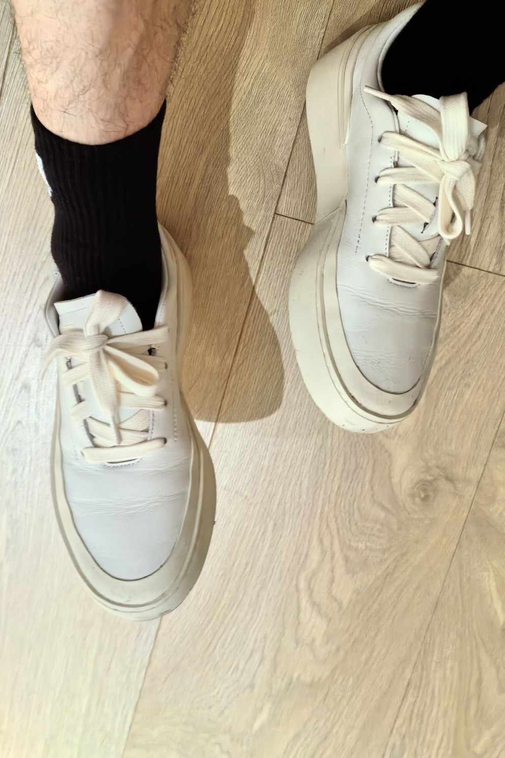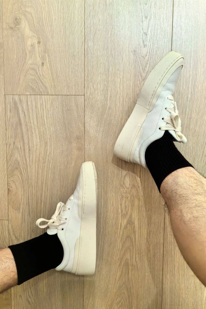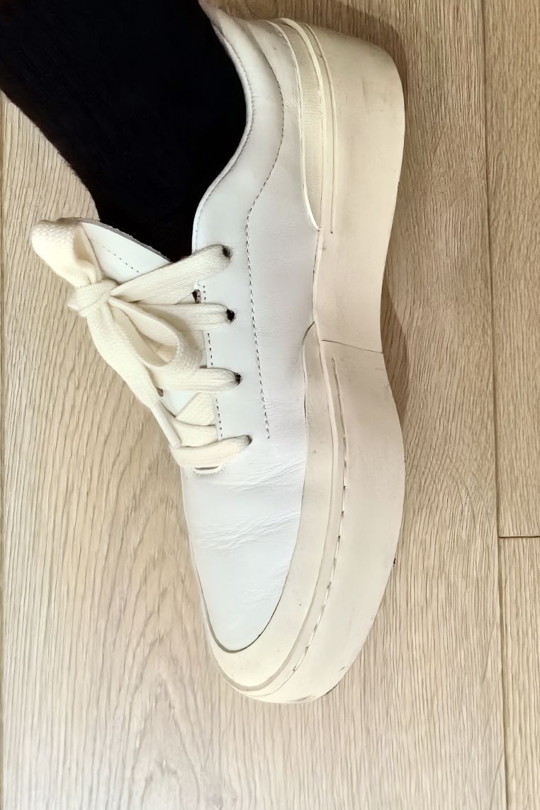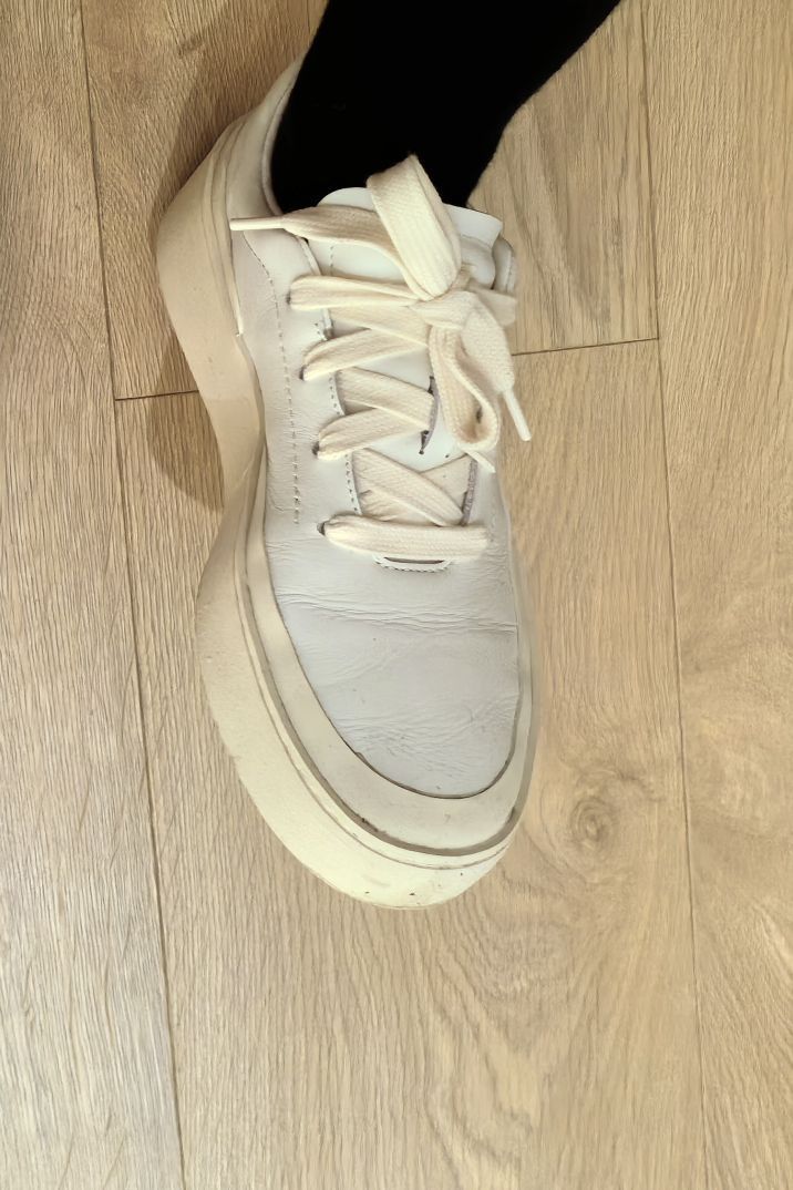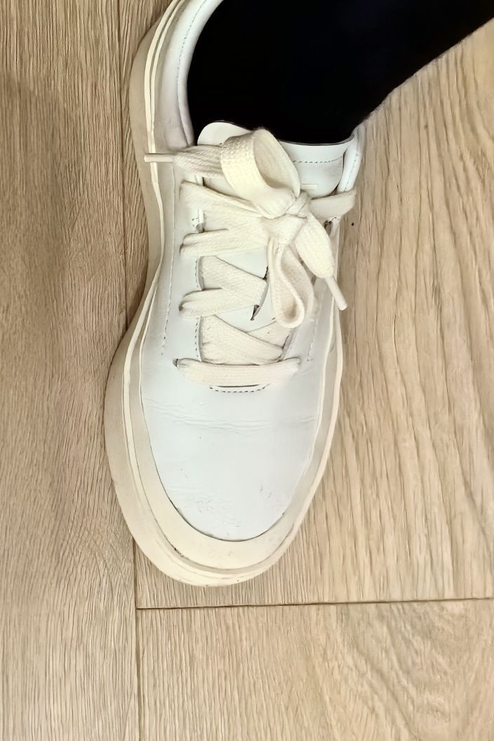 本白的鞋身+米白的包边与外底, 干净的配色,颜色统一,实在高级☝🏻 板鞋的造型,男大穿了神气,男大以上穿了减龄。 鞋面为皮革材质,湿纸巾一擦就干净,好打理。 皮革的褶皱,有质感;即使穿旧了,也不减分。 楦型对于宽脚友好,不压不挤。 软皮革的后跟,不磨脚跟。 喂❗️5~6张而已,不必犹豫📌