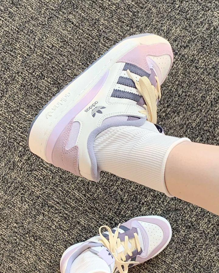 这是一款非常经典的板鞋,adidas 原创的论坛低帮减震耐磨的复古篮球鞋。鞋面采用的是翻毛皮材质,触感细腻,有质感。鞋底是橡胶大底,耐磨耐穿。鞋垫是软硅胶的,回弹性很好,穿着更舒适。鞋身的颜色搭配是白紫色,非常的亮眼,百搭又时尚。低帮的设计,穿着更轻便,活动更自如。鞋舌和后跟都有一个字母“a”的刺绣 LOGO,彰显了品牌身份,细节满满。 这么好看又舒适的板鞋,真的很难让人不爱。 姐妹们,你...