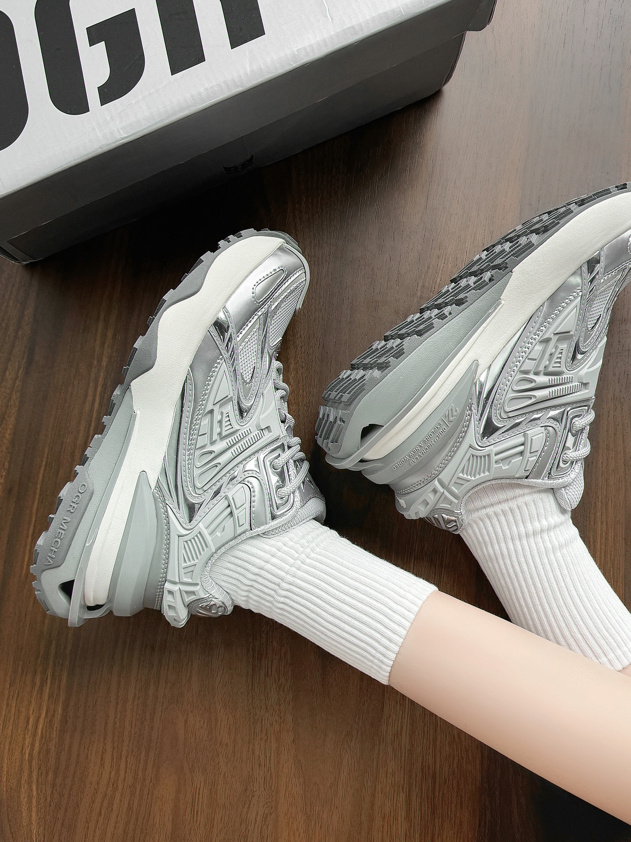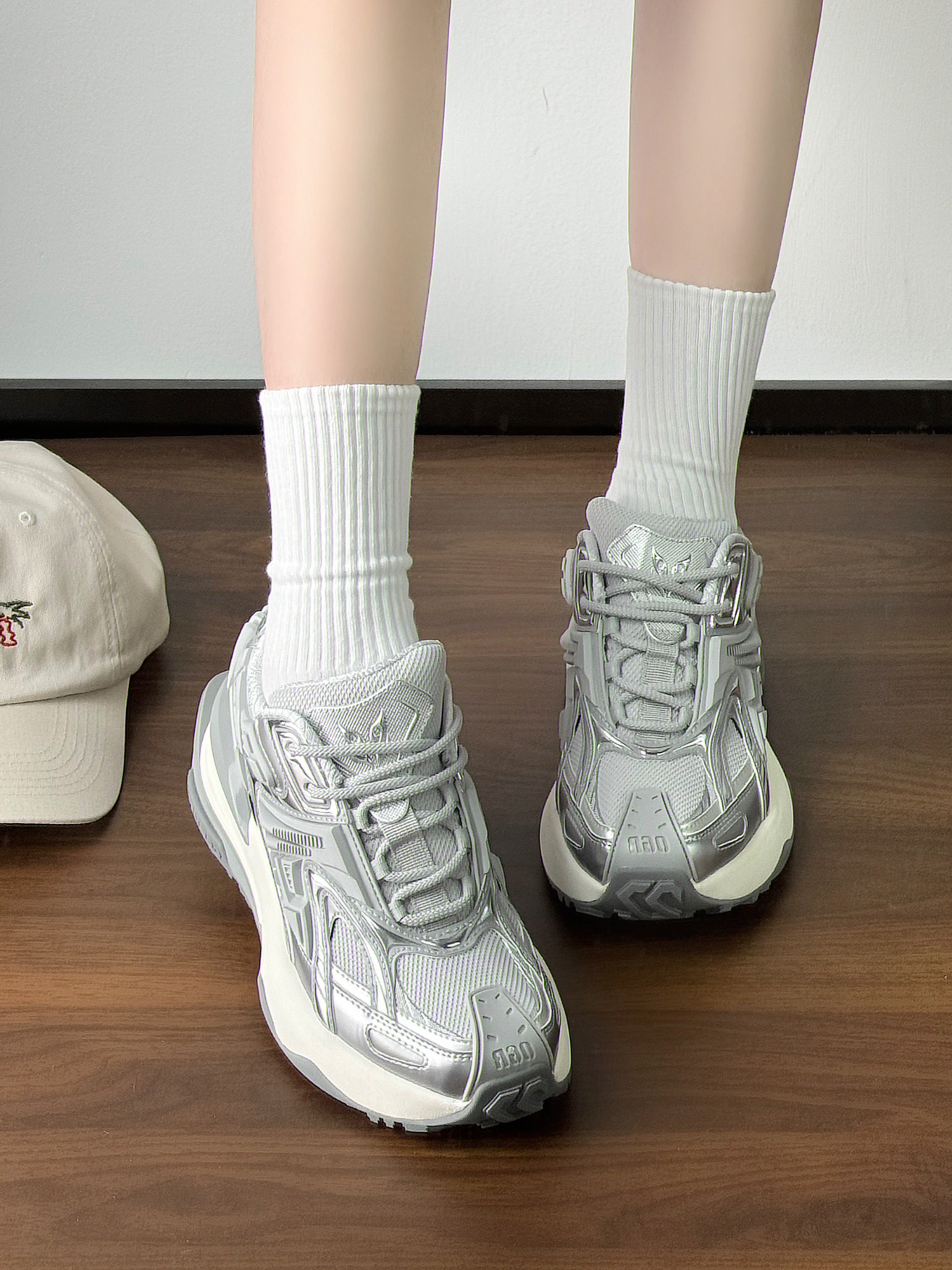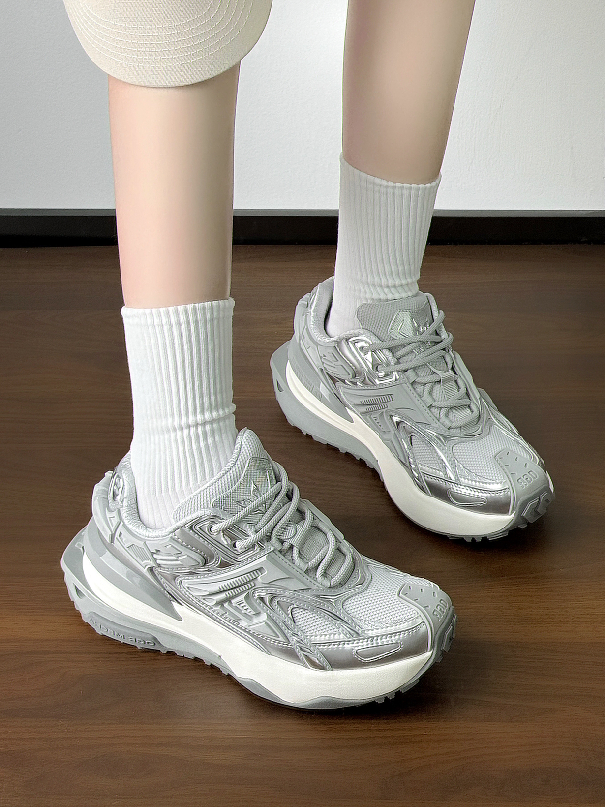 自带科技感的老爹鞋 银灰色的鞋面还蛮有质感的 高级百搭 增高🈶️5cm左右 穿上很显比例! 夏天搭配卫衣妥妥的韩系女大~