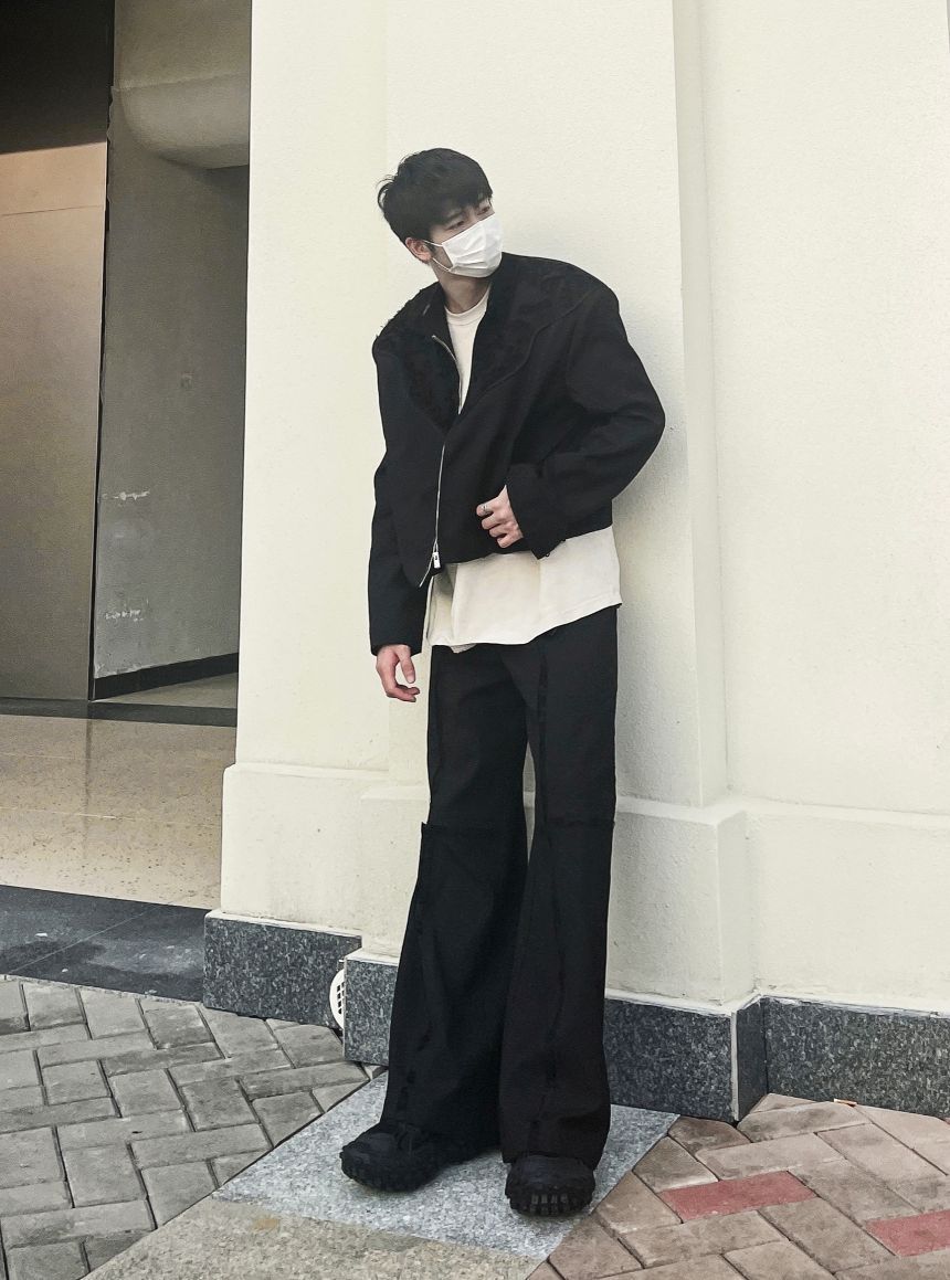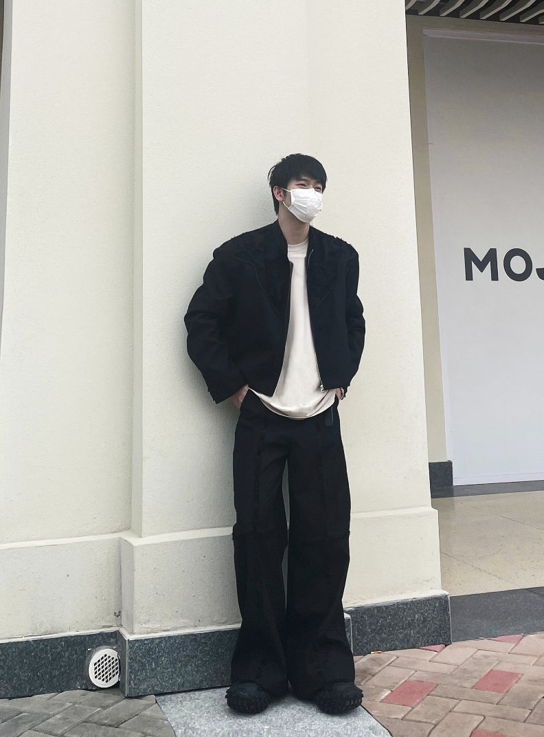 身高178 体重130 👕Repackage 👖Repackage 今天还是分享一套黑色色调的穿搭上身一件黑色外 套 衣服自带垫肩上身高级小骨架也能很好驾驭住 外套两边带刺绣让衣服整体更有高级感 裤子一条长筒垂感西裤 跟外套一样的是很有质感 在裤子中线一样有刺绣设计 一套搭下来给我的感觉就是很像男模!