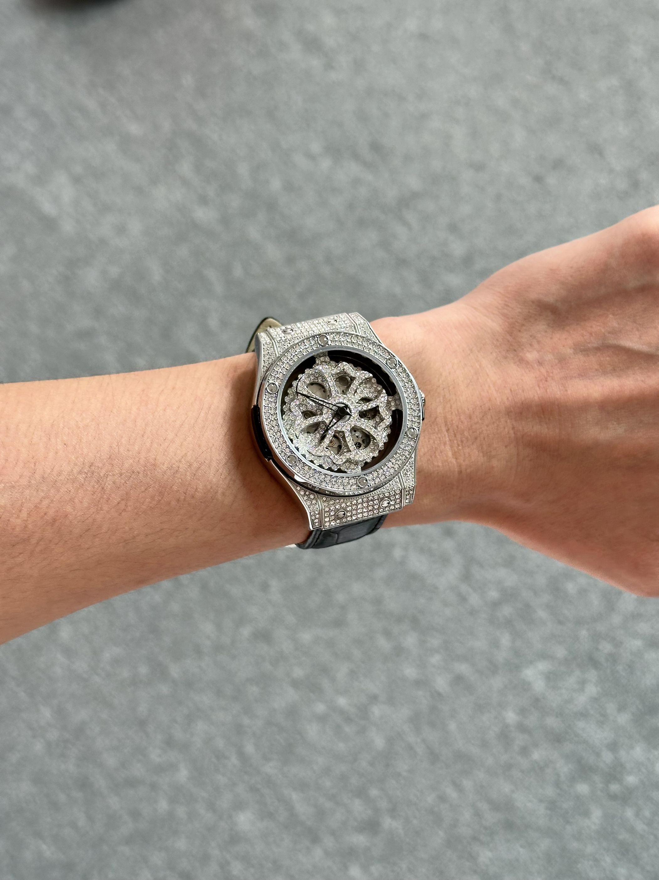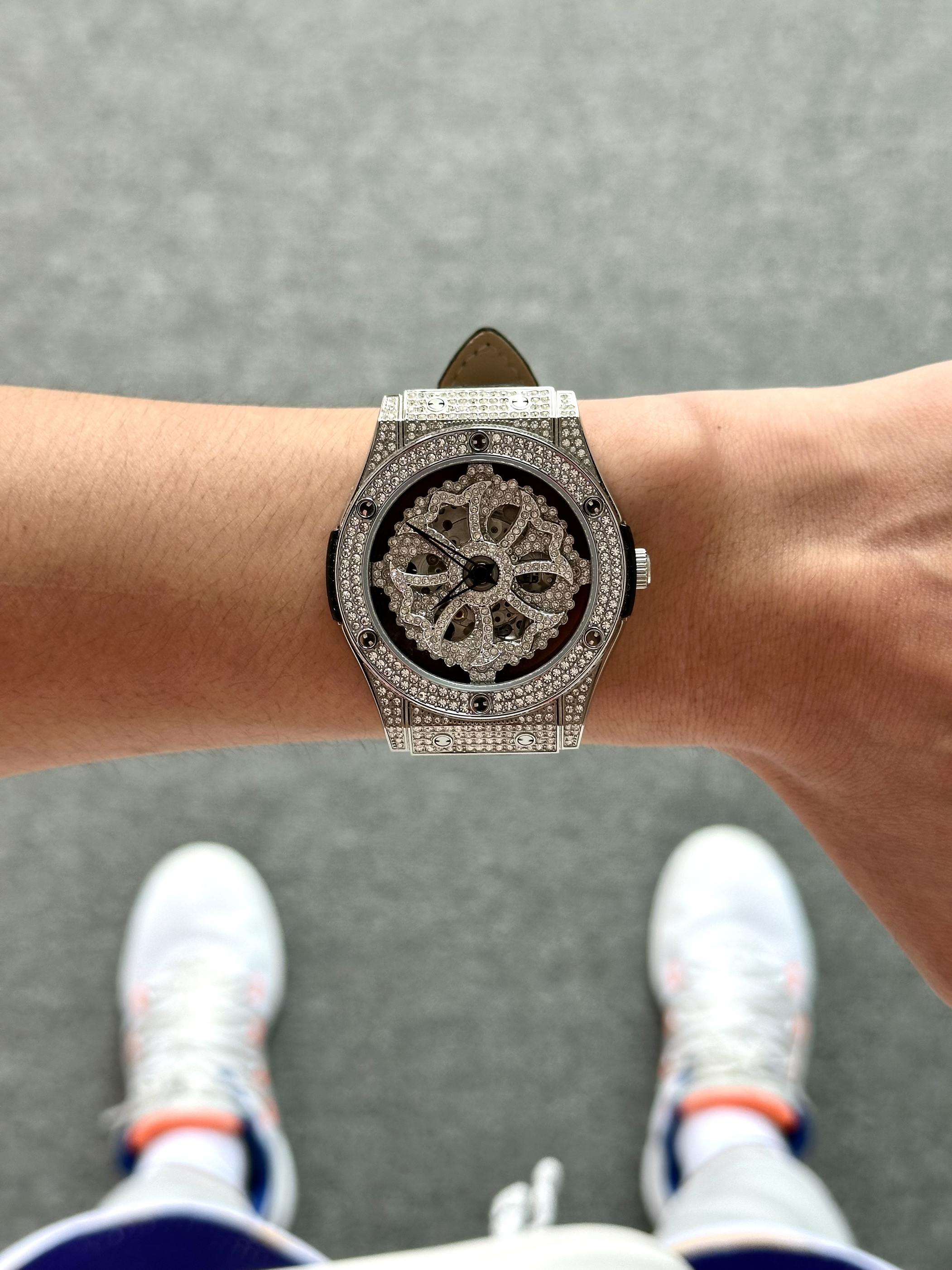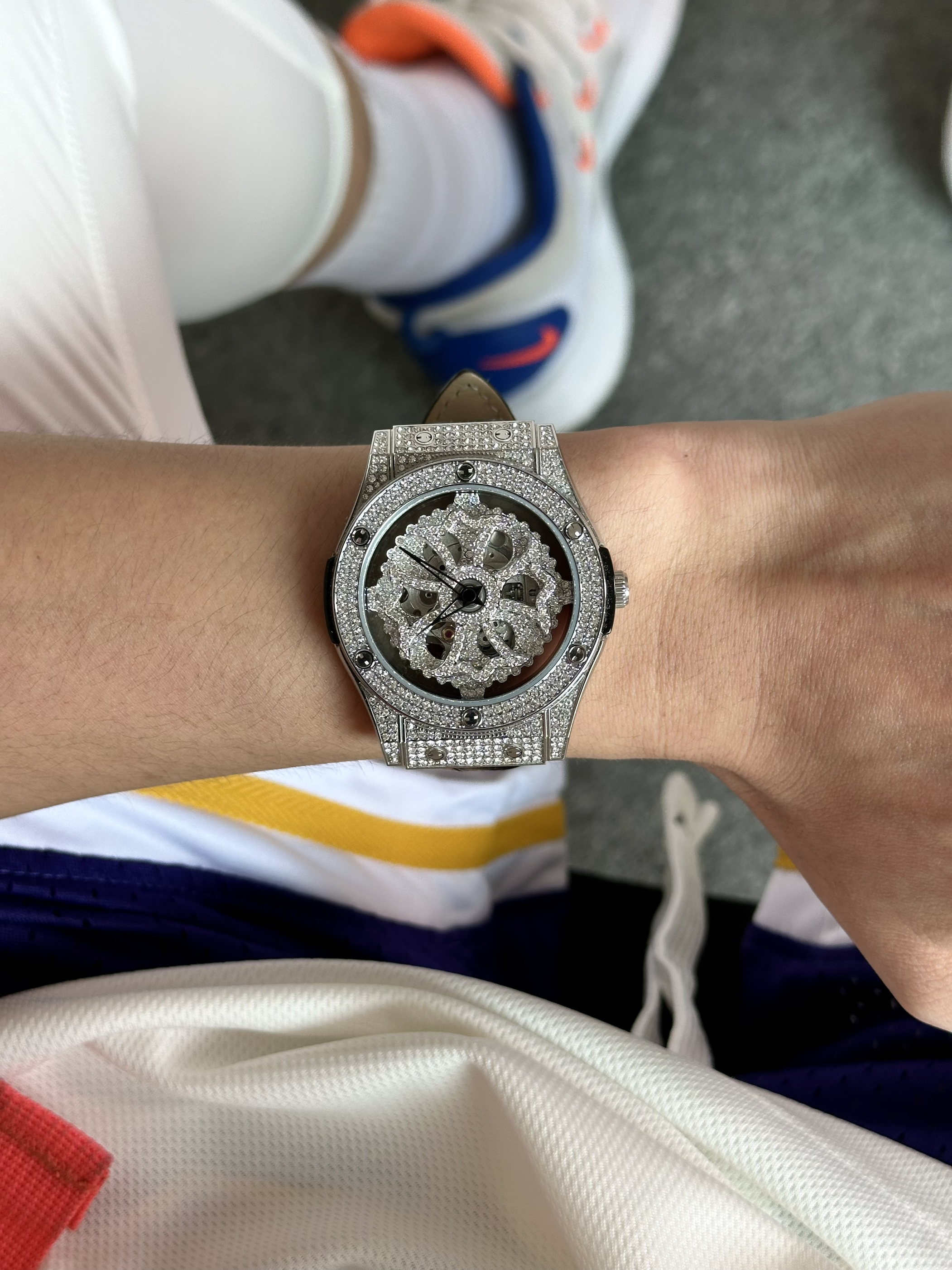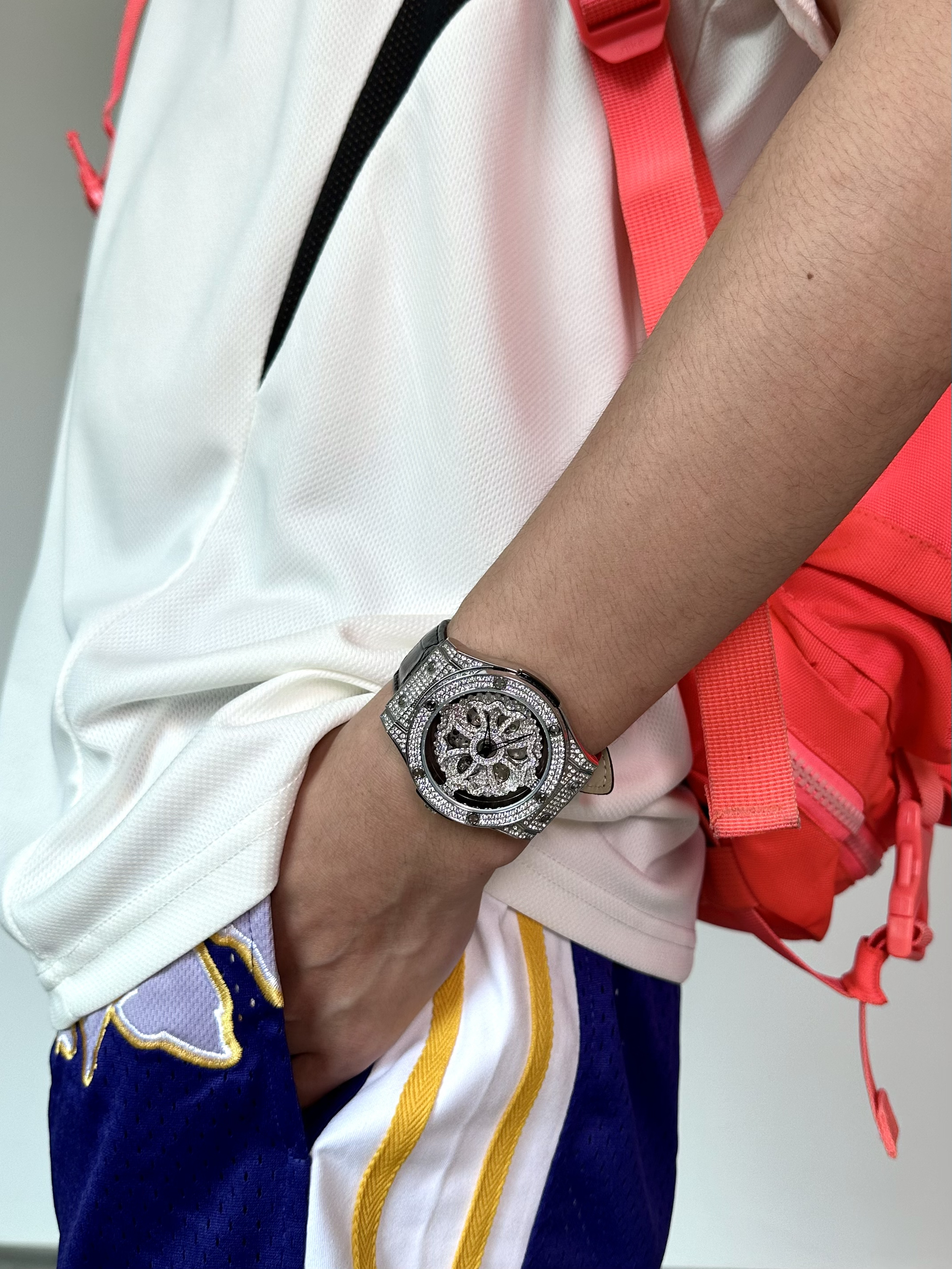 出街怎么少得了美式穿搭 今日搭配一身运动穿搭 选择超吸睛的腕表配饰⌚️ 表盘闪闪发亮 满是闪钻! 不管是做配饰还是实用性 都很不错!